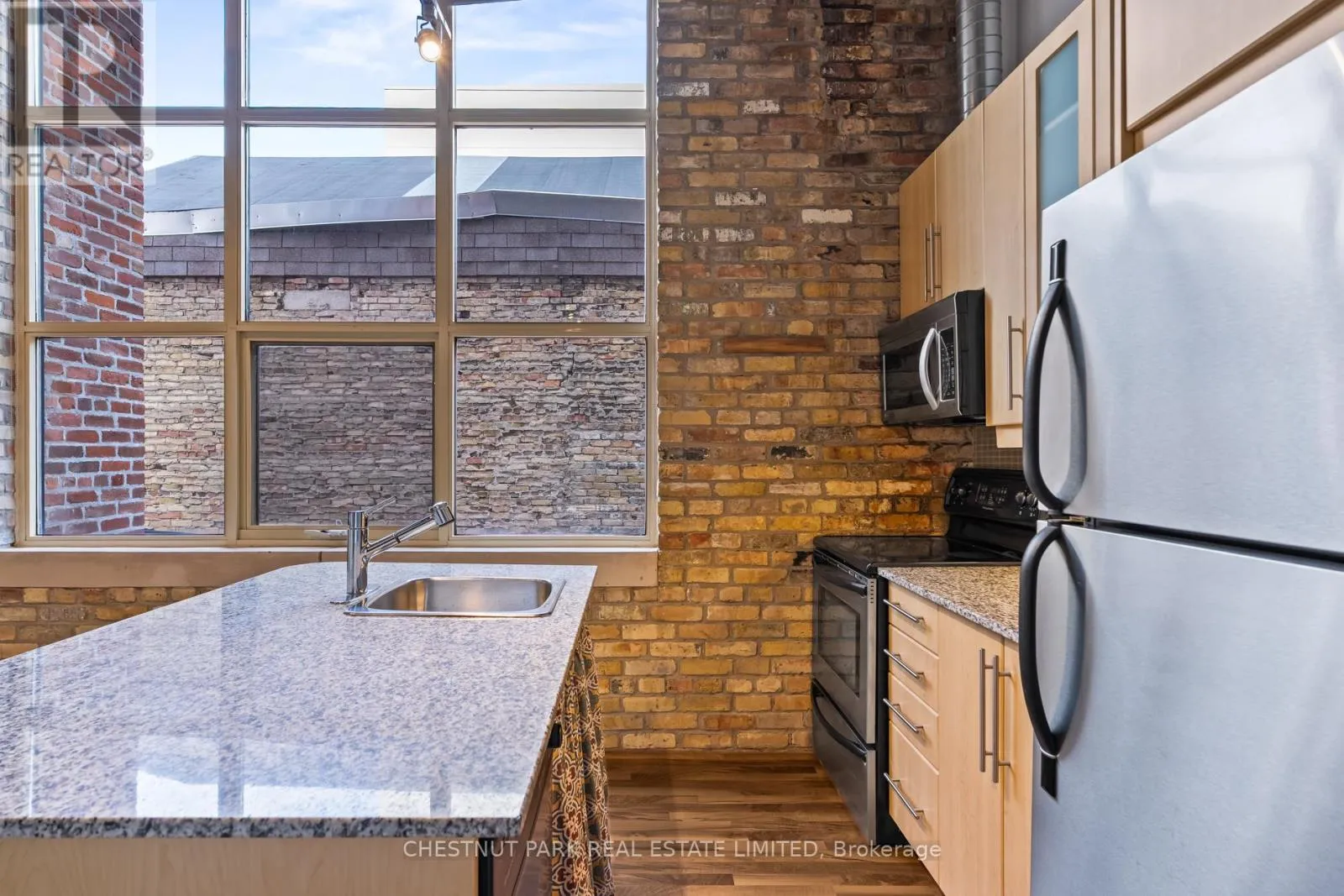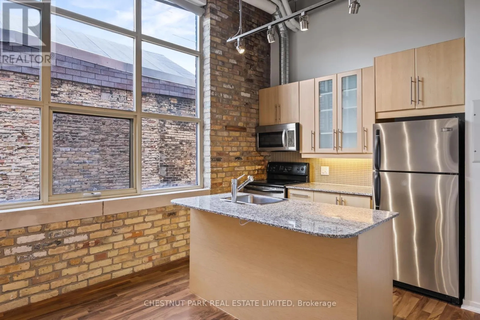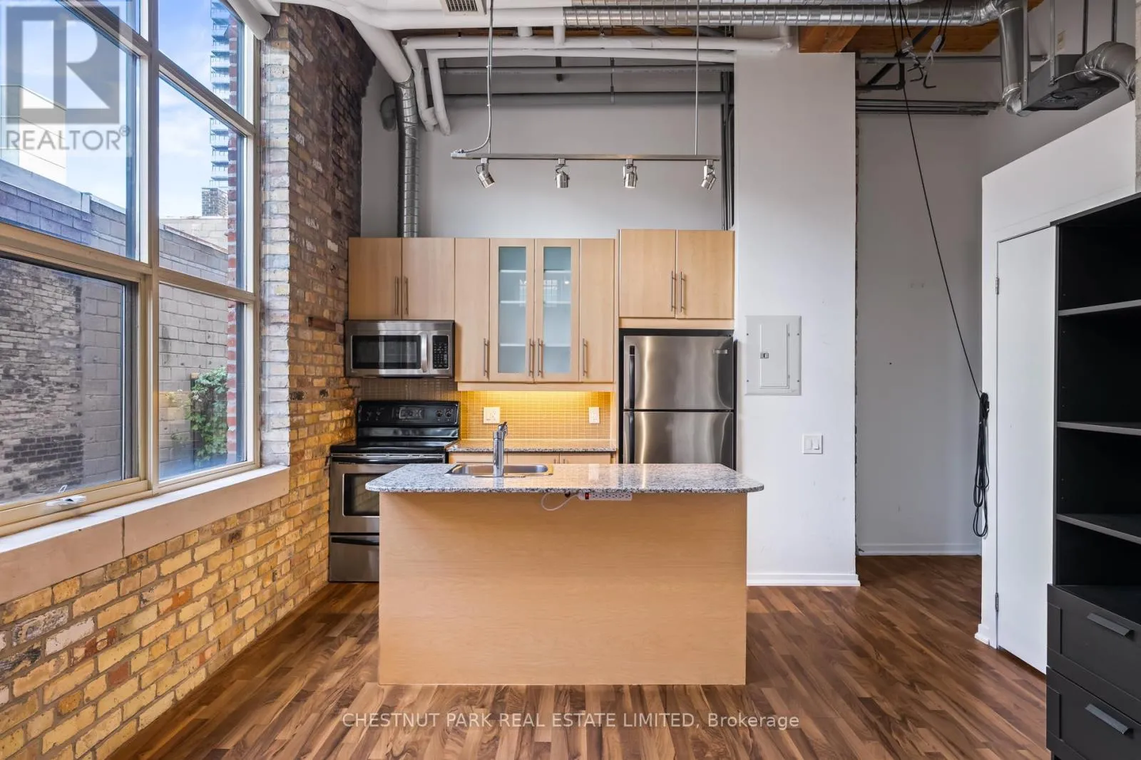 Dundas St E & River St If you've been waiting for the rare, authentic hard loft - This is it! Originally built in 1905 as a cigar box factory and later a soap factory, Tannery Lofts is one of Toronto's most storied warehouse conversions. Behind its classic brick facade and arched windows are just 45 boutique residences, each showcasing the character and craftsmanship of a true hard loft. This one-bedroom suite has it all: near 13-foot timber ceilings, exposed wooden beams, original brick walls, and massive industrial windows that flood the space with natural light. The open, airy layout blends raw history with just the right modern updates, creating a warm, industrial vibe that feels entirely unique - nothing like the glass boxes going up across the city. The bedroom offers a cozy retreat while maintaining the loft's open-concept flow, and the updated kitchen and bathroom deliver modern functionality without compromising style. Perfect for a creative setup, an inspiring work-from-home corner, or simply relaxing at home, this loft is as much lifestyle as it is living space. With low maintenance fees and a location steps from Regent Park's 69-acre green space, aquatic centre and community centre, plus easy access to Corktown, Leslieville, and downtown, Tannery Lofts offers a rare chance to own a piece of Toronto history. For the buyer who values character, story, and style - welcome home.| (id:27476)