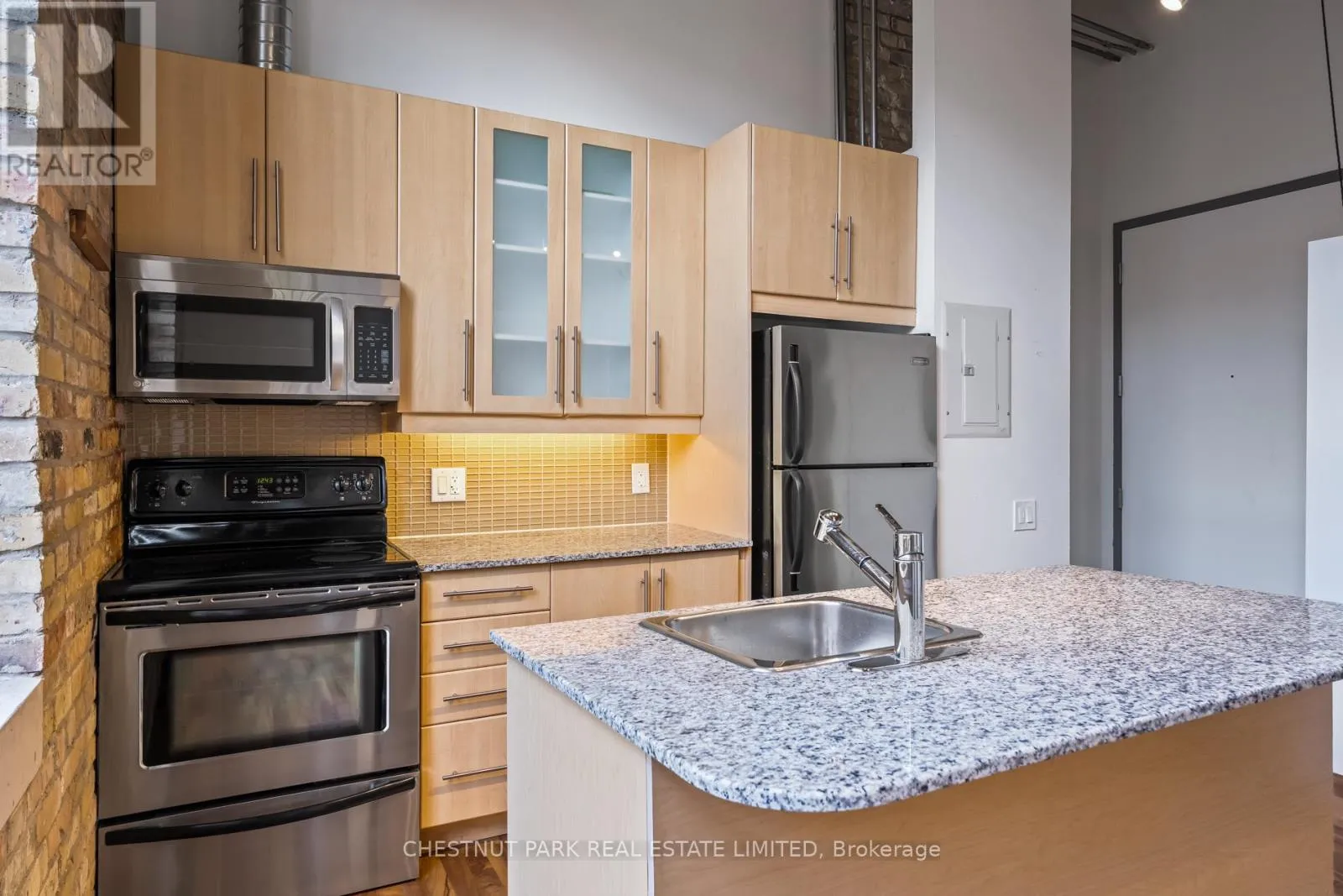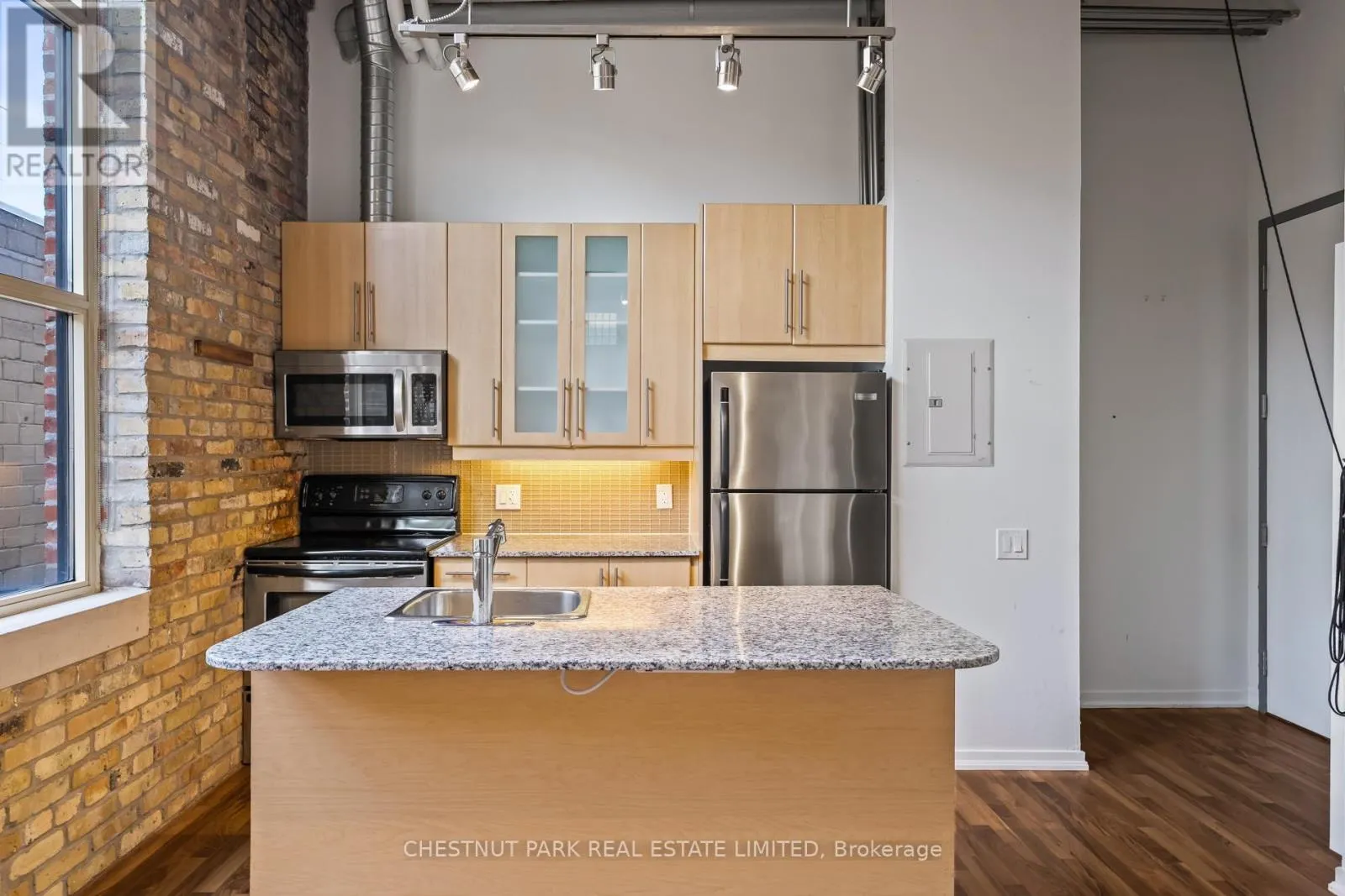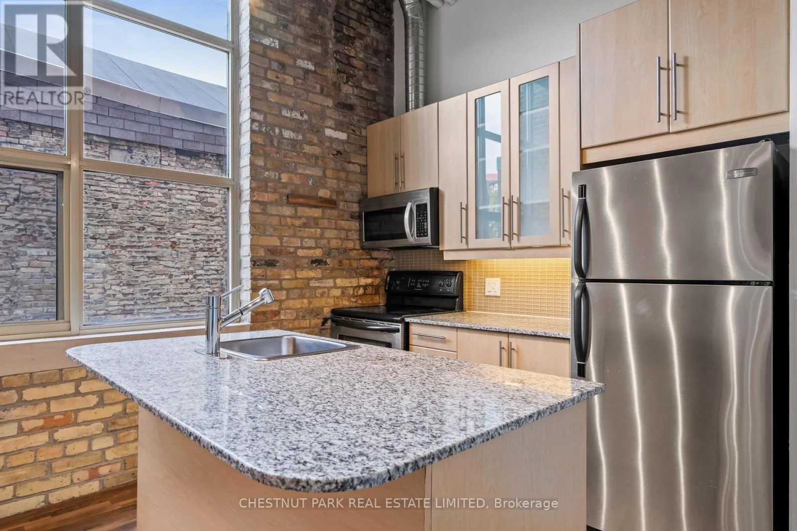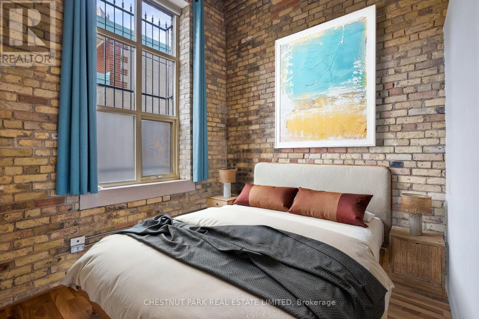 Dundas St E & River St If you've been waiting for the rare, authentic hard loft - This is it! Originally built in 1905 as a cigar box factory and later a soap factory, Tannery Lofts is one of Toronto's most storied warehouse conversions. Behind its classic brick facade and arched windows are just 45 boutique residences, each showcasing the character and craftsmanship of a true hard loft. This one-bedroom suite has it all: near 13-foot timber ceilings, exposed wooden beams, original brick walls, and massive industrial windows that flood the space with natural light. The open, airy layout blends raw history with just the right modern updates, creating a warm, industrial vibe that feels entirely unique - nothing like the glass boxes going up across the city. The bedroom offers a cozy retreat while maintaining the loft's open-concept flow, and the updated kitchen and bathroom deliver modern functionality without compromising style. Perfect for a creative setup, an inspiring work-from-home corner, or simply relaxing at home, this loft is as much lifestyle as it is living space. With low maintenance fees and a location steps from Regent Park's 69-acre green space, aquatic centre and community centre, plus easy access to Corktown, Leslieville, and downtown, Tannery Lofts offers a rare chance to own a piece of Toronto history. For the buyer who values character, story, and style - welcome home.| (id:27476)