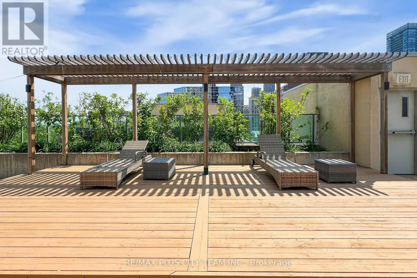 Yonge St /Bloor St Welcome to Yorkville living at its finest, where style meets convenience at 8 Park Road. This beautifully renovated 1-bedroom + den suite is a boutique gem, thoughtfully customized by the owner and not a flip property. Situated in the heart of Toronto's most desirable neighbourhood, this suite offers a perfect blend of smart design, modern features, and unbeatable location. Inside, you'll find a functional open-concept layout with soaring ceilings, floor-to-ceiling windows, and a private west-facing balcony, ideal for enjoying sunset views. The living and dining area provides generous space for relaxing or entertaining, while the updated kitchen features full-sized stainless steel appliances, a fridge with a built-in water dispenser, sleek shaker-style cabinetry, and waterfall quartz countertops. Energy-efficient LED pot lights, a smart thermostat, and even a smart toilet add thoughtful convenience and modern flair. The spacious bedroom includes a double closet and easy access to a renovated 4-piece bathroom with an accent shower niche, offering a spa-like feel. The separate den is perfect as a home office, guest space, or reading nook. Additional features include wide-plank hardwood-look luxury vinyl flooring, motorized blackout blinds, and a brand-new stacked washer and dryer in a dedicated laundry area. Enjoy direct indoor access to the Yonge and Bloor subway lines, Longos, GoodLife Fitness, shopping, dining, and entertainment. All-inclusive maintenance fees cover hydro and water, with access to incredible amenities: a recreation lounge with 90 TV and a pool table, library, party room, 16-person boardroom, and one of Toronto's largest rooftop patios with BBQs. Just steps to U of T, TMU, financial institutions, and more, this suite is an ideal home or investment in one of the city's most connected locations. (id:27476)