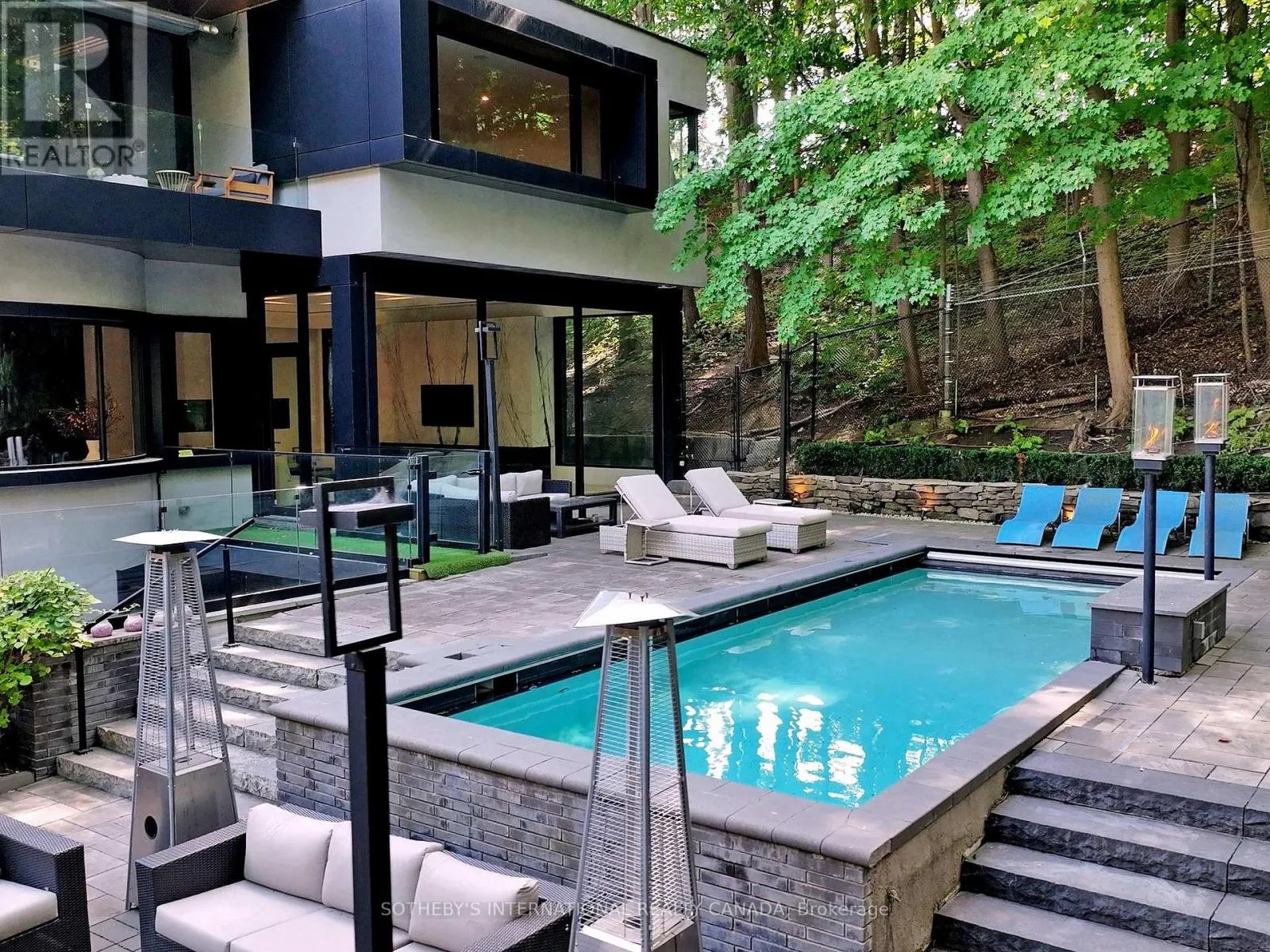 Yonge St & York Mills **Architecturally Significant Masterpiece in Hoggs Hollow!** A true statement property with a modern design, resort amenities, and complete privacy on an exclusive street, one of four homes! No detail spared in this *contemporary, custom residence* set on one of the areas most spectacular lush, treed lots. Your own *private, Zen-inspired resort* with soaring floor-to-ceiling windows, 11.5ft ceilings throughout the main floor, 10.5ft ceilings throughout the second floor, skylights, and sun-filled living spaces. The Owners have further customized this already stunning home $$$ The main level boasts an *open-concept layout* with a double-sided wall aquarium, Spacious principal rooms, gourmet kitchen, multiple serveries, outstanding millwork, artistic accent walls, and unique ceiling designs. Glass railings, custom lighting, and recessed features enhance the architectural flow. Retreat upstairs to the *year-round 2nd floor heated solarium with balcony, retractable windows and hot tub. This home is equipped with a Private glass elevator that spans all levels, multiple gas fireplaces, sound system with built-in speakers and Home Automation. 2 furnaces, 2 CAC, CVAC, and full security with cameras complete the homes impressive features. The lower level is an entertainers dream: 5th bedroom with ensuite, home theater room, Infrared Sauna, entertainers bar, enclosed kitchen, fitness room, spacious rec area with stunning wine wall, and walkout to the yard. The rear grounds are pure resort luxury with pool + waterfall, spacious patio, built-in BBQ, custom lighting & professional landscaped that further extends surrounded by a Private Treed Lot and beyond. For convenience, this home features a generator, heated Driveway, back patio and Walk-In landing into the basement. *** The Owners are open to the "Buy Option', should the Tenant's wish to Purchase. *** (id:27476)