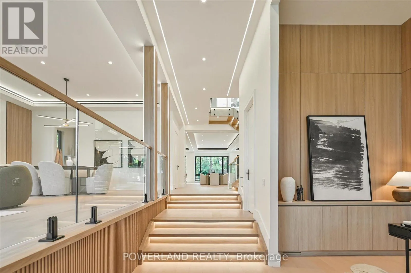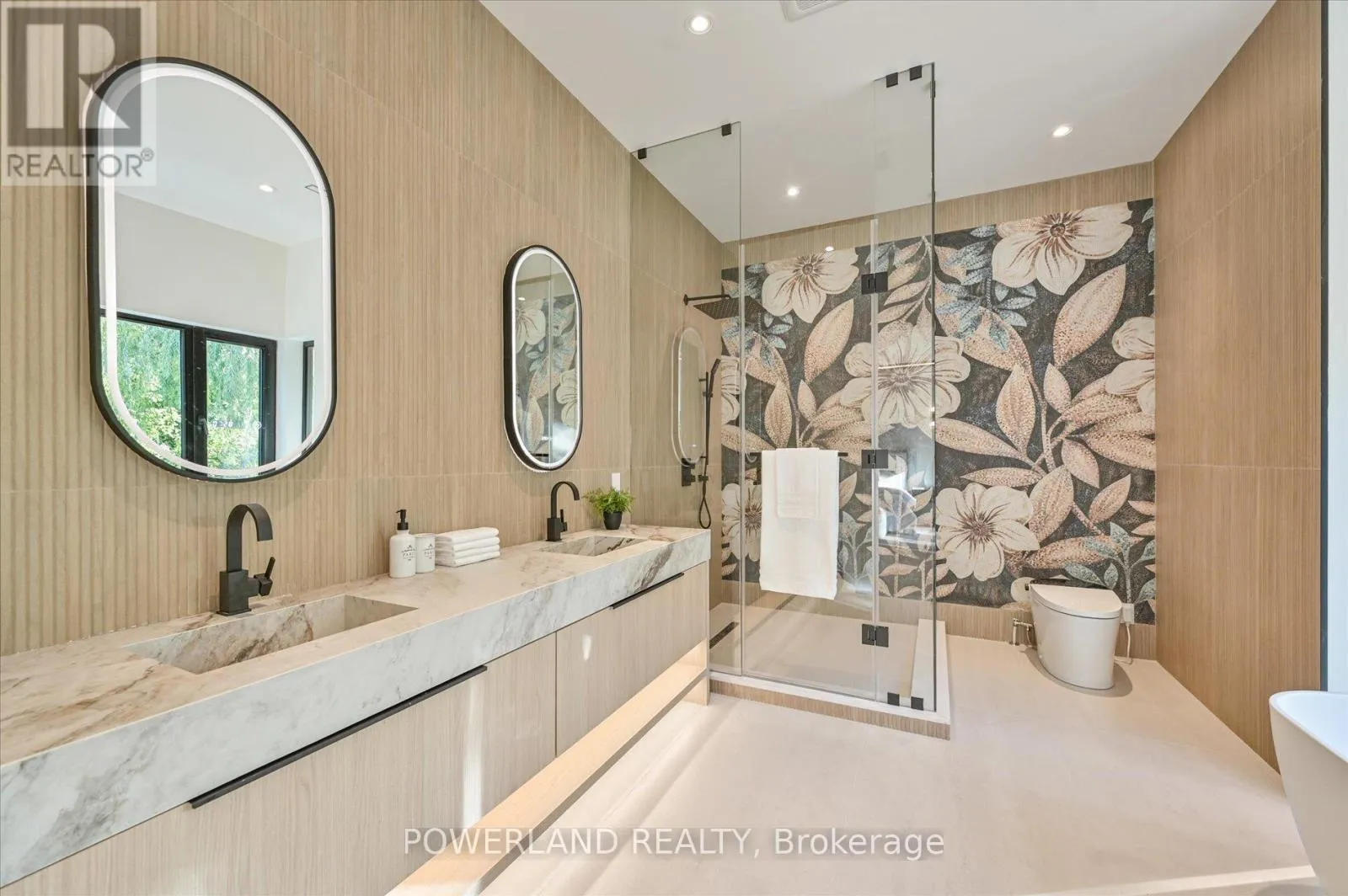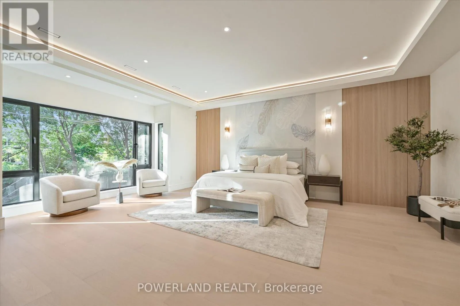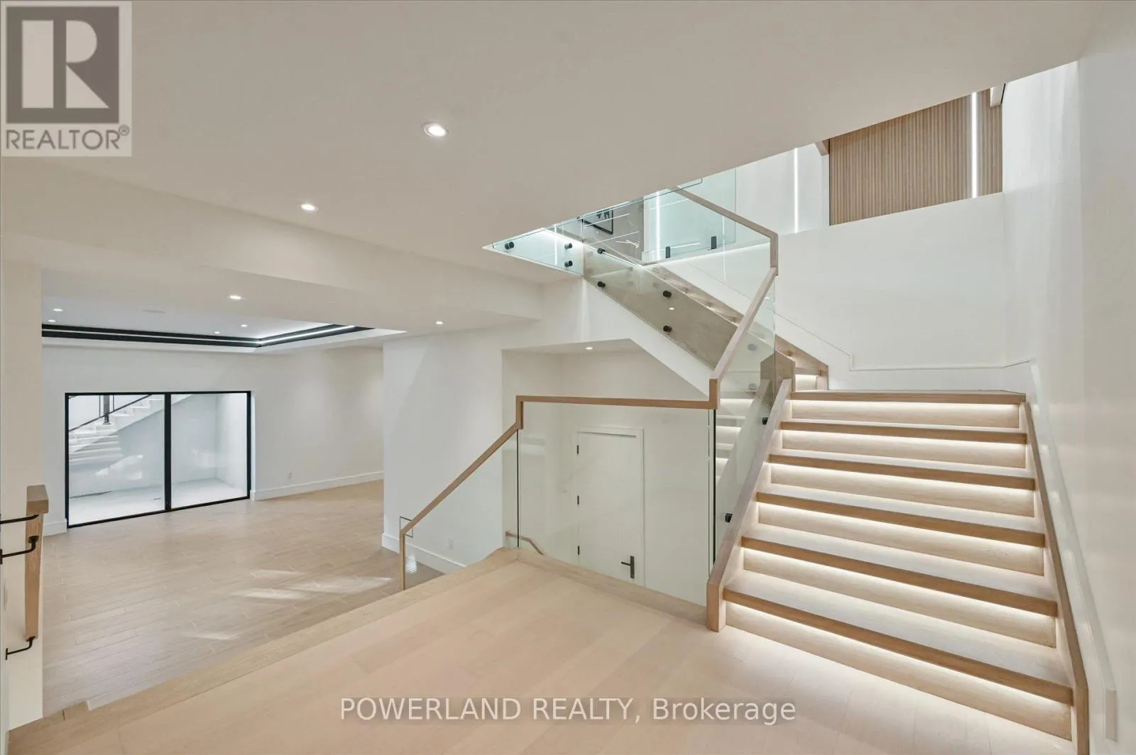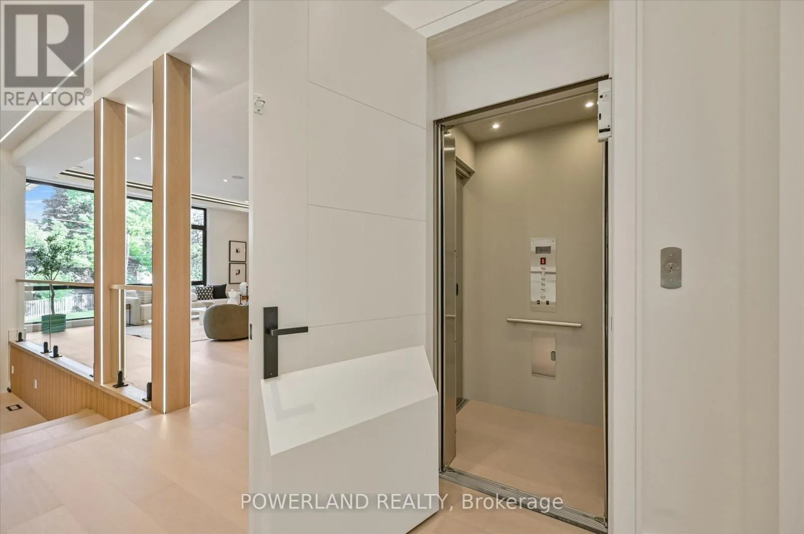 Bayview/Sheppard Welcome to this brand-new, custom-built modern mansion, offering over 7,200 sq. ft. of refined living space (5,124 sf across the main and second floors + 2,106 sf in the finished walk-up lower level), perfectly situated on a premium diamond-shaped lot (huge 11,324 sq. ft.) in the prestigious, nature-rich Bayview Village neighbourhood. Steps to ravine trails, parks, Bayview Village Mall, Bessarion Subway Station, Hwy 401, and Torontos top-ranked schools. This architecturally striking residence blends modern sophistication with timeless elegance. Dramatic ceiling heights (14' in foyer & office, 11' on main, 10' on second, and 12' in the lower level), a floating staircase illuminated by a 6x6 skylight, and floor-to-ceiling picture windows create bright, airy interiors infused with natural light. The chef-inspired kitchen is a true showpiece, featuring Miele and Fisher & Paykel appliances, an oversized island with breakfast seating, a fully equipped butlers pantry, and a discrete spice kitchen for the passionate cook. Upstairs, the luxurious primary suite is a serene retreat with a spa-inspired ensuite (heated floor) and a custom dressing room. Four additional bedrooms, each with its own ensuite, provide comfort and privacy for the entire family. The finished walk-up lower level is crafted for both entertaining and relaxation, showcasing a spacious recreation room with an expansive wet bar, a private nanny/in-law suite, and a dedicated exercise area--all enhanced by radiant heated floors throughout. Additional features include Private elevator serving all levels, Control4 smart home automation system, Wide-plank 7.5" white oak hardwood flooring, LED strip & pot lighting throughout, Instant hot water recirculation system, Closed-cell spray foam insulation for the entire home, Hi-tech entry door with fingerprint recognition, Smooth-operating triple-pane laminated security glass windows. An extraordinary opportunity to call this masterpiece your home. (id:27476)
