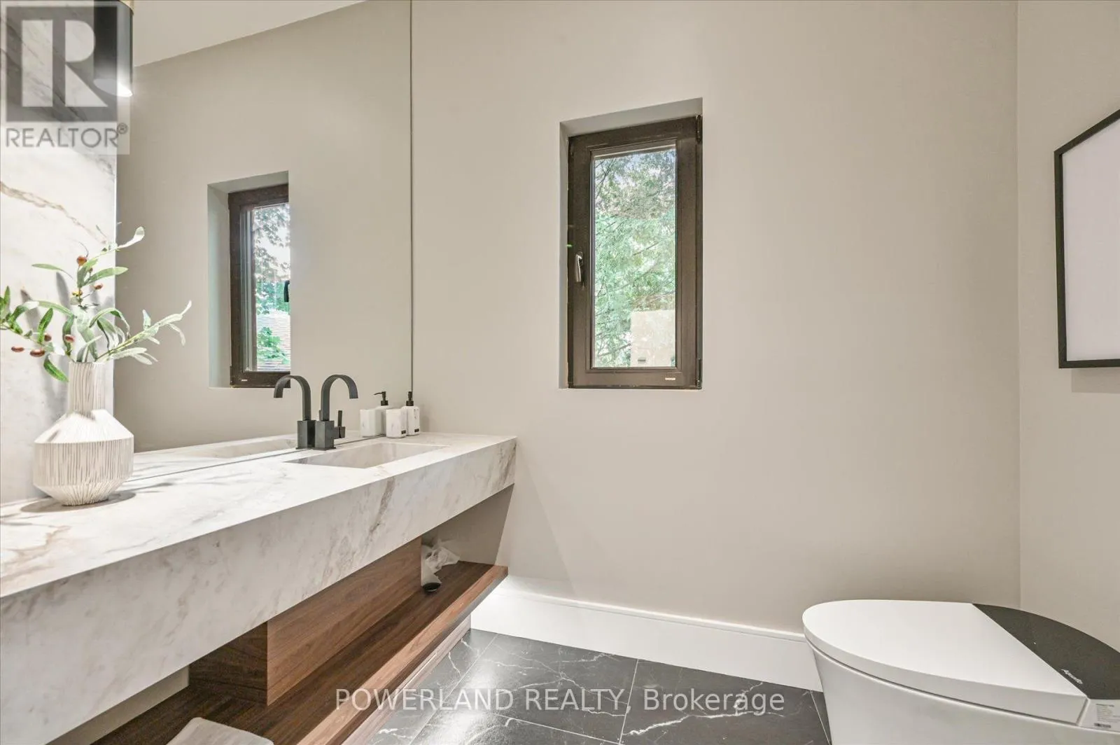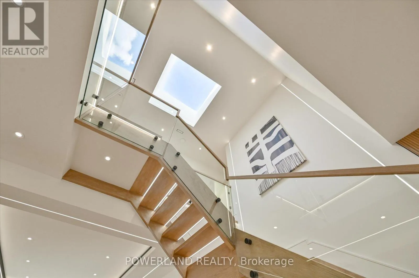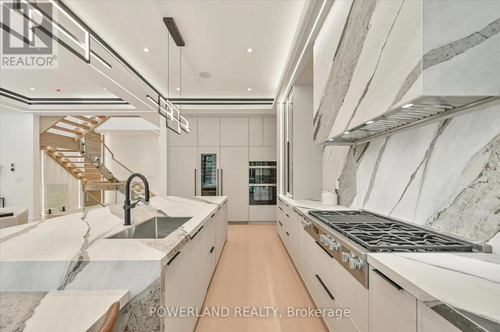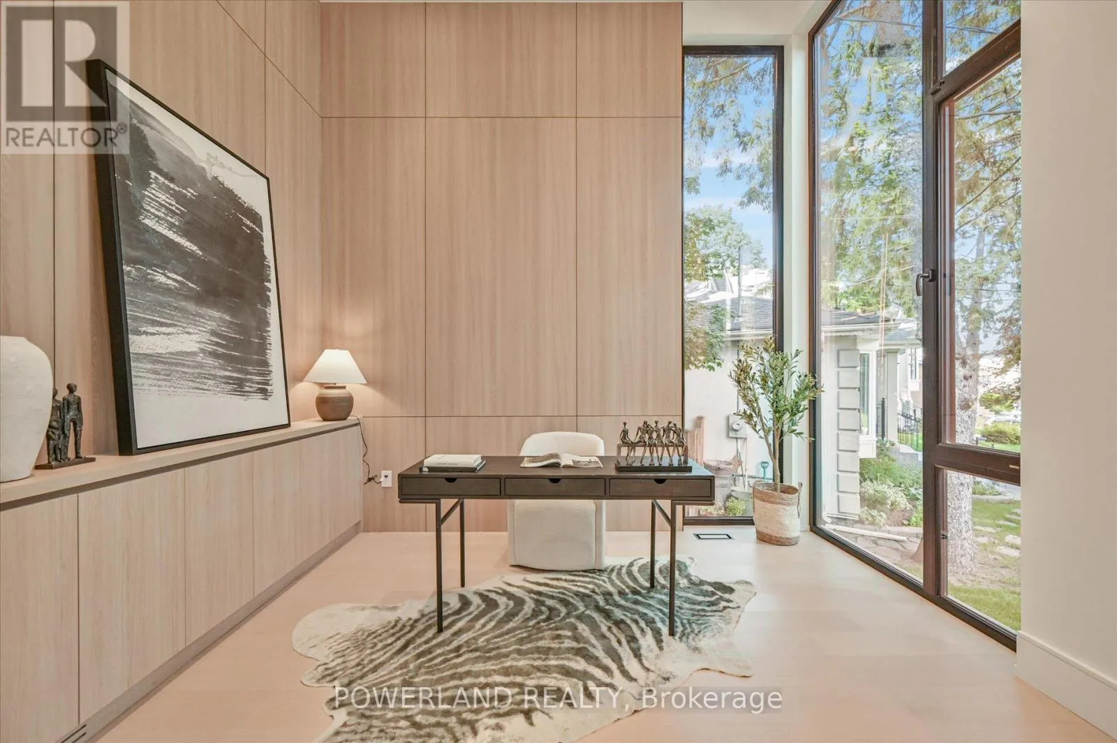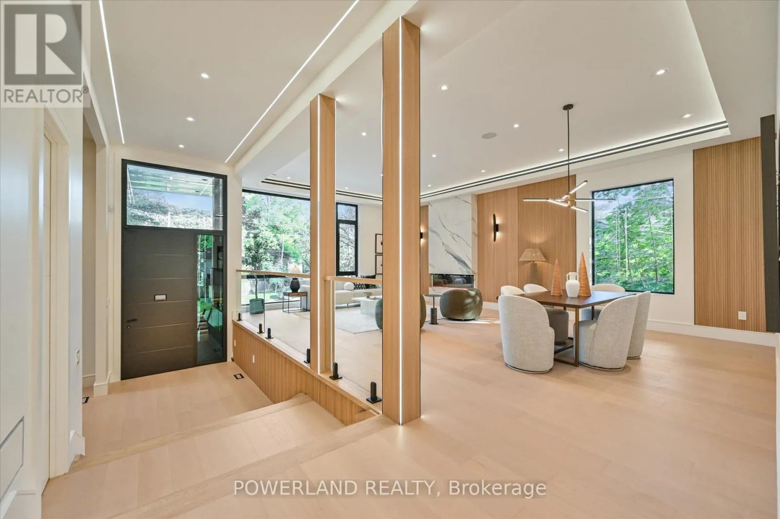 Bayview/Sheppard Welcome to this brand-new, custom-built modern mansion, offering over 7,200 sq. ft. of refined living space (5,124 sf across the main and second floors + 2,106 sf in the finished walk-up lower level), perfectly situated on a premium diamond-shaped lot (huge 11,324 sq. ft.) in the prestigious, nature-rich Bayview Village neighbourhood. Steps to ravine trails, parks, Bayview Village Mall, Bessarion Subway Station, Hwy 401, and Torontos top-ranked schools. This architecturally striking residence blends modern sophistication with timeless elegance. Dramatic ceiling heights (14' in foyer & office, 11' on main, 10' on second, and 12' in the lower level), a floating staircase illuminated by a 6x6 skylight, and floor-to-ceiling picture windows create bright, airy interiors infused with natural light. The chef-inspired kitchen is a true showpiece, featuring Miele and Fisher & Paykel appliances, an oversized island with breakfast seating, a fully equipped butlers pantry, and a discrete spice kitchen for the passionate cook. Upstairs, the luxurious primary suite is a serene retreat with a spa-inspired ensuite (heated floor) and a custom dressing room. Four additional bedrooms, each with its own ensuite, provide comfort and privacy for the entire family. The finished walk-up lower level is crafted for both entertaining and relaxation, showcasing a spacious recreation room with an expansive wet bar, a private nanny/in-law suite, and a dedicated exercise area--all enhanced by radiant heated floors throughout. Additional features include Private elevator serving all levels, Control4 smart home automation system, Wide-plank 7.5" white oak hardwood flooring, LED strip & pot lighting throughout, Instant hot water recirculation system, Closed-cell spray foam insulation for the entire home, Hi-tech entry door with fingerprint recognition, Smooth-operating triple-pane laminated security glass windows. An extraordinary opportunity to call this masterpiece your home. (id:27476)