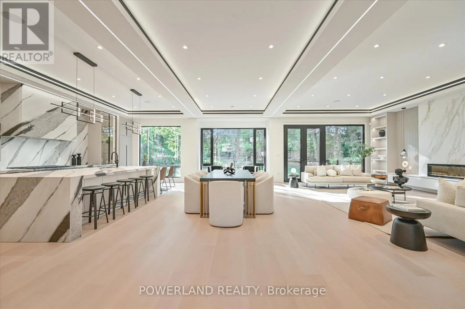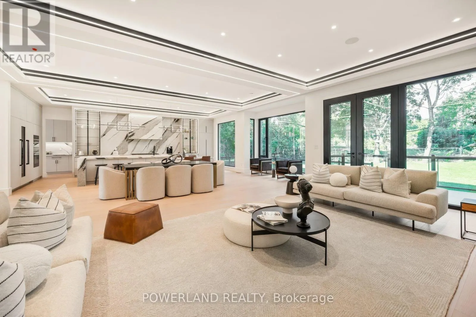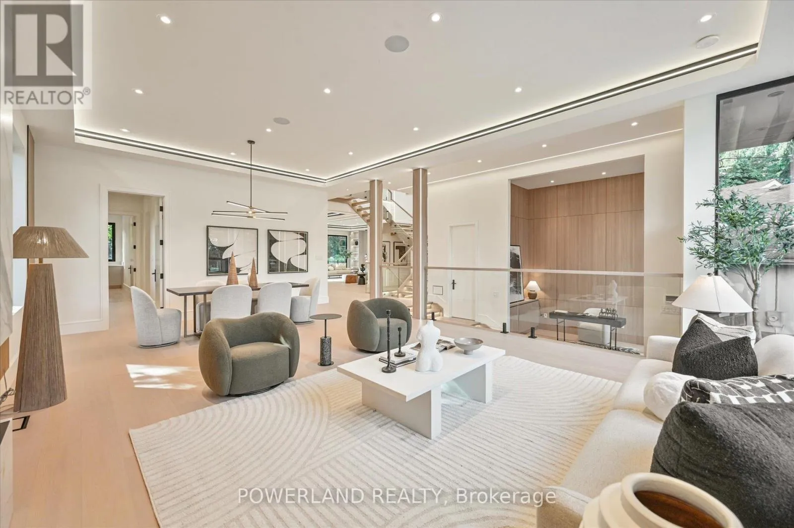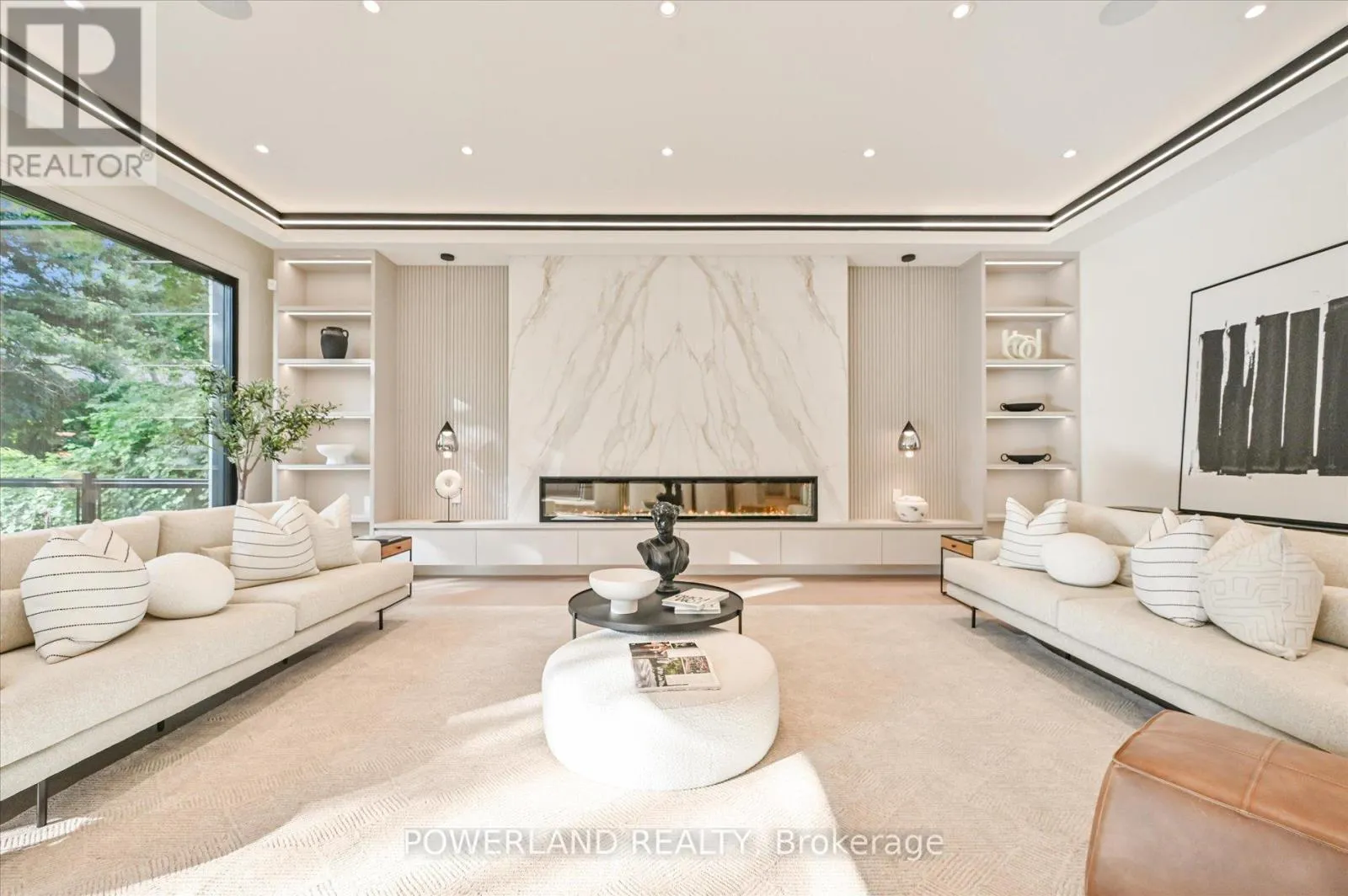 Bayview/Sheppard Welcome to this brand-new, custom-built modern mansion, offering over 7,200 sq. ft. of refined living space (5,124 sf across the main and second floors + 2,106 sf in the finished walk-up lower level), perfectly situated on a premium diamond-shaped lot (huge 11,324 sq. ft.) in the prestigious, nature-rich Bayview Village neighbourhood. Steps to ravine trails, parks, Bayview Village Mall, Bessarion Subway Station, Hwy 401, and Torontos top-ranked schools. This architecturally striking residence blends modern sophistication with timeless elegance. Dramatic ceiling heights (14' in foyer & office, 11' on main, 10' on second, and 12' in the lower level), a floating staircase illuminated by a 6x6 skylight, and floor-to-ceiling picture windows create bright, airy interiors infused with natural light. The chef-inspired kitchen is a true showpiece, featuring Miele and Fisher & Paykel appliances, an oversized island with breakfast seating, a fully equipped butlers pantry, and a discrete spice kitchen for the passionate cook. Upstairs, the luxurious primary suite is a serene retreat with a spa-inspired ensuite (heated floor) and a custom dressing room. Four additional bedrooms, each with its own ensuite, provide comfort and privacy for the entire family. The finished walk-up lower level is crafted for both entertaining and relaxation, showcasing a spacious recreation room with an expansive wet bar, a private nanny/in-law suite, and a dedicated exercise area--all enhanced by radiant heated floors throughout. Additional features include Private elevator serving all levels, Control4 smart home automation system, Wide-plank 7.5" white oak hardwood flooring, LED strip & pot lighting throughout, Instant hot water recirculation system, Closed-cell spray foam insulation for the entire home, Hi-tech entry door with fingerprint recognition, Smooth-operating triple-pane laminated security glass windows. An extraordinary opportunity to call this masterpiece your home. (id:27476)