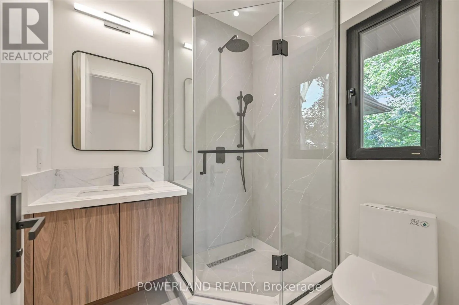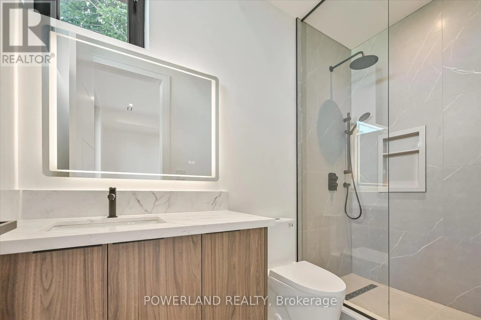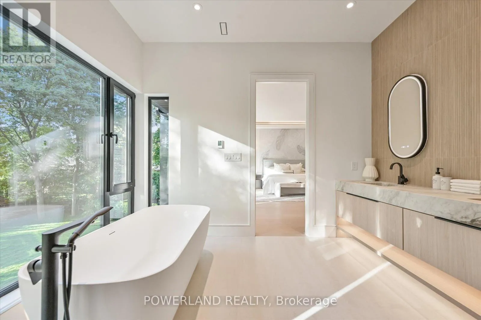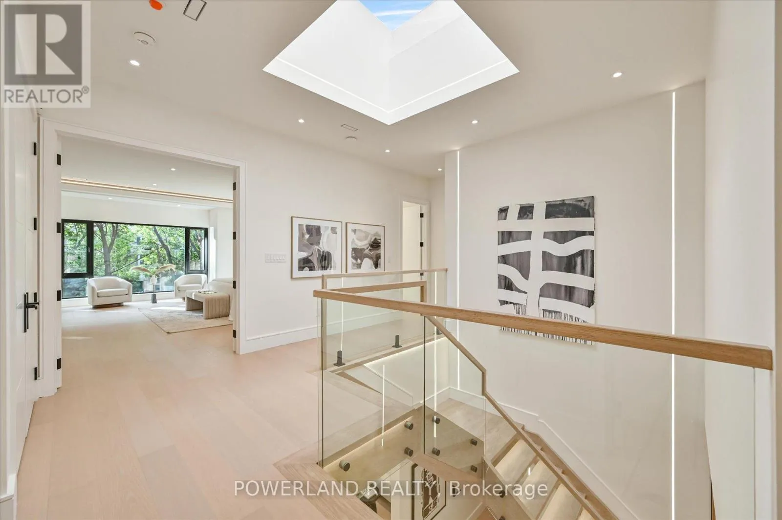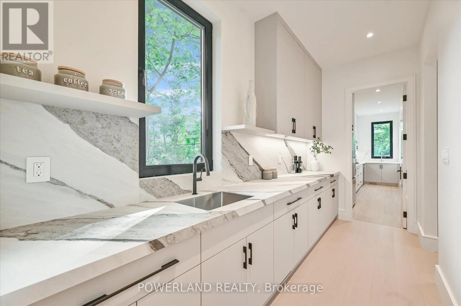Bayview/Sheppard Welcome to this brand-new, custom-built modern mansion, offering over 7,200 sq. ft. of refined living space (5,124 sf across the main and second floors + 2,106 sf in the finished walk-up lower level), perfectly situated on a premium diamond-shaped lot (huge 11,324 sq. ft.) in the prestigious, nature-rich Bayview Village neighbourhood. Steps to ravine trails, parks, Bayview Village Mall, Bessarion Subway Station, Hwy 401, and Torontos top-ranked schools. This architecturally striking residence blends modern sophistication with timeless elegance. Dramatic ceiling heights (14' in foyer & office, 11' on main, 10' on second, and 12' in the lower level), a floating staircase illuminated by a 6x6 skylight, and floor-to-ceiling picture windows create bright, airy interiors infused with natural light. The chef-inspired kitchen is a true showpiece, featuring Miele and Fisher & Paykel appliances, an oversized island with breakfast seating, a fully equipped butlers pantry, and a discrete spice kitchen for the passionate cook. Upstairs, the luxurious primary suite is a serene retreat with a spa-inspired ensuite (heated floor) and a custom dressing room. Four additional bedrooms, each with its own ensuite, provide comfort and privacy for the entire family. The finished walk-up lower level is crafted for both entertaining and relaxation, showcasing a spacious recreation room with an expansive wet bar, a private nanny/in-law suite, and a dedicated exercise area--all enhanced by radiant heated floors throughout. Additional features include Private elevator serving all levels, Control4 smart home automation system, Wide-plank 7.5" white oak hardwood flooring, LED strip & pot lighting throughout, Instant hot water recirculation system, Closed-cell spray foam insulation for the entire home, Hi-tech entry door with fingerprint recognition, Smooth-operating triple-pane laminated security glass windows. An extraordinary opportunity to call this masterpiece your home. (id:27476)