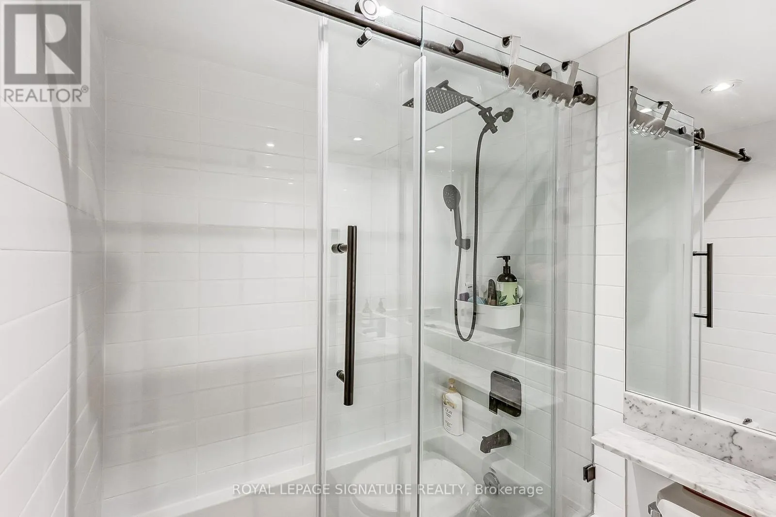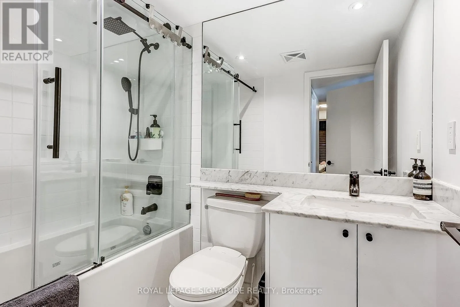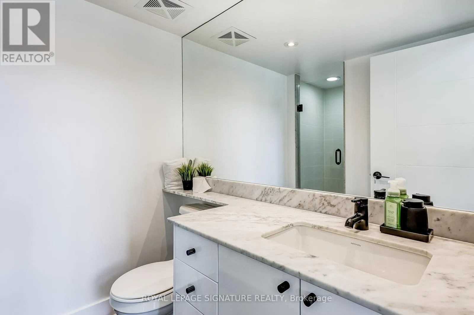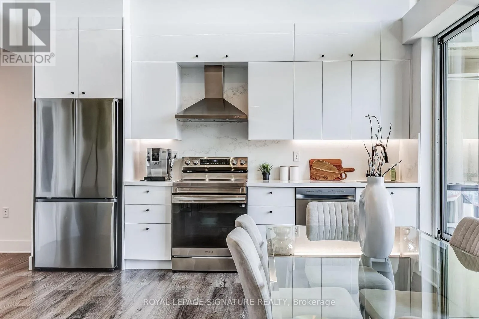 King St W / Strachan A true gem in the heart of Liberty Village. From the moment you step inside of this rarely offered, newly renovated 2 bedroom, 2 bathroom corner unit you will be captivated by the soaring 16 foot ceilings. Sun drenched and full of natural light with floor to ceiling windows at every turn. The sleek kitchen comes equipped with modern cabinetry, high end quartz counters and quartz backsplash, stainless steel appliances, black hardware and opens up to the massive living and dining area. The spacious primary bedroom has a large walk-in closet and ensuite bathroom that was just upgraded with high end finishes. Now lets talk about the 622 sq ft wrap around balcony which is one of the many showstoppers in this unit and has gorgeous views of everything Liberty Village has to offer. You will never be short of space when you are entertaining or hosting parties. Includes approved plans, permit and drawings for a 2nd floor, 3rd bedroom or family room addition. Don't miss your chance to see this one-of-a-kind loft style unit in one of the best neighbourhood's in Toronto. (id:27476)
