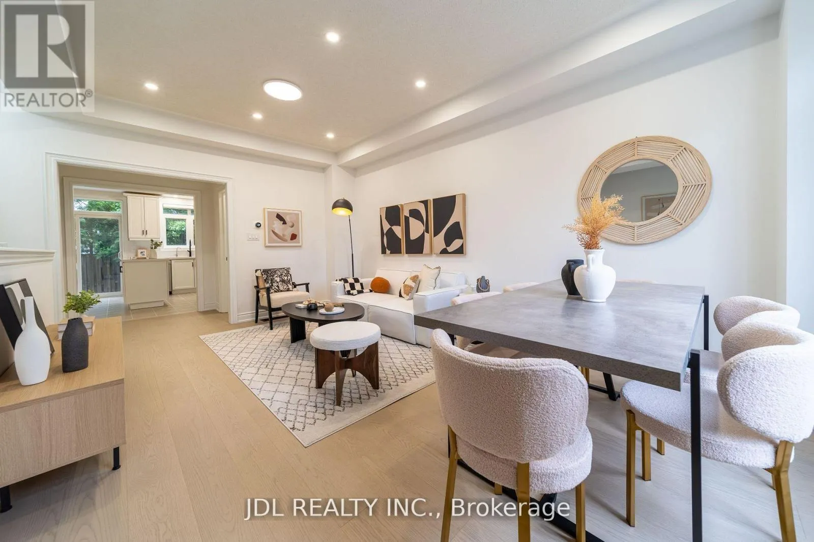 Cross Streets: Yonge/Finch. ** Directions: Yonge and Finch. Fully renovated and move-in ready, this residence is situated in the vibrant and sought-after community of North York. Featuring a modernminimalist design, this bright and spacious south-north facing unit offers nearly 2,000 sqft. of thoughtfully planned living space, filled withabundant natural sunlight on every level. The open-concept living and dining area showcases 9-ft ceilings. The sunlit eat-in kitchen overlooks aprivate, tranquil backyard and has been fully upgraded with clean white cabinetry and brand-new quartz countertops, offering a fresh andtimeless aesthetic. The home is finished with light-toned engineered hardwood flooring, and the stairs and railings have all been newly replaced,contributing to a cohesive and modern feel. The main floor powder room features a sleek floating vanity, while the second-floor bathroom hasbeen fully renovated with large-format glossy tiles, a floating vanity with an LED mirror, and a glass-enclosed shower creating a bright and refinedspace. The primary ensuite is a luxurious retreat, complete with a freestanding bathtub, double floating vanities, dual LED mirrors, and recessedspotlights for enhanced brightness and comfort. The four-bedroom layout includes well-proportioned bedrooms, a convenient second-floorlaundry room, and a versatile third-floor family room or home office also suitable as a fourth bedroom with private balcony access. Stylishcomfort and exceptional attention to detail are evident throughout. Located just steps from the Edithvale Community Centre, parks, shops,restaurants, and transit, this home offers a rare blend of modern design, everyday practicality, and urban convenience. (id:27476)