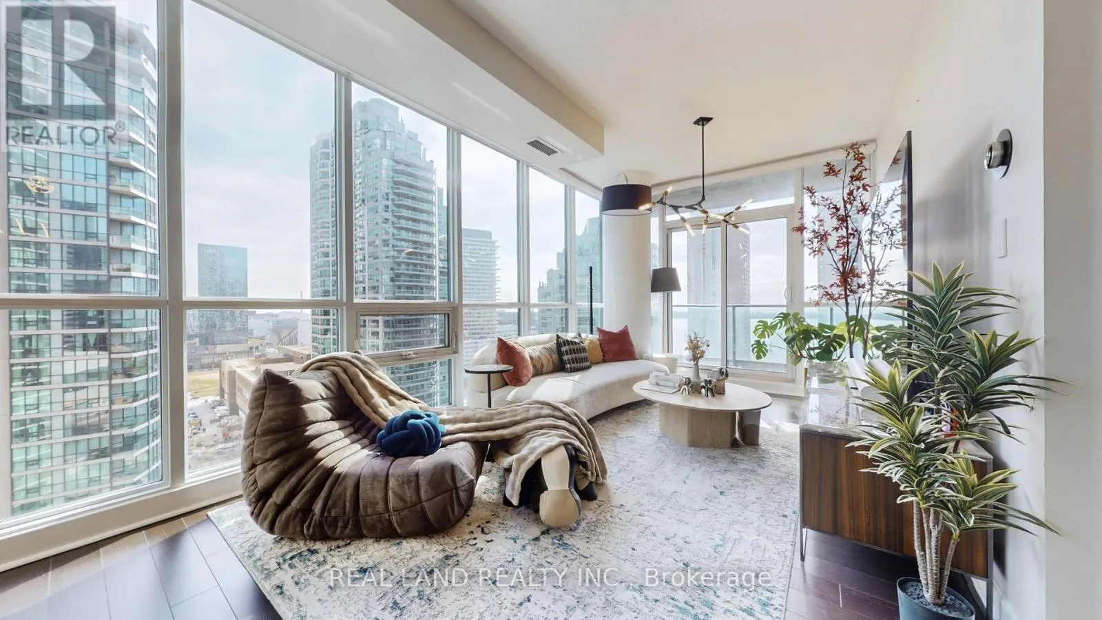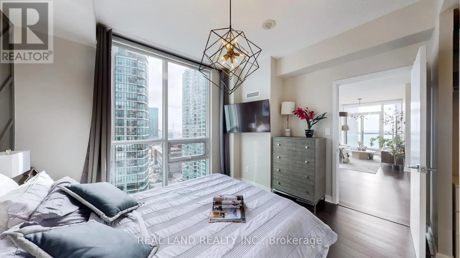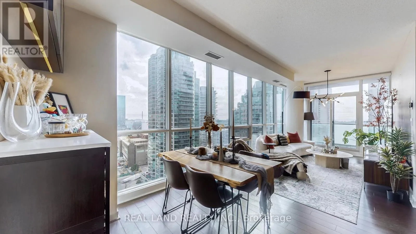 Cross Streets: Bay/Harbour. ** Directions: SW. Stylish recently renovated southeast 2+ Den corner unit with stunning Lake and City views with 2 Car Parking and 1 super big Locker Room. 9Ft Ceiling. The Huge Floor To Ceiling Windows Through Out The Unit, Very Bright & Functional Layout. South east lake view living room can enjoy this water view everywhere, 105 Sf lake view large balcony give you the ultimate outdoor relaxation area. Modern kitchen W big island, high end Bosch Stainless Steel Appl, with a dedicated space for your culinary arts. Two split bedrooms layout provides excellent privacy. This rent includes One Tandem Parking (can park 2 vehicles) and One super big Locker Room behind the parking spot, you can put everything in the Lock Room. Parking and Locker are closed to the elevator. Steps To Union Station, Subway, Harbour Front, Port To Central Island, Parks & Shopping, 5-Star Amenities: A huge GYM, A 70'Lap Large Indoor Pool, Tennis Court, Squash/Raquet Ball, guest suites & More, too many things to list. (id:27476)