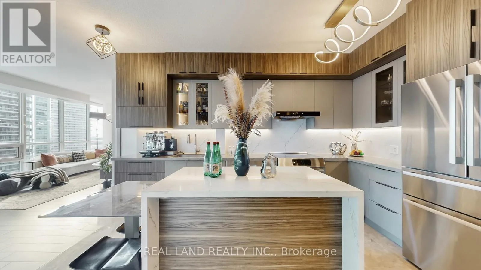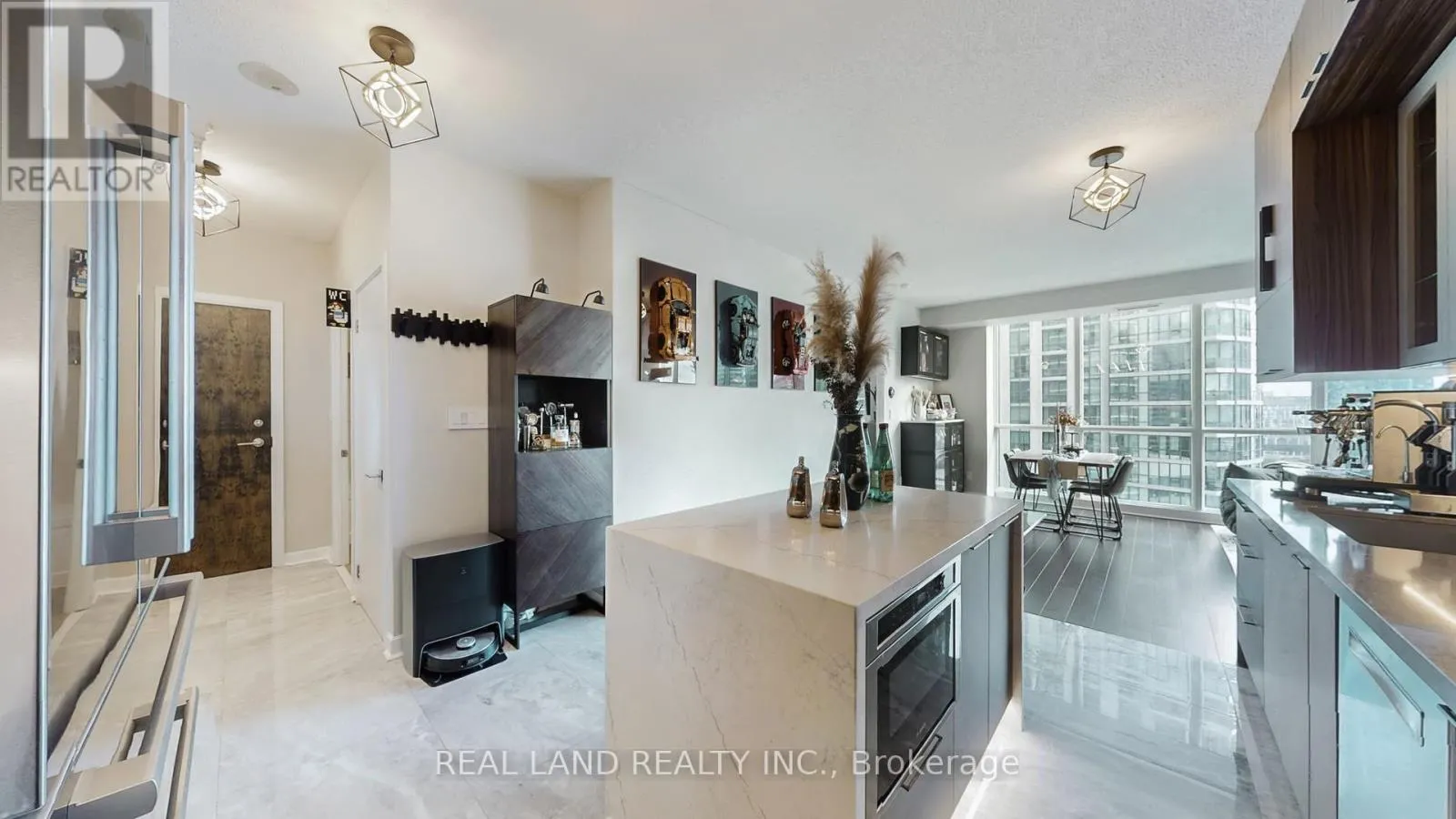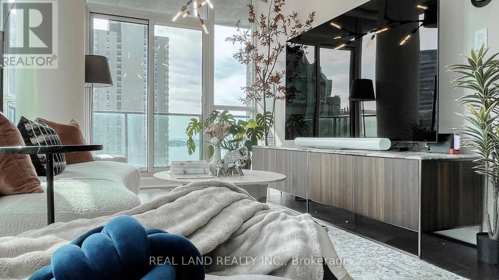 Cross Streets: Bay/Harbour. ** Directions: SW. Stylish recently renovated southeast 2+ Den corner unit with stunning Lake and City views with 2 Car Parking and 1 super big Locker Room. 9Ft Ceiling. The Huge Floor To Ceiling Windows Through Out The Unit, Very Bright & Functional Layout. South east lake view living room can enjoy this water view everywhere, 105 Sf lake view large balcony give you the ultimate outdoor relaxation area. Modern kitchen W big island, high end Bosch Stainless Steel Appl, with a dedicated space for your culinary arts. Two split bedrooms layout provides excellent privacy. This rent includes One Tandem Parking (can park 2 vehicles) and One super big Locker Room behind the parking spot, you can put everything in the Lock Room. Parking and Locker are closed to the elevator. Steps To Union Station, Subway, Harbour Front, Port To Central Island, Parks & Shopping, 5-Star Amenities: A huge GYM, A 70'Lap Large Indoor Pool, Tennis Court, Squash/Raquet Ball, guest suites & More, too many things to list. (id:27476)