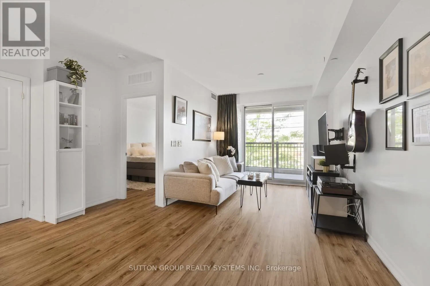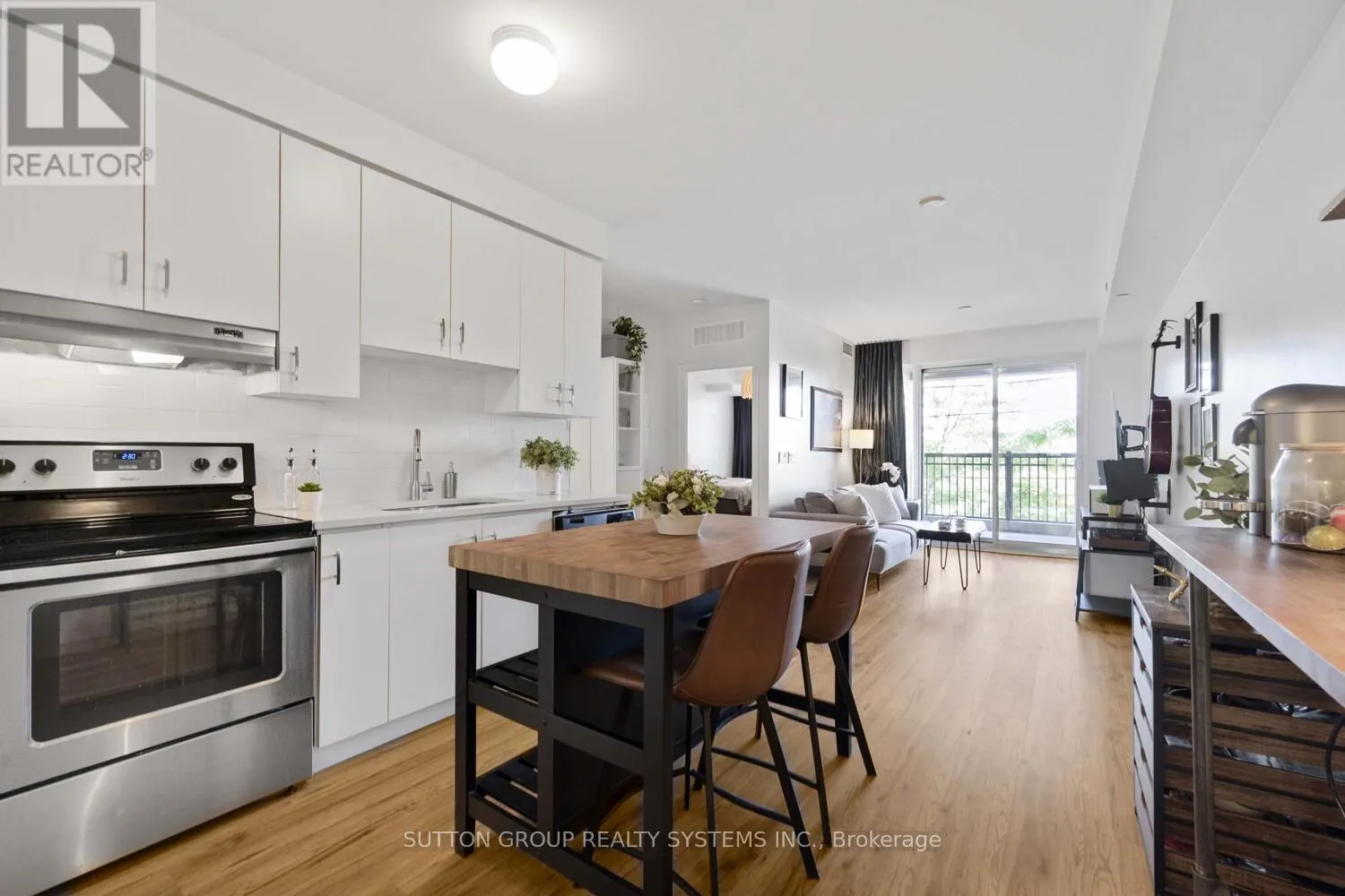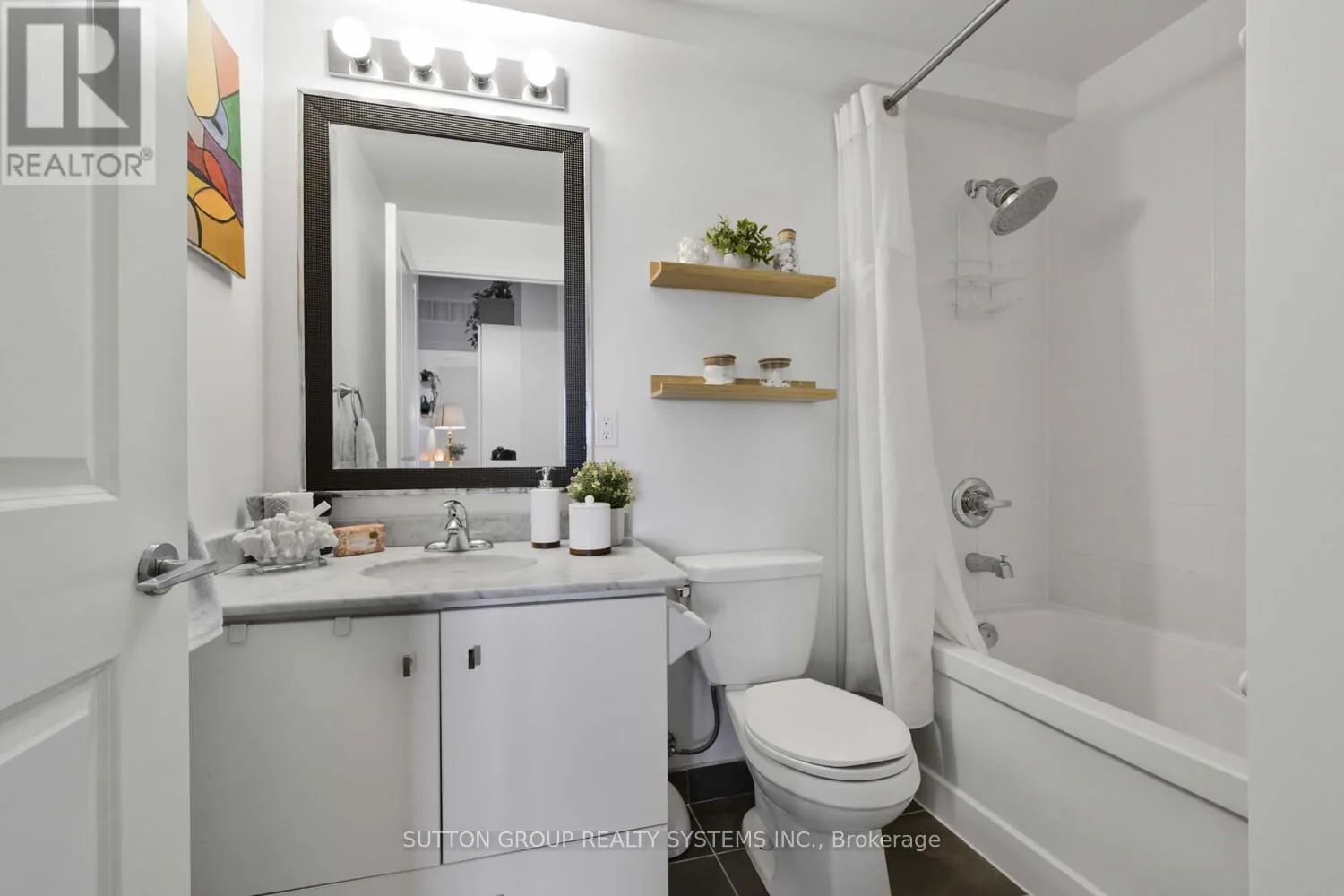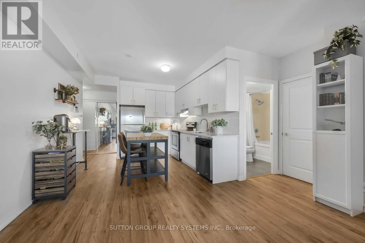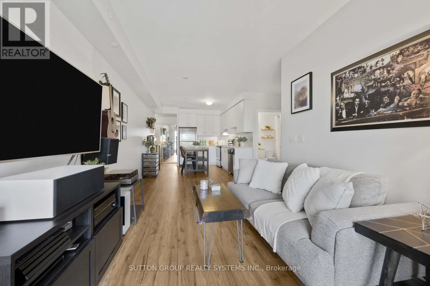 Cross Streets: Lake Shore Blvd West & Long Branch Ave. ** Directions: South of Lake Shore Blvd West & East of Long Branch Ave. Boutique Watermark Residence! Bright and spacious 1-bedroom unit offering nearly 700 sq. ft. of functional living space. Features include 9' ceilings, laminate floors throughout in '2024, floor-to-ceiling windows, and open-concept living with a walk-out to a private balcony. The modern white kitchen is complete with quartz countertops and stainless steel appliances. The generous primary bedroom showcases a custom walk-in closet and a luxurious spa-inspired bathroom.. Originally designed as a 1+Den and converted by the builder into a larger 1-bedroom with a walk-in closet (can easily be reverted). Exceptional location just steps to the Lake, major transit hub (GO, TTC, MiWay), and only minutes to highways, the airport, and premier shopping. Amenities include a fitness room, rooftop deck with BBQ area, and party/meeting room. Conveniently attached to a street-front TD Bank. (id:27476)