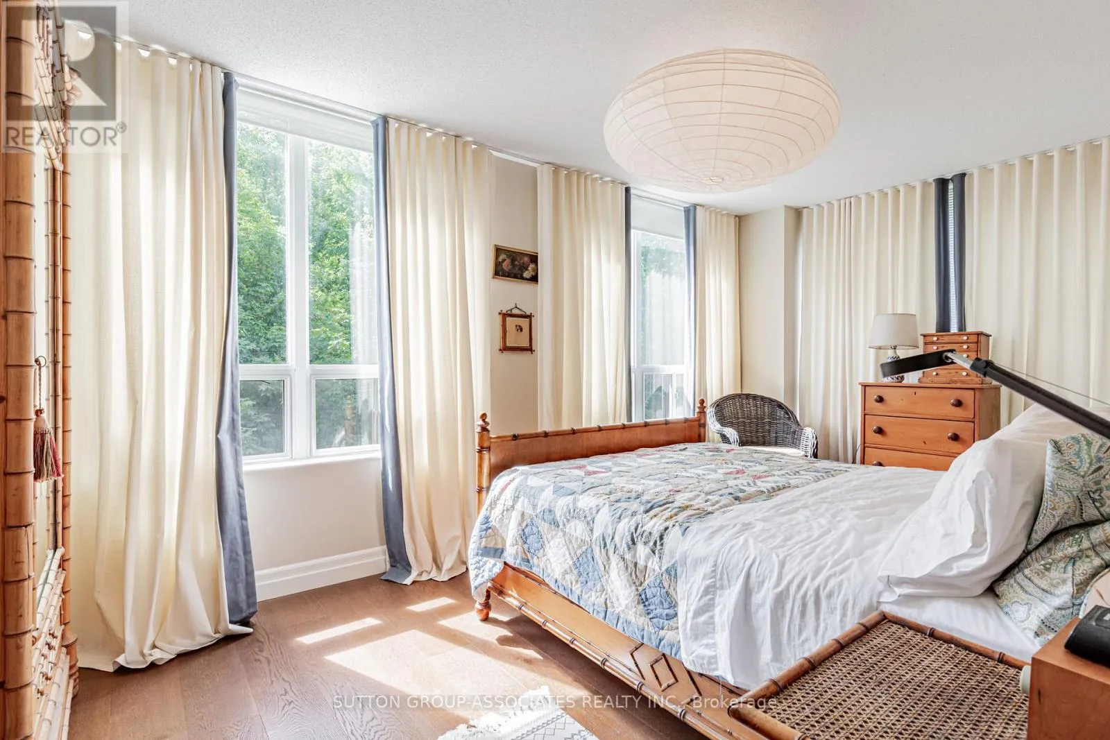 Cross Streets: Between Mt Pleasant/Yonge. ** Directions: on Merton south side. Tucked away on Merton Street, this distinguished corner suite showcases open southwest treetop views. An elevated urban retreat in the heart of midtown. The residence offers two bedrooms and two bathrooms, including a spacious primary suite with a walk-in closet, ensuite bath and room for a king-size bed. A thoughtfully renovated kitchen with a charming breakfast nook complements the bright living room, which opens directly onto a private balcony overlooking the scenic Beltline Trail. Generous proportions and refined finishes throughout create a sense of quiet sophistication. Residents enjoy the convenience of 24-hour concierge service, ample visitor parking, and the exceptional value of maintenance fees that include all utilities. With effortless access to green spaces, the subway, and midtown's vibrant shops and restaurants, this home offers a rare balance of nature and city living. A special serene and spacious unit ready to be called home. (id:27476)