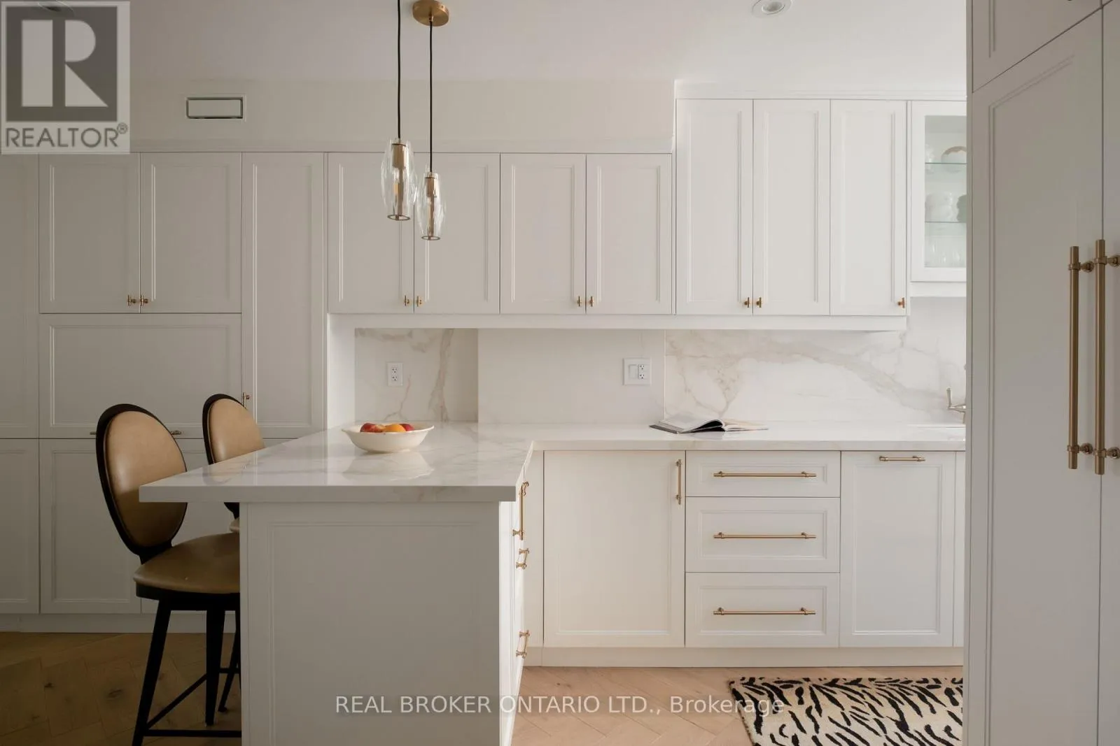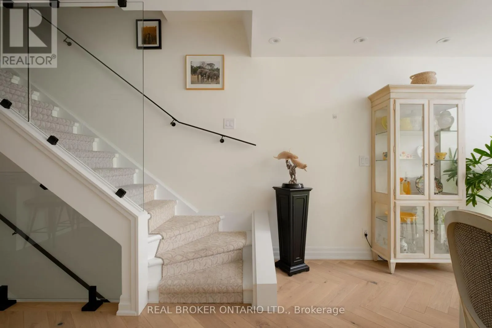 Cross Streets: Mount Pleasant and Blythwood. ** Directions: Off Mount Pleasant. Situated in the heart of midtown, in an exclusive boutique 7-unit complex, this townhouse has been meticulously renovated from top to bottom.A fu ll renovation to the studs ensured every element was rebuilt with intention and care. White oak herringbone flooring flows throughout.The kitchen is both stunning and functional true culinary showpiece. Italian porcelain countertops and backsplash are paired with GE Café appliances, a convection cooktop, panelled dishwasher, soft-close cabinetry with glass inserts, and abundant smart storage. A dedicated coffee bar, filtered water system, and instant hot water tap add both luxury and convenience.Upstairs, the sun-filled primary suite overlooks the park. The spa-like ensuite features marble flooring, designer wallpaper, storage mirrors, and distinctive lighting. The second bedroom has been transformed into a custom walk-in closet and dressing room with shoe storage and designer cabinetry, though it can easily be returned to a bedroom if desired. The lower level offers heated floors, a living area anchored by a custom Italian porcelain fireplace with bespoke mantle, and a private third bedroom perfect for guests. New washer and dryer, laundry sink with storage, Zellige tile backsplash, and a custom drapery system.Outdoor living is exceptional, with three private spaces: a rooftop deck with treetop views, a primary bedroom balcony, and a backyard terrace for dining or entertaining. The home also includes an oversized indoor secure parking space and a large private storage room are conveniences in midtown living.direct relationship to Sherwood Park, one of Toronto's most cherished green spaces. With winding trails, an off-leash dog park, and a canopy of trees that transform with the seasons, it offers an ever-changing natural backdrop. The private grounds feature lush gardens and an outdoor pool, while the well-managed building is steps from the citys best restaurants, shops, cafés, and transit. (id:27476)
