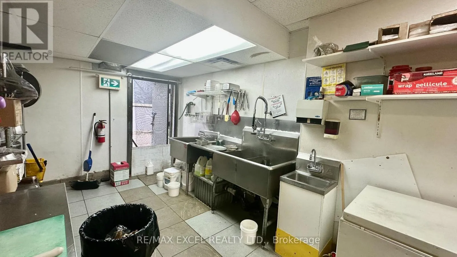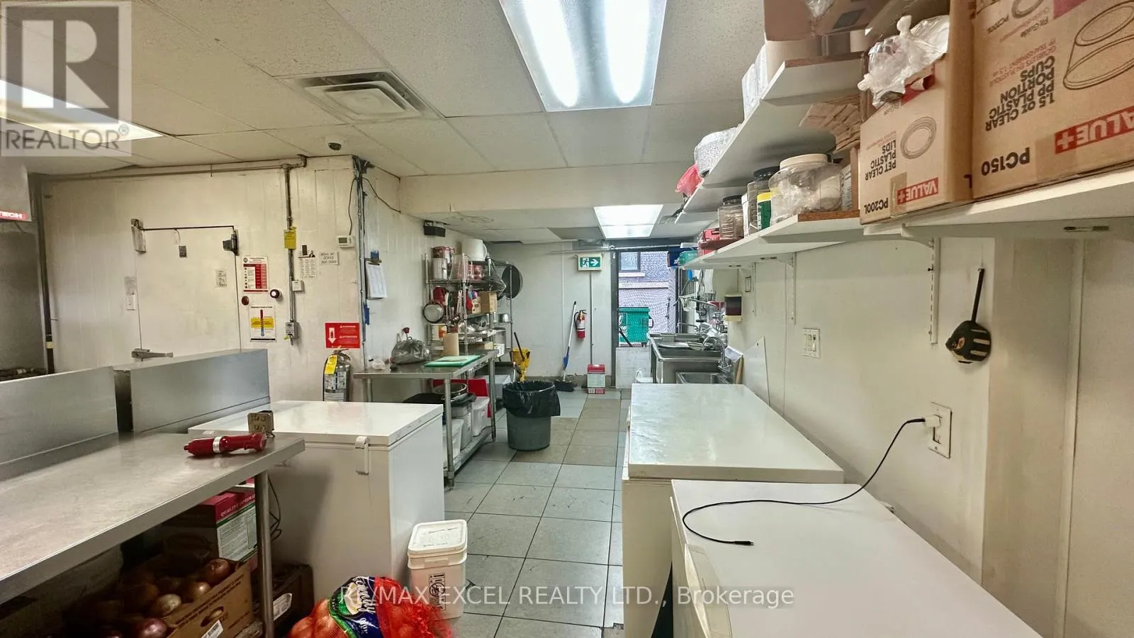Cross Streets: Marlee & Glencairn. ** Directions: South Lawrence W. This is a great, affordable quick-service restaurant (QSR) located on Marlee Street, off Lawrence West, within a strip plaza. It is currently operating as a burrito take-out restaurant and has approximately 800 square feet of space on the main floor, in addition to a basement for storage. The kitchen layout is excellent and includes an 8-foot kitchen hood and a walk-in cooler. There is also one parking spot available at the back of the building. The current lease, at approximately $3,500 + HST, expires in 2028. A new lease can be negotiated with the landlord. (id:27476)
