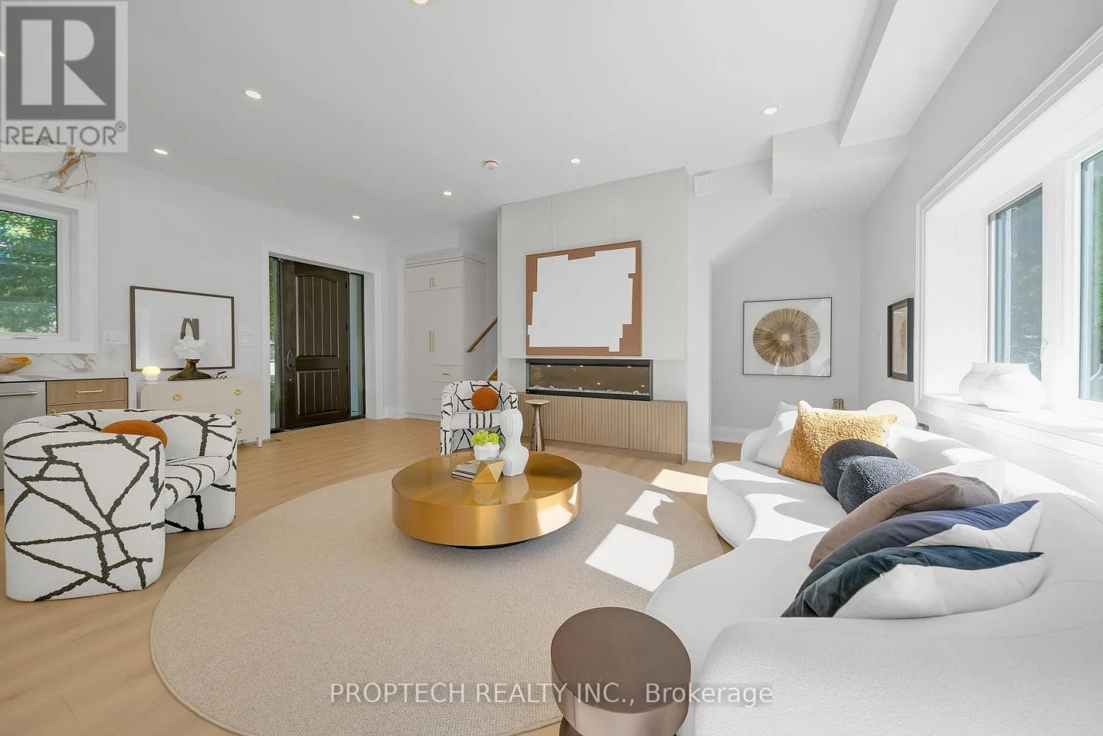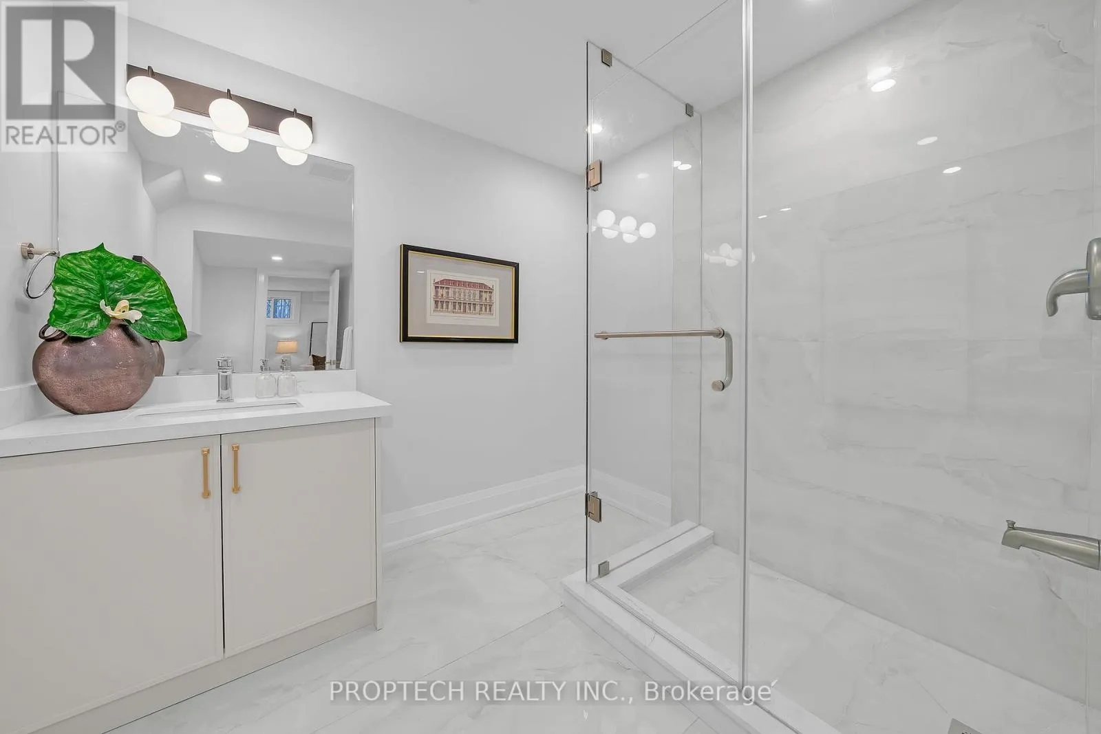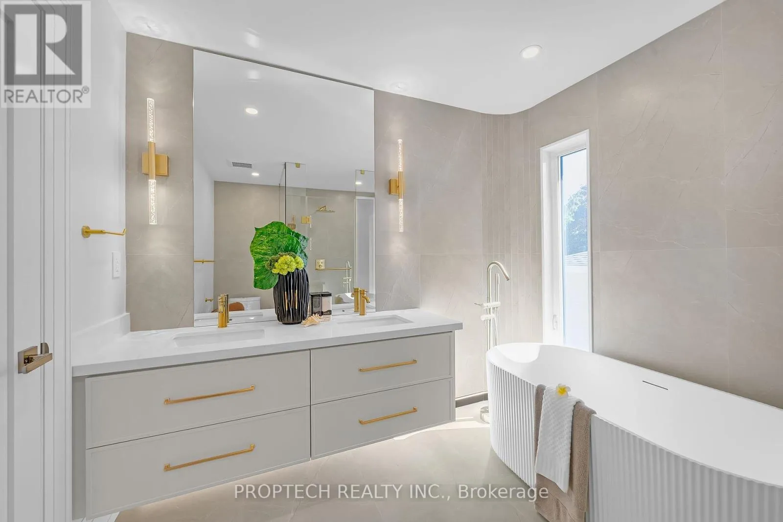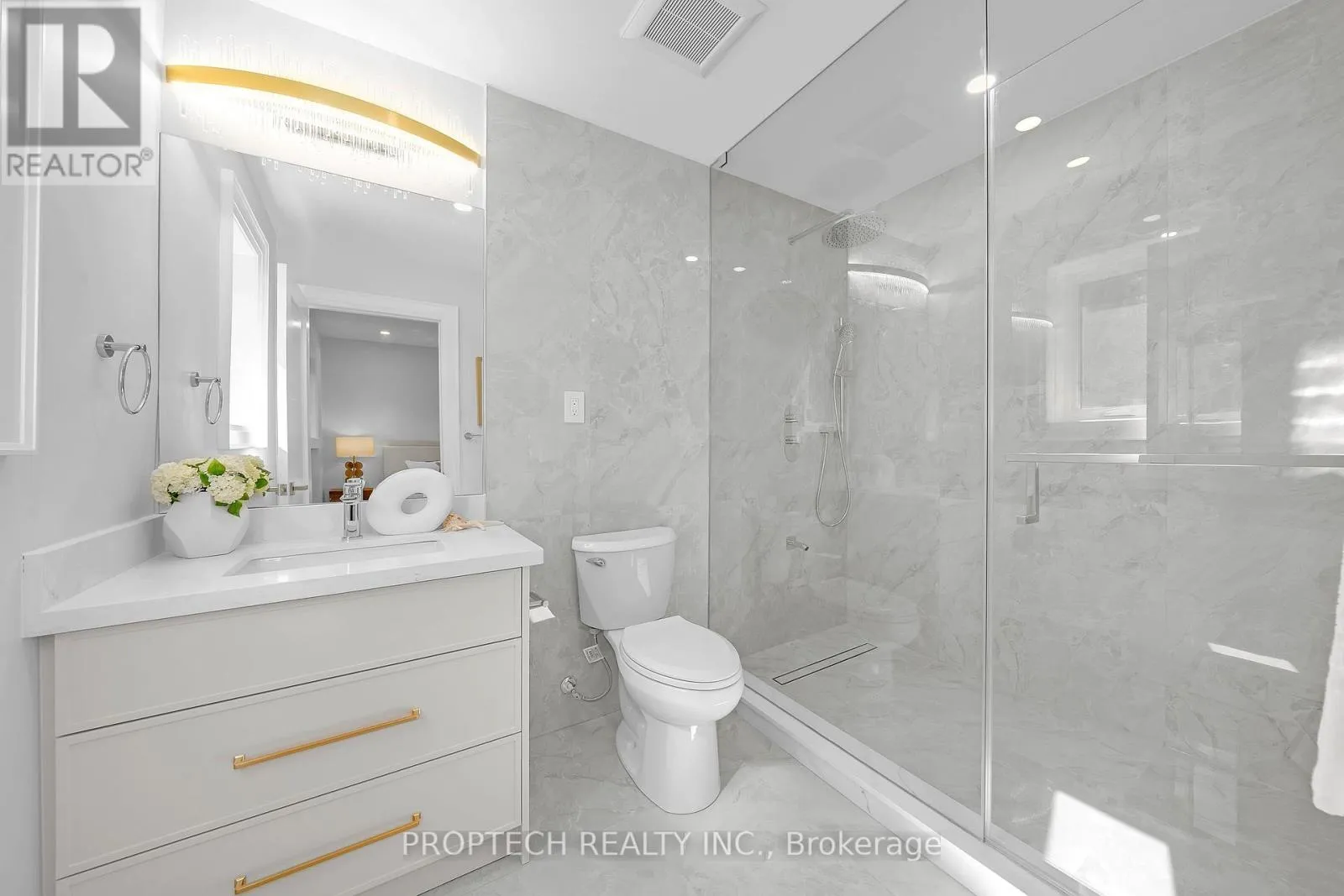 Cross Streets: Sheppard/Don Mills. ** Directions: Google. Welcome to 5 Trailside Dr! Stunning Custom Remodelled Detached 4 Bedroom & 4 Bath, including a Brand-New 2nd Level Addition in Prime North York Location. Beautifully Finished from top to bottom. This home features, 10 Ft ceiling on Main, Smooth Ceilings, Pot Lights and Hardwood Flooring throughout and Brand New Windows & Roof. Entirely Open Concept Main Floor with Abundant Sunlight from all sides, Custom Built-in Closets. Living Room boasts a Sleek Feature Wall with a built-in Modern Linear Electric Fireplace. True Showroom Kitchen, featuring a Oversized Waterfall Island w/ Breakfast Bar and matching Countertops and Backsplash. Premium Stainless Steel Appliances and Custom Soft-close cabinetry. Sun-Filled Dining Room with Modern Elegant Lighting Fixtures. New Second level features a Skylight, contemporary Glass Railing, a Primary Bedroom with an Expansive Walk-in Closet, walkout to Large Private Patio. Luxurious Spa-inspired Primary Ensuite featuring a Freestanding Soaker Tub, Glass-Enclosed Shower with Built-in Shower Bench and accent lighting, Modern Floating Double Vanity and cohesive large-format porcelain tile carried from floor to wall! All Bedrooms are Generously Sized Bedrooms with Contemporary Closet Sliding Doors. Bedroom 3 acts as second Primary with Oversized Walk-in Closet and Designer 3 Piece Ensuite. Finished Lower Level with Family Room. Upgraded 200-AMP Electrical Breaker Panel for enhanced capacity! Step into a Professionally Landscaped Backyard featuring mature trees with Privacy, an interlocked patio, and exterior pot lights. Mere Mins from Fairview Mall, Don Mills Station, Supermarkets, Hwy 401 & 404 and much More! (id:27476)