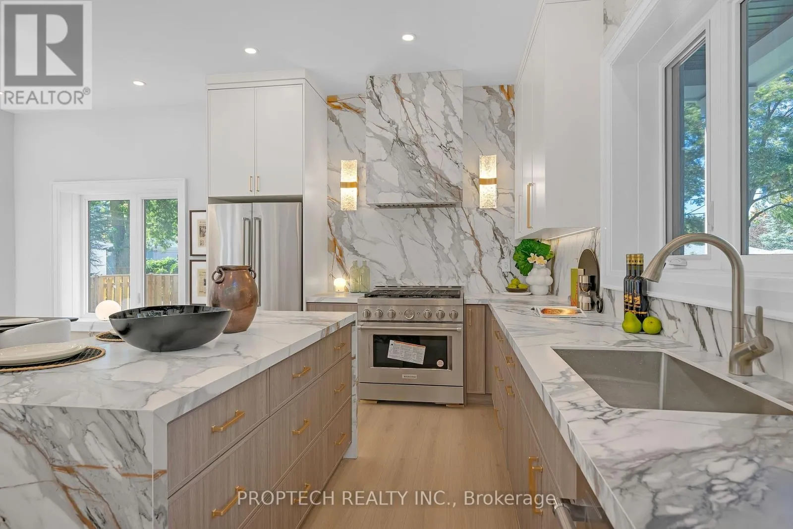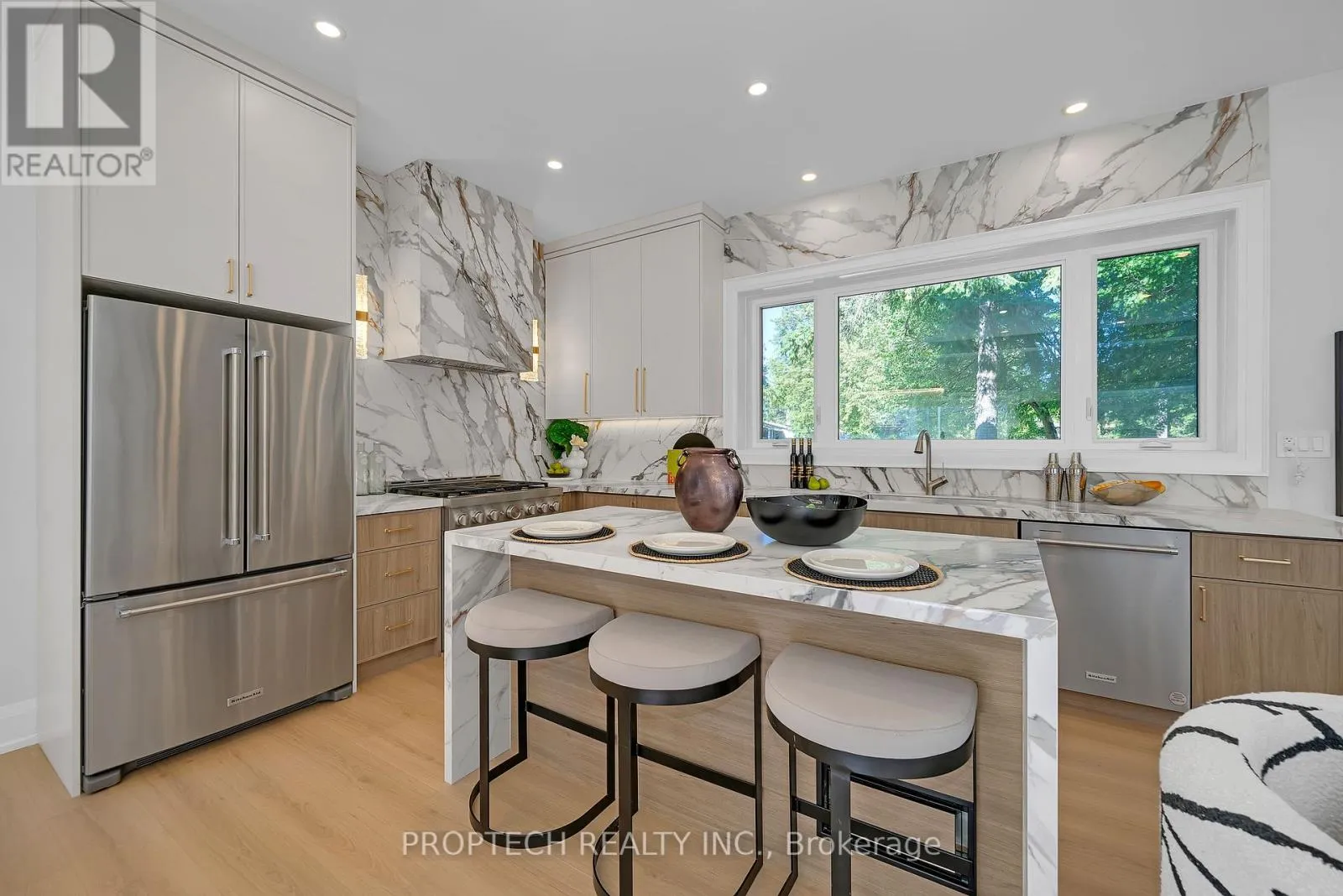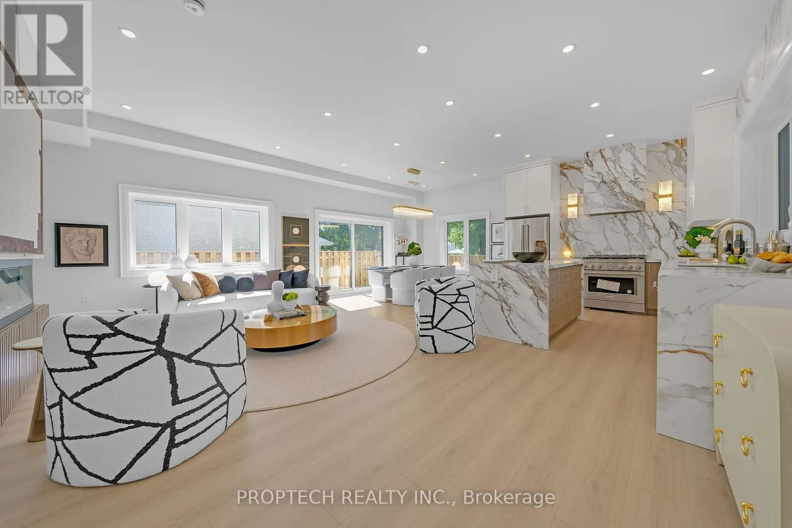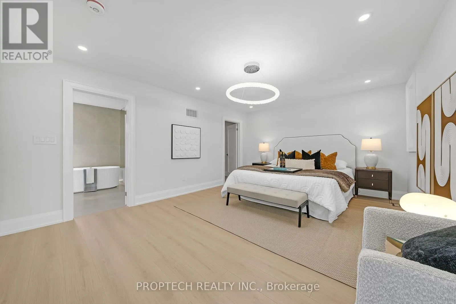 Cross Streets: Sheppard/Don Mills. ** Directions: Google. Welcome to 5 Trailside Dr! Stunning Custom Remodelled Detached 4 Bedroom & 4 Bath, including a Brand-New 2nd Level Addition in Prime North York Location. Beautifully Finished from top to bottom. This home features, 10 Ft ceiling on Main, Smooth Ceilings, Pot Lights and Hardwood Flooring throughout and Brand New Windows & Roof. Entirely Open Concept Main Floor with Abundant Sunlight from all sides, Custom Built-in Closets. Living Room boasts a Sleek Feature Wall with a built-in Modern Linear Electric Fireplace. True Showroom Kitchen, featuring a Oversized Waterfall Island w/ Breakfast Bar and matching Countertops and Backsplash. Premium Stainless Steel Appliances and Custom Soft-close cabinetry. Sun-Filled Dining Room with Modern Elegant Lighting Fixtures. New Second level features a Skylight, contemporary Glass Railing, a Primary Bedroom with an Expansive Walk-in Closet, walkout to Large Private Patio. Luxurious Spa-inspired Primary Ensuite featuring a Freestanding Soaker Tub, Glass-Enclosed Shower with Built-in Shower Bench and accent lighting, Modern Floating Double Vanity and cohesive large-format porcelain tile carried from floor to wall! All Bedrooms are Generously Sized Bedrooms with Contemporary Closet Sliding Doors. Bedroom 3 acts as second Primary with Oversized Walk-in Closet and Designer 3 Piece Ensuite. Finished Lower Level with Family Room. Upgraded 200-AMP Electrical Breaker Panel for enhanced capacity! Step into a Professionally Landscaped Backyard featuring mature trees with Privacy, an interlocked patio, and exterior pot lights. Mere Mins from Fairview Mall, Don Mills Station, Supermarkets, Hwy 401 & 404 and much More! (id:27476)