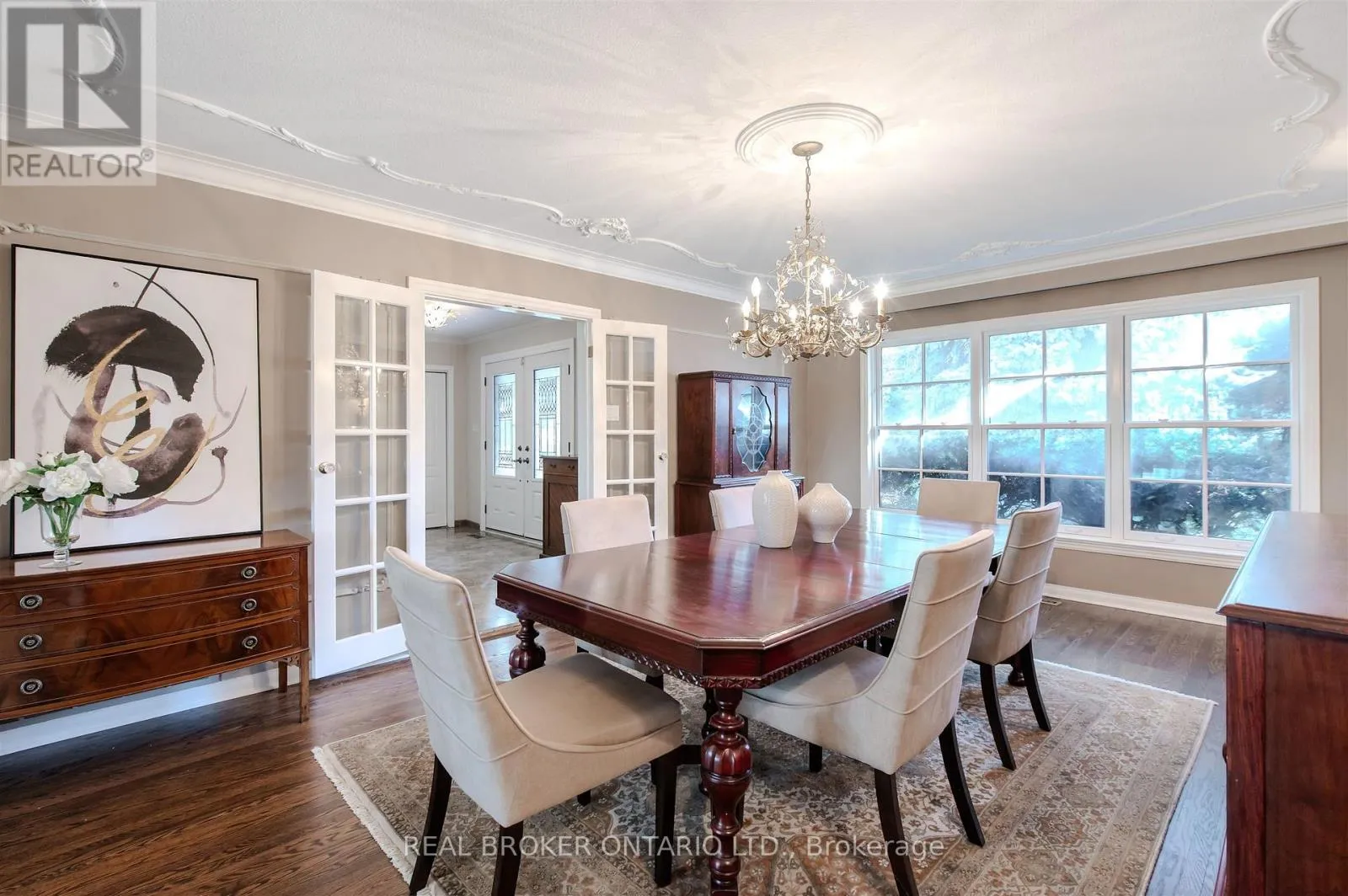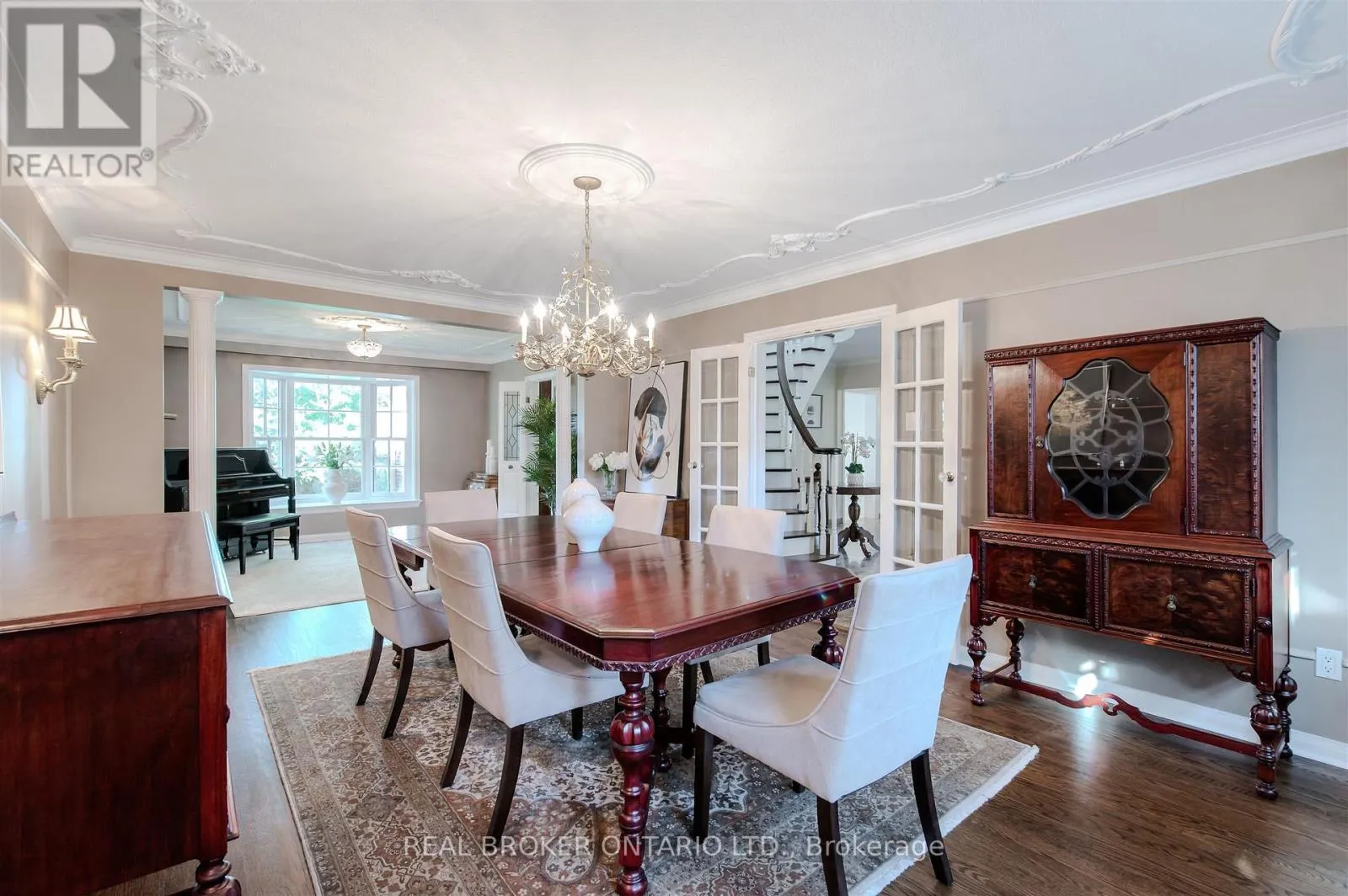 Eglinton Ave W & Martin Grove Rd Tucked away on a family-friendly cul-de-sac, this traditional two-storey offers timeless comfort with refined entertaining spaces. Spanning approximately 3,000 square feet and featuring a double attached garage, the home opens to a welcoming foyer, expansive living and dining rooms, and a large eat-in kitchen. Move-in ready with thoughtful updates, it invites you to make it your own. The main level is bright and open, with a natural flow for everyday living and hosting. The five second-floor bedrooms provide a versatile layout for larger families, while the primary suite features an ensuite and a custom walk-in closet. The updated four-piece family bathroom serves the remaining bedrooms. The lower level, fully and recently updated (2020), offering an additional 1700 sf includes a recreation room, games area, bar, laundry room, yoga/stretch space, and a rough-in for a second kitchen, offering exceptional flexibility for gatherings or retreat spaces. The neighbourhood is a quiet, family-oriented street within walking distance to schools and parks, with easy access to major routes and minutes to the airport for commuting. This home stands out for quality craftsmanship, traditional design, and modern updates. Move-in ready with room to personalize and grow. (id:27476)