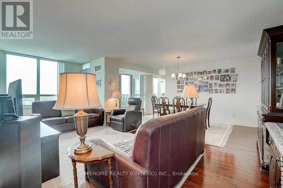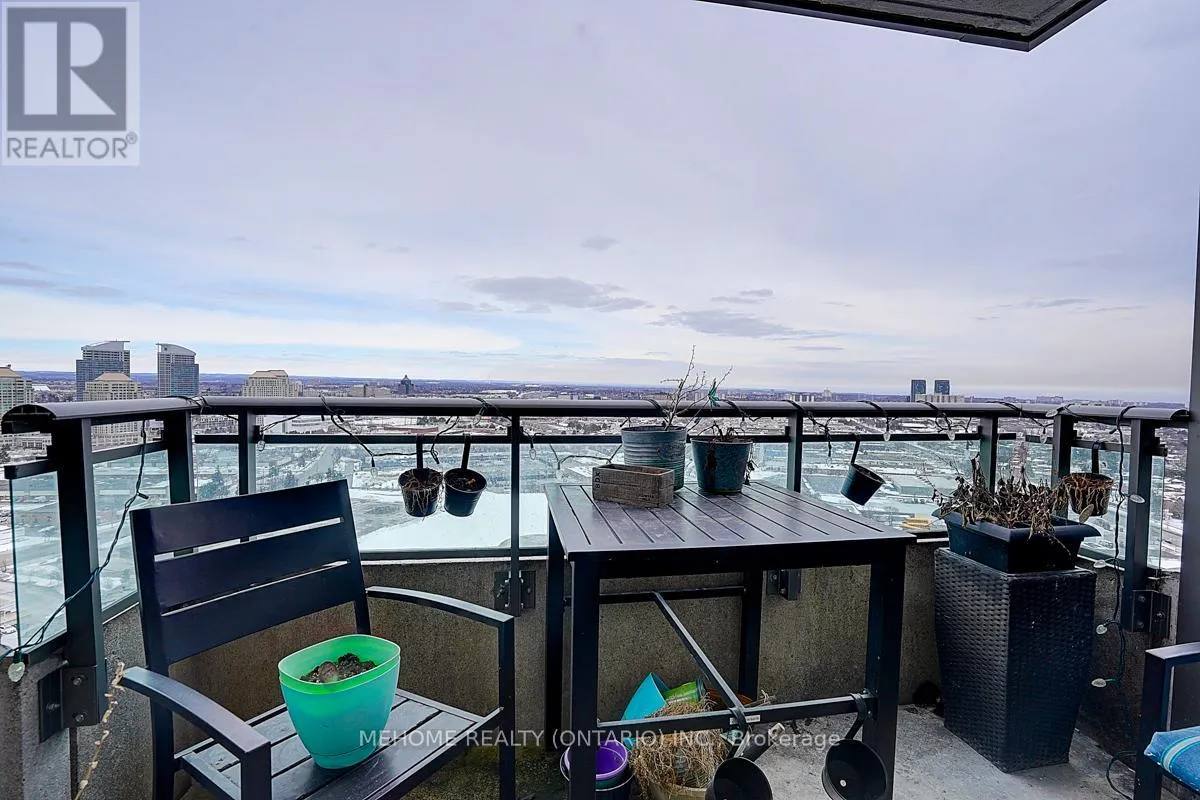 Mccowan/Ellesmere A stunning 1,459 sq. ft. suite with unobstructed skyline views, featuring 2 bedrooms + den (can be used as a 3rd bedroom), 2 baths, hardwood floors, 2 balconies, an oversized primary suite with 2 walk-in closets and ensuite, a gourmet eat-in kitchen with breakfast bar, 2 oversized parking spots on the same level as the locker, and top-tier amenities including 24-hour concierge, indoor pool, guest suite, billiards, and media rooms, all just steps from the subway, Scarborough Town Centre, and groceriesoffering a bright, spacious layout that feels like a house. (id:27476)