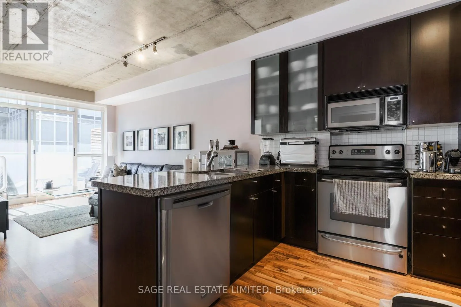 Cross Streets: King St. W & Shaw St. ** Directions: King and Shaw. This is an excellent unit in a great building. Very well laid out with a proper kitchen, good sized bedroom with lots of closet space and a useful den. Big, south facing windows let in lots of light and from the balcony you can take in the iconic Toronto skyline view. Living here, You're super close to Trinity Bellwoods Park, Ossington, Liberty Village and a whole bunch of Torontos favourite shops and restaurants. One convenient parking spot so you're ready for a weekend getaway and the King Street streetcar is at your front door. It's truly a fantastic place to call home, come and see for yourself. (id:27476)