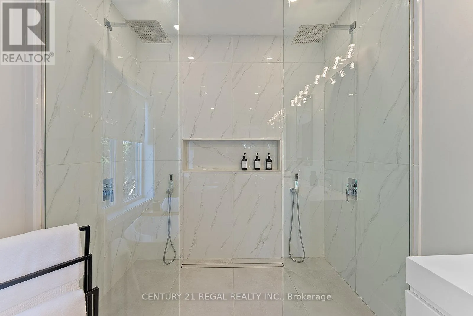 Cross Streets: Victoria Park & St. Clair Ave East. ** Directions: Located on the street Bexhill. WELCOME TO 84 BEXHILL AVE! Step into this Luxurious 5 Bedroom/5 Bathroom Custom Built Home in the City of Toronto with a Double Car Garage! Enjoy over 4800sq.ft of living space! Enter this massive open concept modern home w/soaring 12ft. ceilings on the main floor, back walk-out nearing floor to ceiling windows/opening to the patio, wired built-in speakers inside/outside the home for entertaining. A Dream Chefs Kitchen with High End MIELE appliances, massive 13ft waterfall quartz center island and backsplash. Open Concept main floor level features a gas fireplace, dining area, powder room and 2 additional Den/Office spaces above ground. Enjoy an Extra Level of space w/a Raised Floor to the family room in this open concept space. Walk up to the 2nd Level w/5 BEDROOMS and large sky lights above the Open Riser Staircase providing natural sunlight with sleek glass panel railing system adds to this upscale modern look. A Master Ensuite w/true hotel-like retreat feel of relaxation w/ Walk-out Balcony to enjoy your reading/coffee in the AM, His/her Closets and a Walk-in closet. The Master 6pc Ensuite Bathroom entails a free-standing tub, double sinks and double rainfall shower heads. 2nd Bdrm features a juliet balcony and large closet. 3rd bdrm features floor to ceiling windows and a large closet. 4th and 5th bedrooms are also impressive with large windows for space. Skylights also featured in the bathroom and large 2nd floor laundry room w/custom cabinetry storage and large linen closet.The Basement is the ultimate space with Rec/Gym space that is a must see! The Basement has another Bedroom w/massive Walk-in Closet,4pc Bathroom and a convenient walkout to the privacy fence and fully landscaped backyard.This home has been carefully designed and no expenses spared. Stunning property close to schools, hospitals, grocery stores, parks, hwy's, TTC and more! (id:27476)