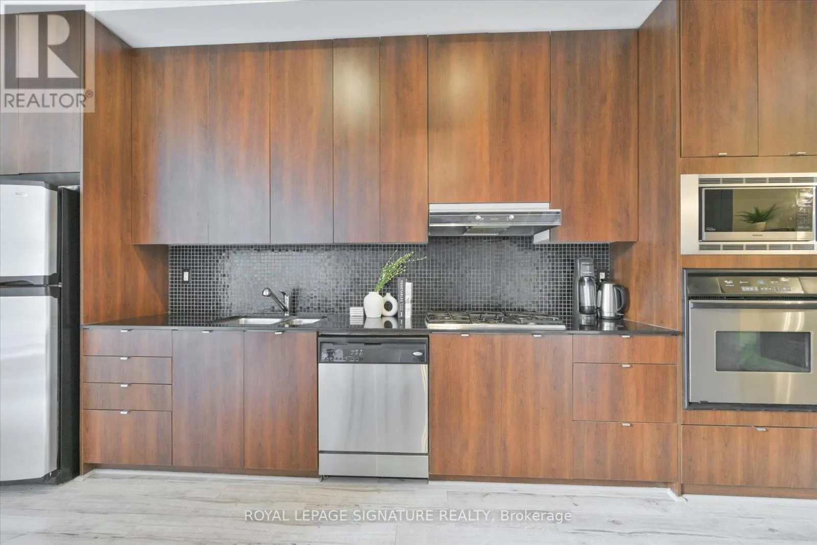 Adelaide/Spadina Live in Style at Quad Lofts King Wests Best Kept Secret! Step into over 860 sq ft of bright, open living right in the heart of downtown. This spacious 1+den loft at Quad Lofts is tucked away in a quiet courtyard, yet only steps to King, Spadina, and Adelaide. With soaring 10-ft ceilings, huge floor-to-ceiling windows, and polished concrete floors, this loft mixes cool industrial vibes with modern comfort. The sleek kitchen has built-in appliances, lots of storage, and a stylish backsplashperfect for cooking, entertaining, or winding down after a busy day. The oversized den has sliding doors and is fully encloseduse it as a second bedroom, office, or guest room. This flexible layout adapts to your lifestyle and gives you room to grow. Outside your door, enjoy a vibrant community Nutbar cafe and Othership wellness studio are just around the corner, St. Andrews Dog Park is across the street, and the TTC is at your doorstep. With top walk, bike, and transit scores, youre connected to everything. Underground parking is included. Whether youre a first-time buyer or a busy professional, this is your chance to own in one of King Wests most sought-after buildings. (id:27476)
