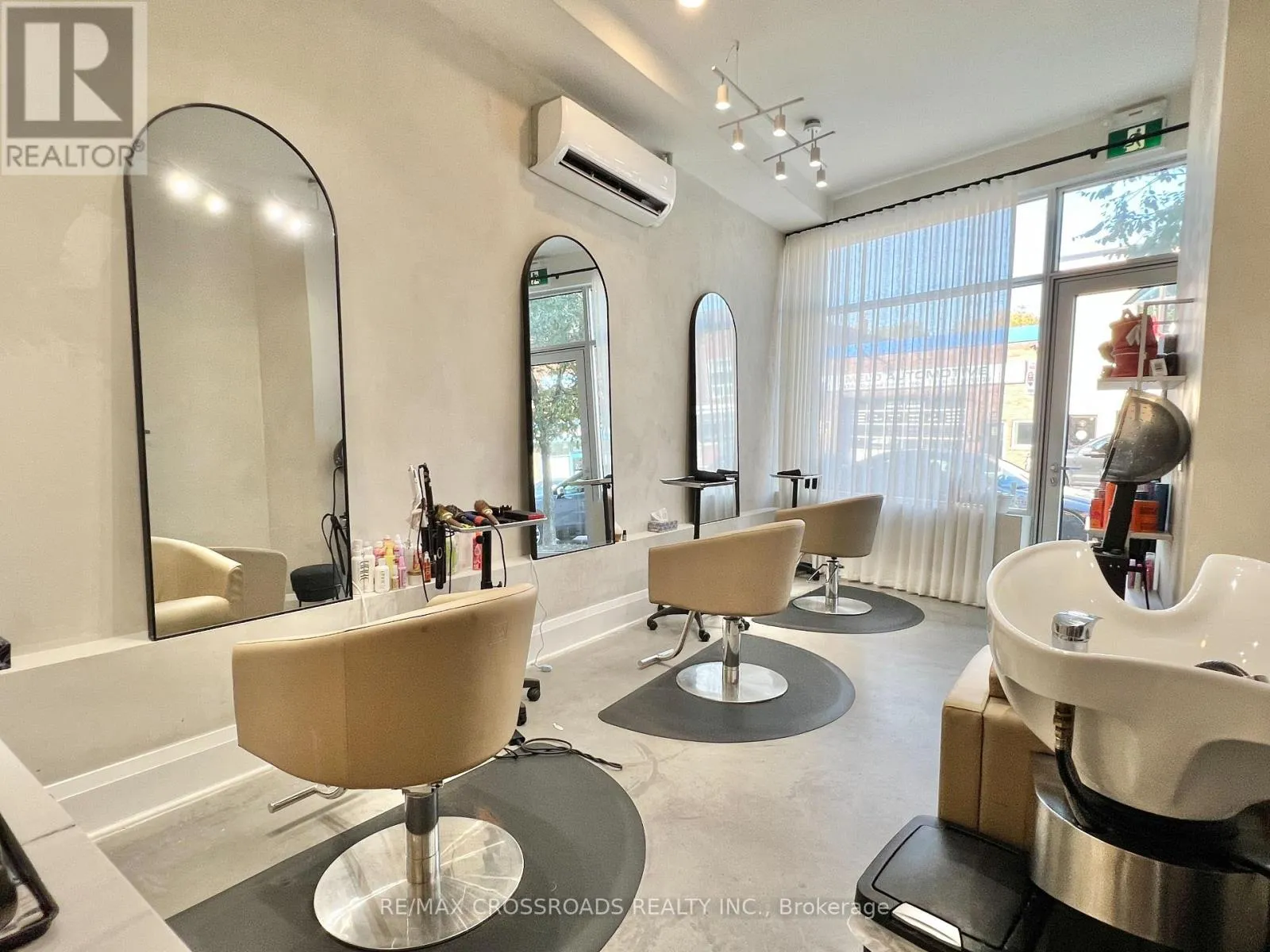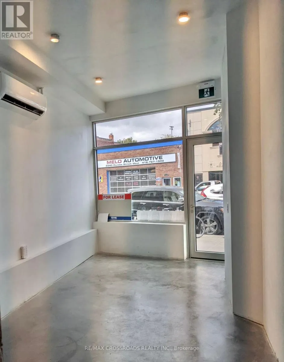 Dundas St W/Runnymede Newer modern retail unit with low front window, high ceiling, 2 pc washroom, excellent exposure in trendy and popular junction village. High pedestrian zone. Ample access to street parking and Green P just steps away. Open concept plan with extra sound insulation in walls. Space is suitable for professional office, hair salon, quick serve food/beverage, retail store/service, art studio, massage therapy, main floor area approximately 300 sqft and basement (low ceiling) 400 sqft for storage. Includes washer and dryer in basement. Tenant pays: Rent + TMI ($500/mth) + HST & tenant insurance & hydro (metered separately). Water is included. Heating/AC system is electric wall unit. (id:27476)