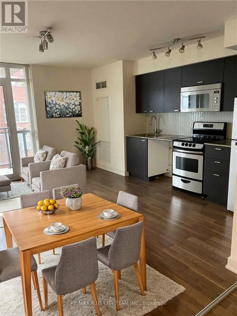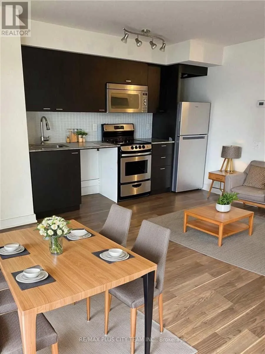 Cross Streets: King/Bathurst. ** Directions: King/ Tecumseth. Discover contemporary urban living at its best in this stylish 1-bedroom, 1-bathroom suite located in a boutique, low-rise building in the heart of downtown. Thoughtfully designed with a bright open-concept layout, this spacious home features modern finishes throughout. The sleek kitchen is equipped with stainless steel appliances, quartz countertops, and a functional island that flows seamlessly into the living and dining area, ideal for both everyday living and entertaining. Both bedrooms are generously sized with ample natural light, including a primary suite with its own private ensuite. Floor-to-ceiling windows provide a beautiful city backdrop, creating a warm and inviting ambiance. Additional highlights include in-suite laundry, central air conditioning, and great storage options. Enjoy access to impressive building amenities such as a fitness centre, party room, meeting room, and 24-hour concierge. Perfectly positioned near top restaurants, cafes, shops, and public transit, this condo offers the ultimate blend of comfort, style, and convenience in one of Toronto's most vibrant neighbourhoods. An ideal opportunity for end-users and investors alike, don't miss it! (id:27476)