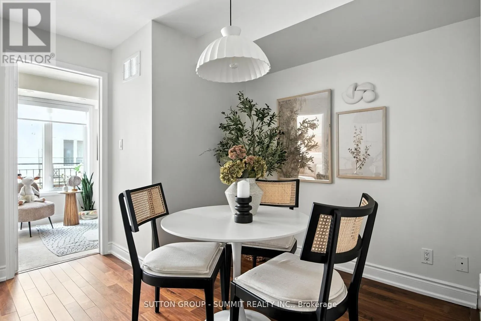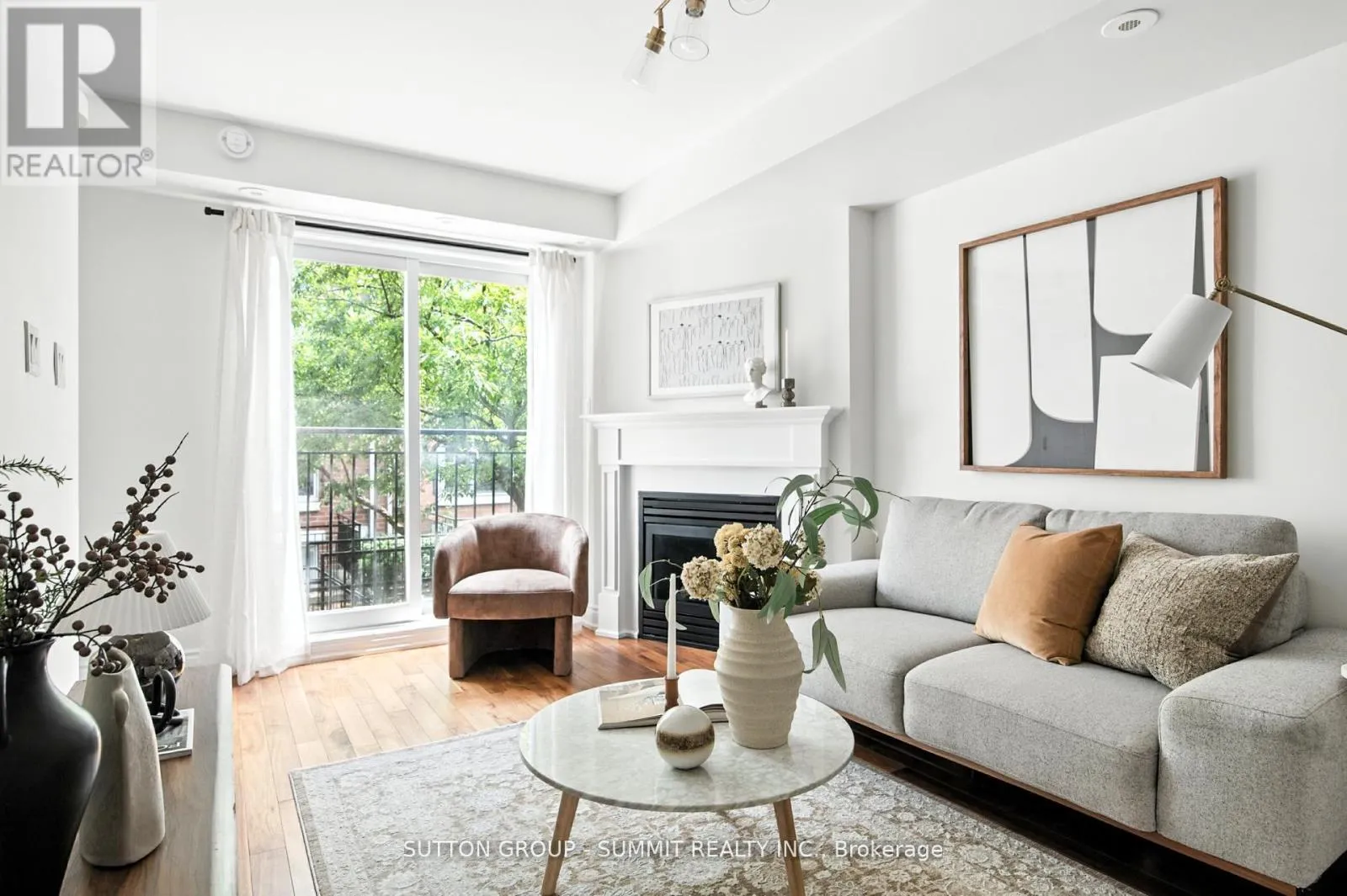 King St W and Dufferin St This Gorgeous 2-Bedroom plus Den Townhome with parking truly stands out from the typical Toronto inventory. Freshly renovated, with a brand new custom kitchen featuring quartz waterfall countertops, gold hardware, brand new stainless steel appliances, brand new double sink with new faucet and beautiful upgraded cabinetry. Set in a charming complex, surrounded by tons of lush trees this unit offers a rare blend of peaceful, park-side living, while being steps away from the energy of Liberty Village, King West, and Queen West. The living room features beautiful real hardwood floors, a gas fireplace, chic new lighting, and sliding doors with a Juliette balcony that lets natural light pour in. The extra den is the perfect flexspace ideal for your home office or a dining room table. The primary bedroom is a great size with a walk-in closet and direct access to a private outdoor patio retreat. Bathroom has been revamped with a new oak vanity, new mirror, new gold fixtures and faucet, new floor tile, and a new shower head. Additional upgrades include: popcorn ceiling removal, freshly painted throughout (including ceilings, doors and baseboards), new floor tiles throughout, plush new carpeting in the bedrooms, new modern door handles, new curtain rods, new curtains and stylish new 5-inch baseboards. Front hall closet makes it easy to store coats and shoes, with an additional big storage closet under the stairs for larger items. Preferred Main floor unit, not a basement unit, and no steep stairs upon entry. Ideal for Buyers who value location but crave a quieter, more grounded alternative to high-rise condo life in Toronto. Truly move-in ready, every detail has been carefully taken care of - there is no need to lift a finger! (id:27476)