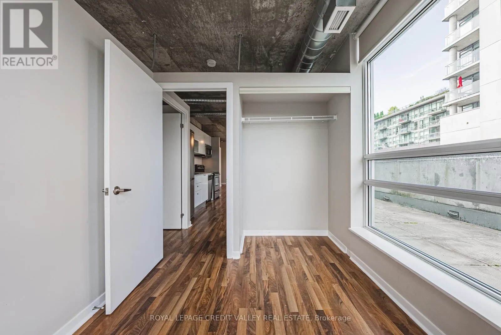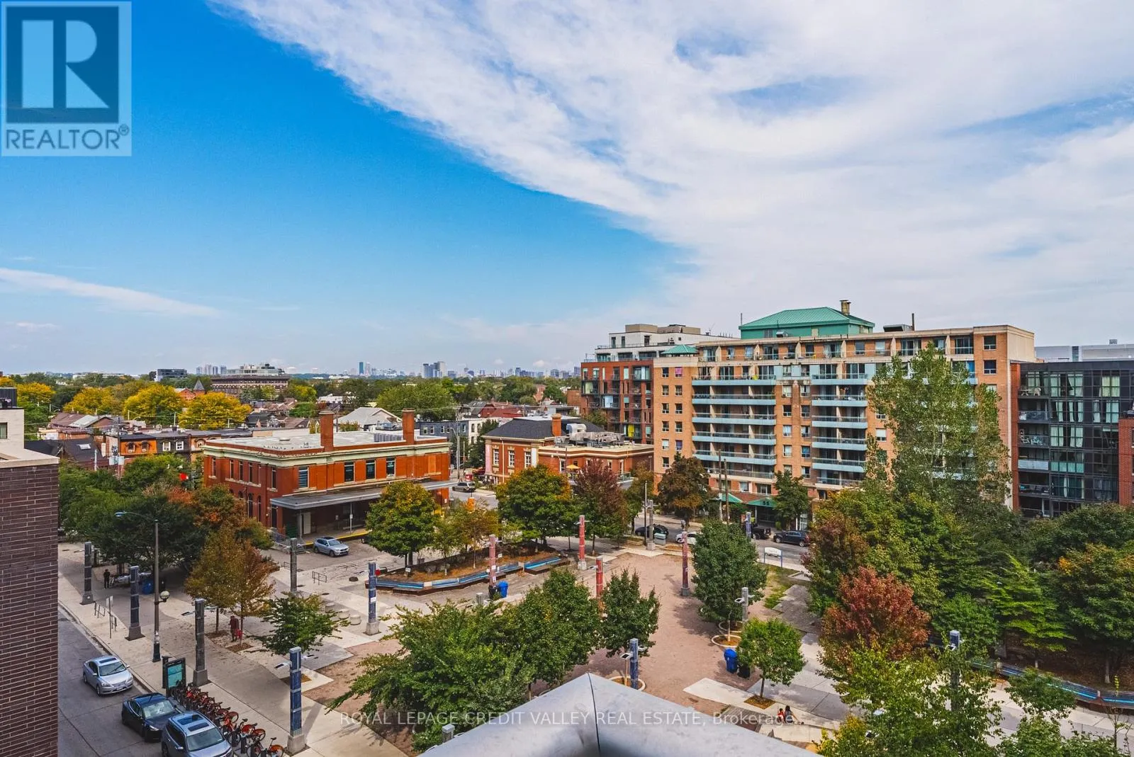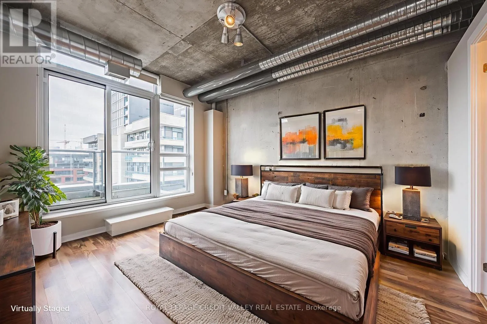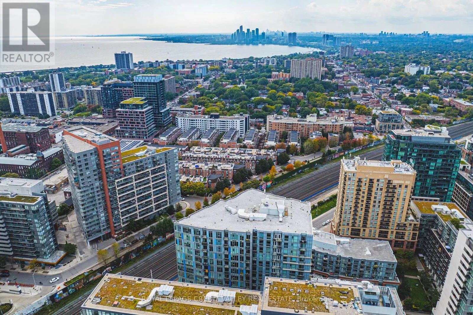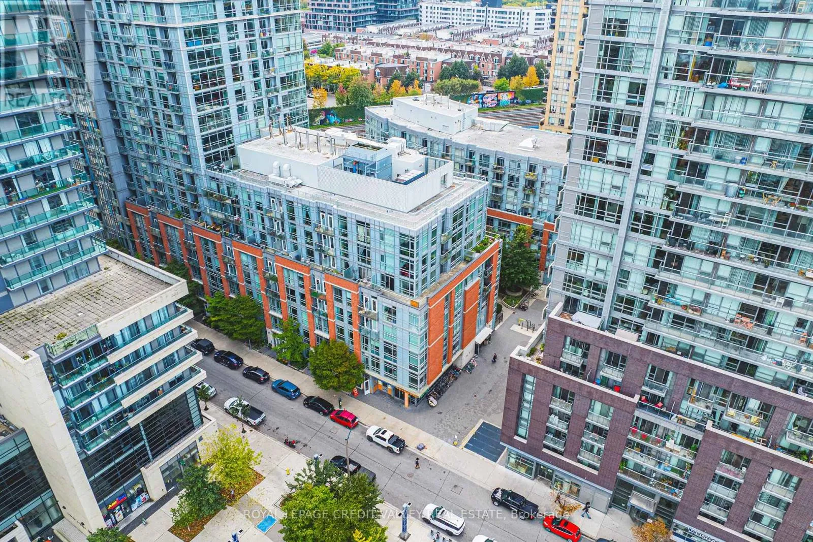 Dufferin and Queen This stunning LOFT STYLE corner unit in the heart of Toronto's west end combines urban sophistication with unmatched outdoor living. Featuring 2 Bedrooms, 2 washrooms, and the crown jewel an impressive HUGE private terrace, this home offers the perfect balance of style, comfort, and convenience. Added Features include bright and airy open concept layout, eat in kitchen with stainless steel appliances, primary bedroom includes 4pc. ensuite, double closet and walkout to terrace. Second bedroom perfect for guests, office, or studio. Two full washrooms. Corner exposure providing privacy, light, and unobstructed city views, Expansive corner terrace one of only a few in the entire building rare find, perfect for lounging, dining, or entertaining outdoors. For added convenience Locker and underground parking are included. Located Steps from TTC, restaurants, shopping and abundant night life like the Drake Hotel, minutes from waterfront and parks along Lake Ontario perfect for morning runs, walks or picnics. This home can accommodate a young family starting out or large enough for the complete Family ! (id:27476)