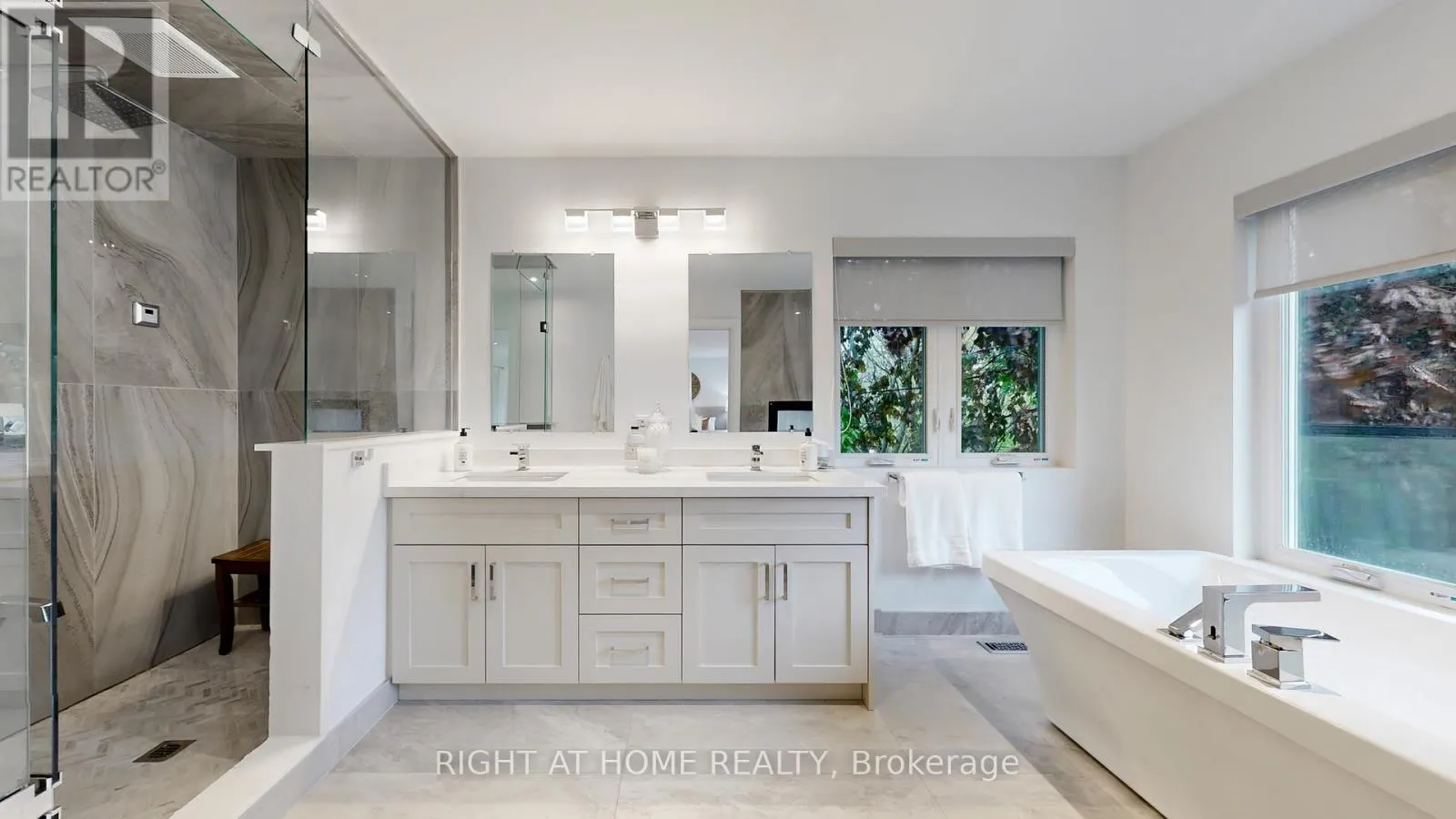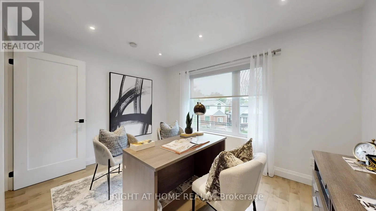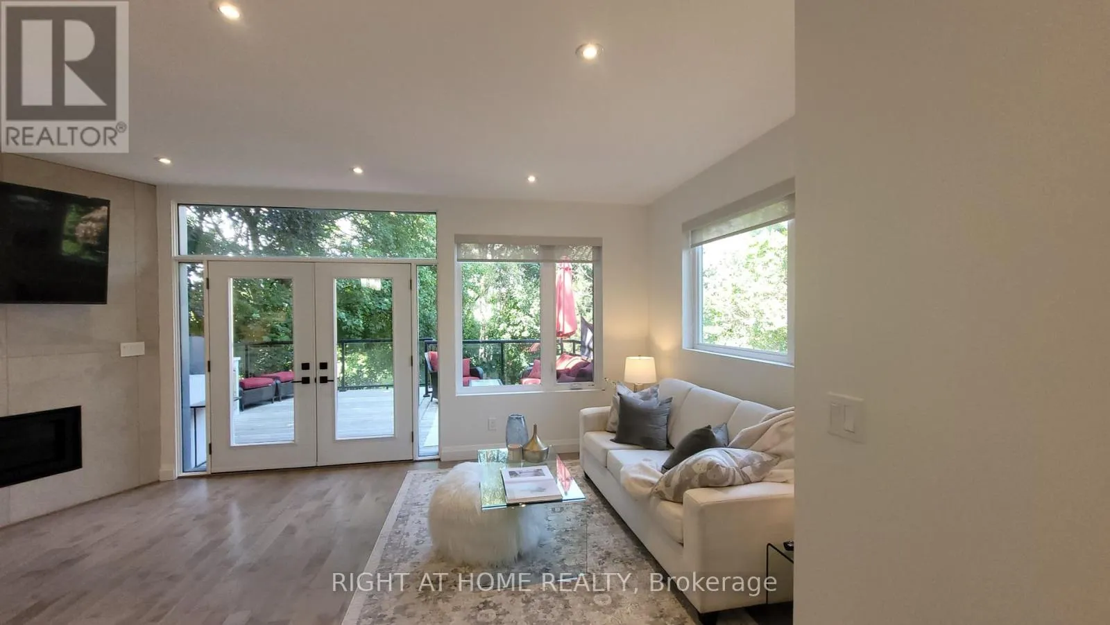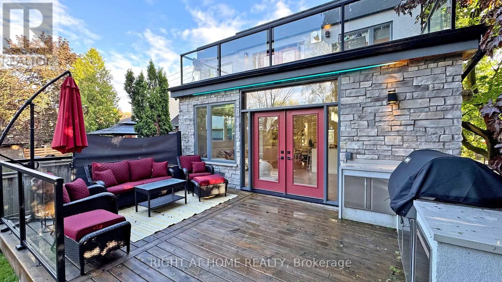 Cross Streets: North of O'Connor, East of Donlands Avenue. ** Directions: North of O'Connor/East of Donlands Avenue. This striking modern residence built in 2020 is located on a 45' x 150' E/W sun-filled lot. Offering a total of 3000 sq ft of living space. Abundance of windows throughout reveal a treed ravine lot & siding onto a quiet parkette. The home is flooded with natural light. Rare 6' x6', 4 season vestibule provides a practical flow into a grand 15' x 8' foyer with 10' ceilings. 2 Expansive 20' x 15' terraces ideal for entertaining or relaxing. Spectacular Primary bedroom & ensuite with extra deep soaker tub, separate steam shower overlooking 2 sided fireplace and sitting area with walk-out access to 2nd floor deck. Maple hardwood floor throughout main & second Floor. Designer kitchen with central quartz island, quartz backsplash, stainless steel appliances, & gas stove, complimented by an outdoor kitchen, ideal setting for morning coffee or entertaining. Incredible tandem heated & air garage that spans the full length of the house with 10 foot ceilings,(internet controlled garage door opener) & space for two vehicles. A total of 3 parking spaces with direct interior access to the home and rear garage door leading to the garden. Additionally, a private separate side entrance to finished lower level with cork flooring, a full four-piece bath- ideal for guest suite, home office/studio. 2 x 6 framing, 4'x2' porcelain tiles throughout all baths. Triple pain windows, upgraded insulation( Rockwool safe & sound, functions as soundproof & fire-resistant material for interior.) Resilient channels on interior walls for tranquil setting. Optional features are 2ND PRIVATE DRIVE, & ROOF TOP TERRACE or SOLAR. Seller built to support roof. Buyer(s), at Buyer expense, to apply & complete, doing their full Due Diligence. PARKING ON STREET with some restricted hours. Conveniently located Steps to transit & quick connections downtown. A home designed for those with a keen eye for architecture, attention to detail & value easy access without sacrificing modern design and style. (id:27476)