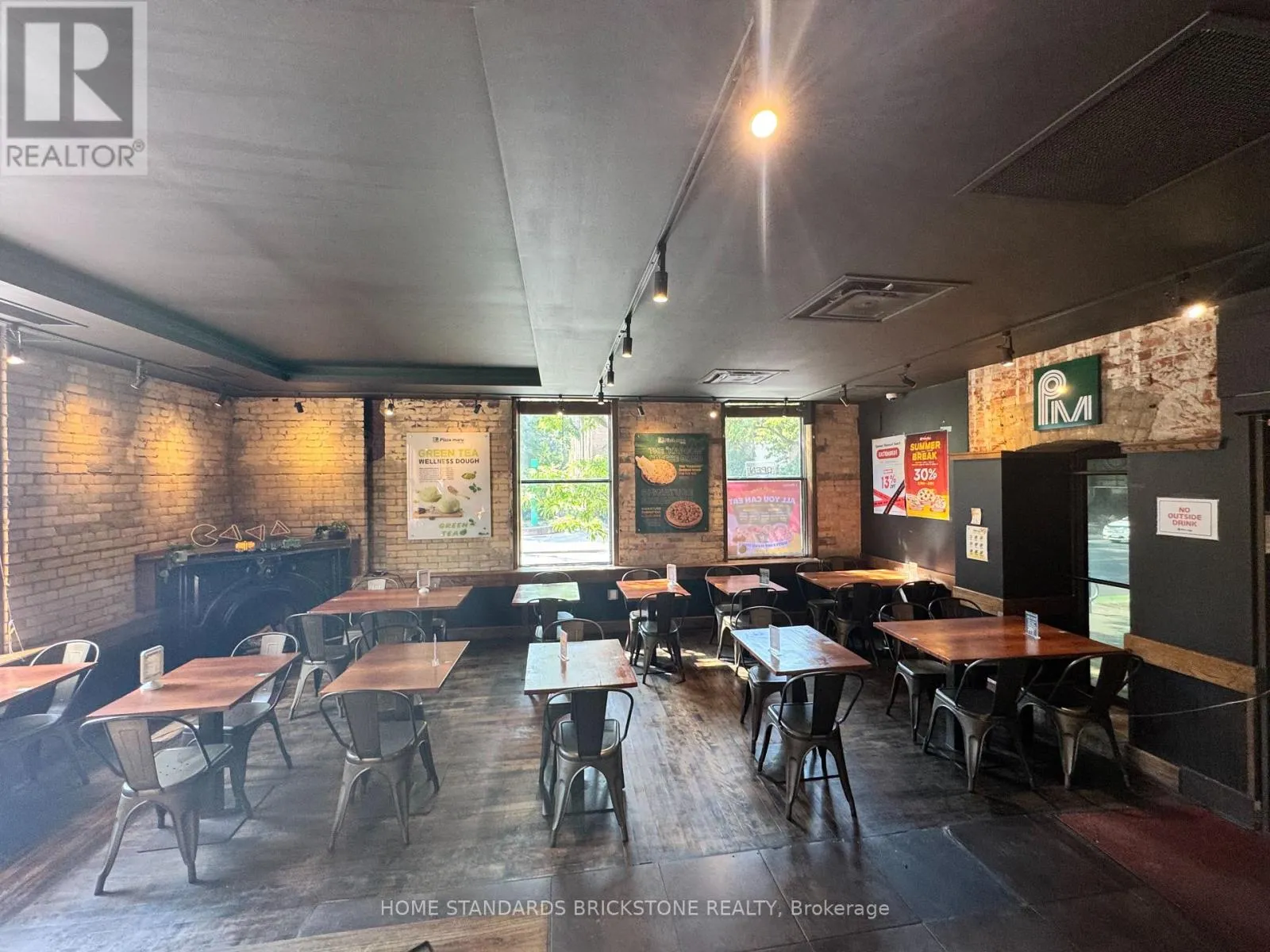 Church St & Gerrard St. Prime corner at Church & Gerrard, a rare opportunity! Turn-key restaurant/retail space featuring double entrances and highly visible dual exposures, fronting two busy streets with constant pedestrian and vehicle traffic day and night. Approx. 1,650 sq. ft., formerly Starbucks and currently operating as a pizzeria, ideally located in the heart of downtown just steps to TMU (Ryerson) campus, University of Toronto, and surrounding student residences. High-visibility corner unit filled with natural light. Features an open kitchen concept with ample prep space and storage, perfectly suited for a wide range of food and beverage operations. - ready to be transformed into your pizzeria, bakery, bar, café, or any eatery concept. (id:27476)