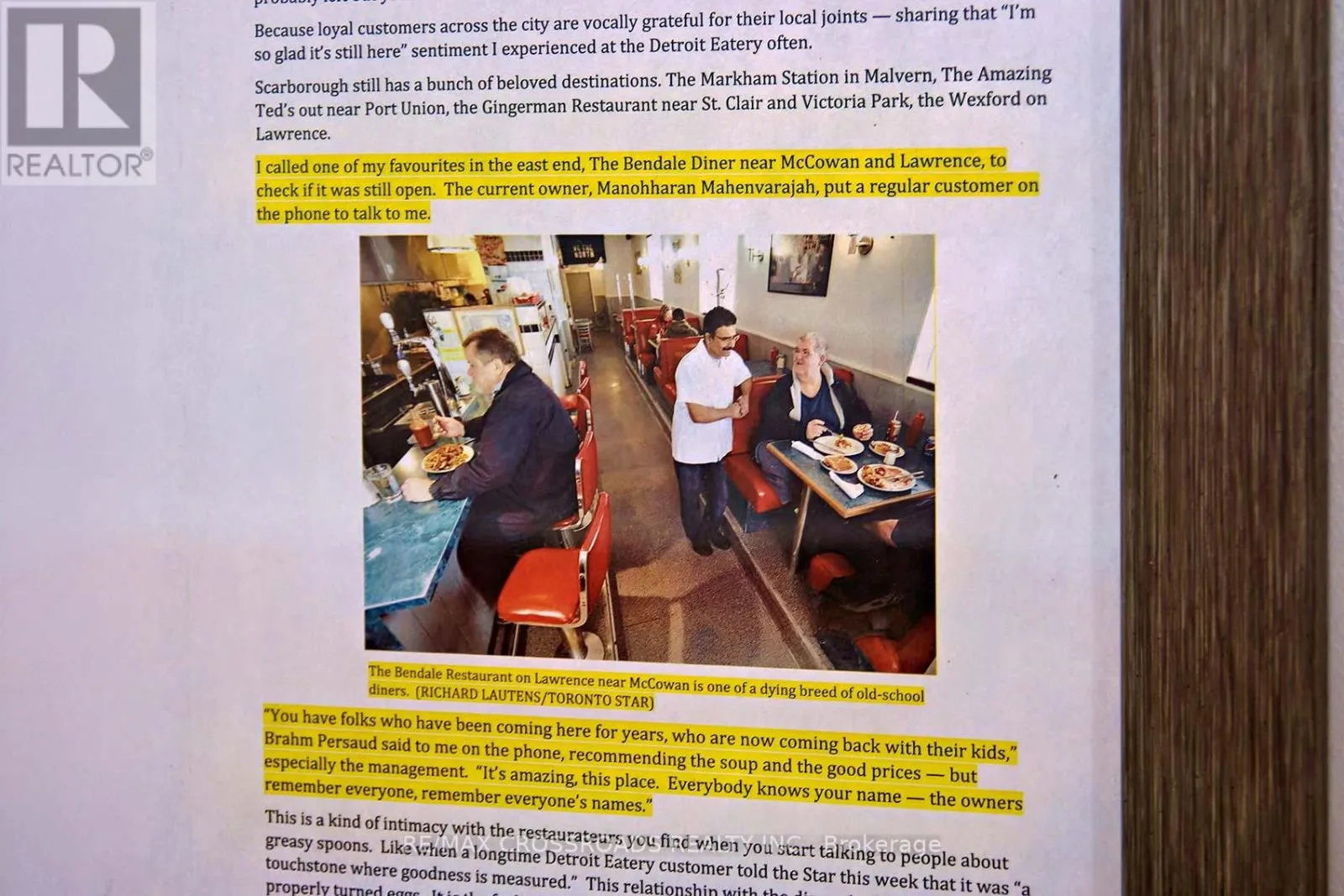 Lawrence and Bellamy Turnkey restaurant/diner in an established Bendale location. Operated as Bendales Restaurant for 60+ years; same owner for 10 years. Liquor-licensed for 50 seats with a large seasonal patio (MaySeptember). Open seven days with an efficient, easy-to-run setup. Plenty of parking. Versatile layout suits many cuisines. Favourable lease and rent. Ample free parking. The owner will provide training. Solid, proven location to launch or expand your brand. Amazing and rare opportunity! (id:27476)