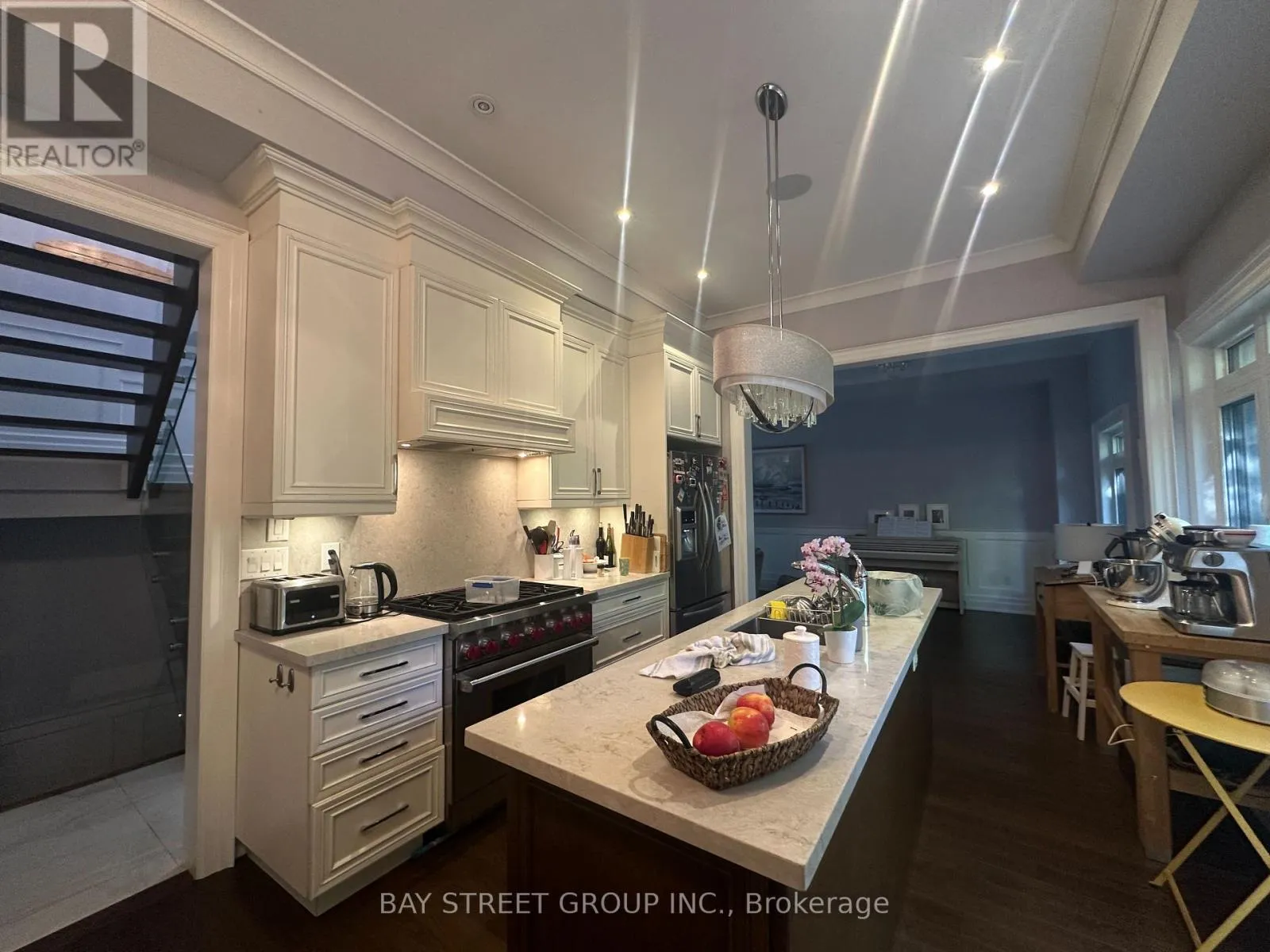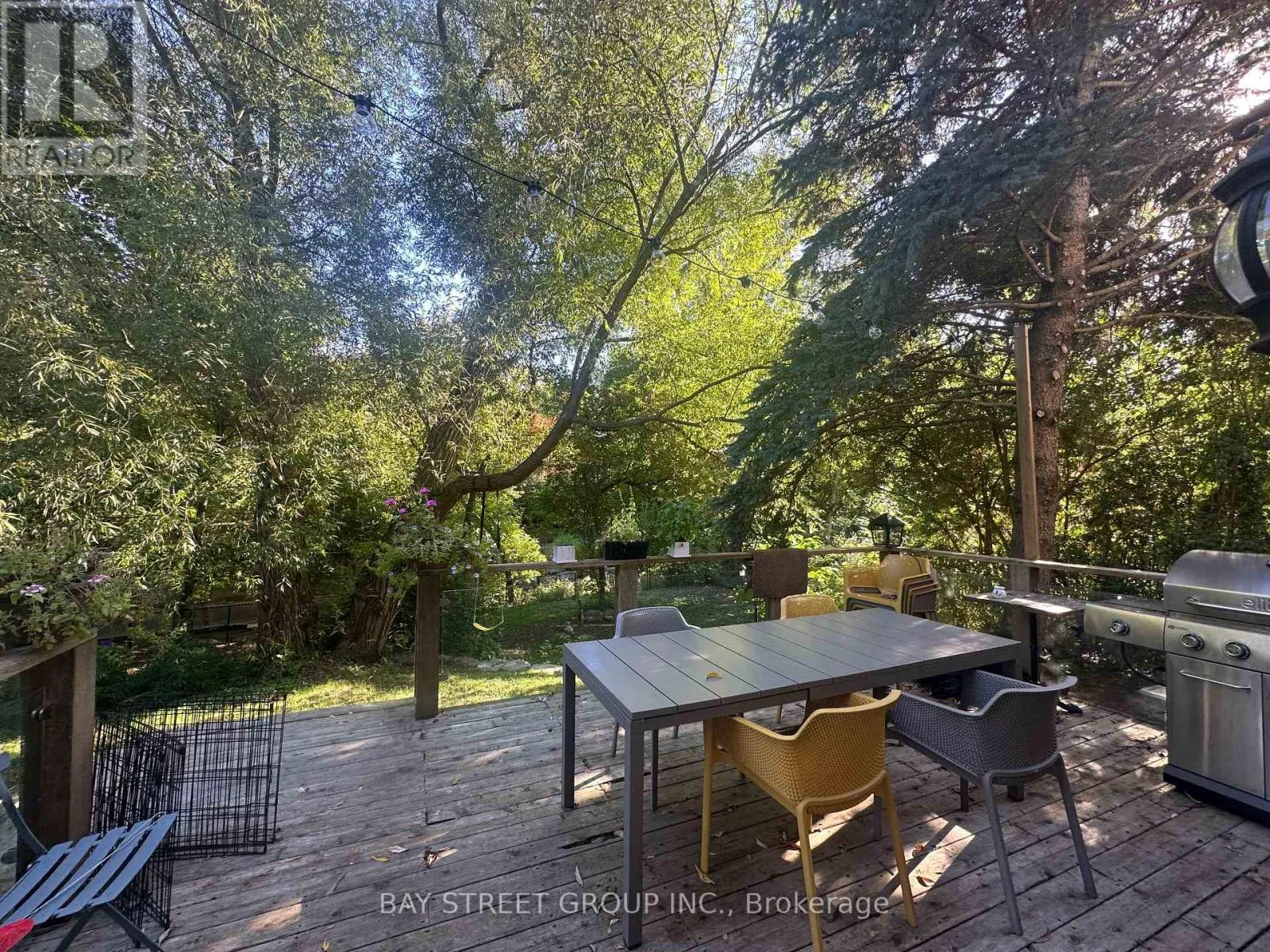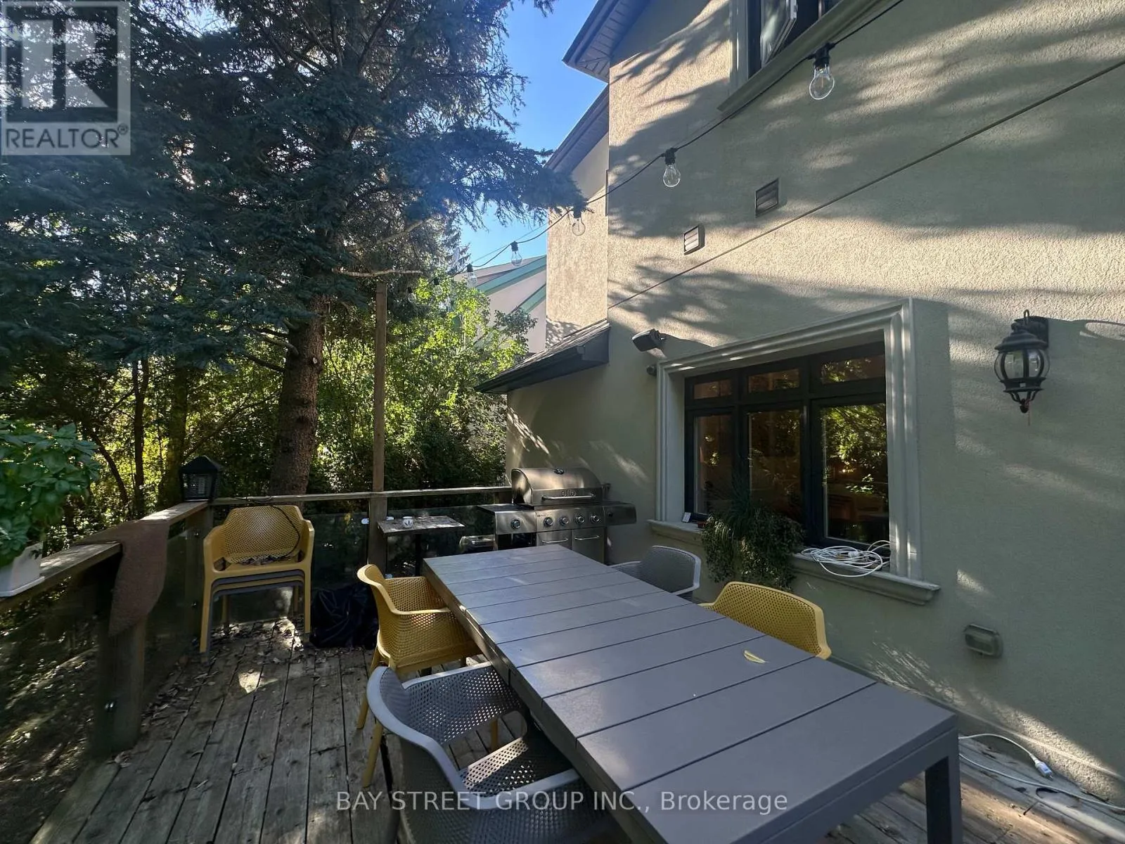 Cross Streets: Bloor St W And Royal York. ** Directions: Southwest of Bloor W and Royal York. A true city oasis, this spectacular Thompson Orchard home offers luxury throughout. Set on a picturesque 88 ft lot with private creek exposure, it features a sophisticated open-concept kitchen with a walkout to a cedar deck, wainscoting, glass railings, security system, and Caesarstone countertops. The master bedroom and ensuite overlook the creek. Additional highlights include built-in speakers, a basement with heated floors, and more. Appliances and features include a Gas Wolfe range, KitchenAid fridge, dishwasher, wine chiller, washer & dryer, alarm, central vacuum, HVAC, and closet organizers. (id:27476)