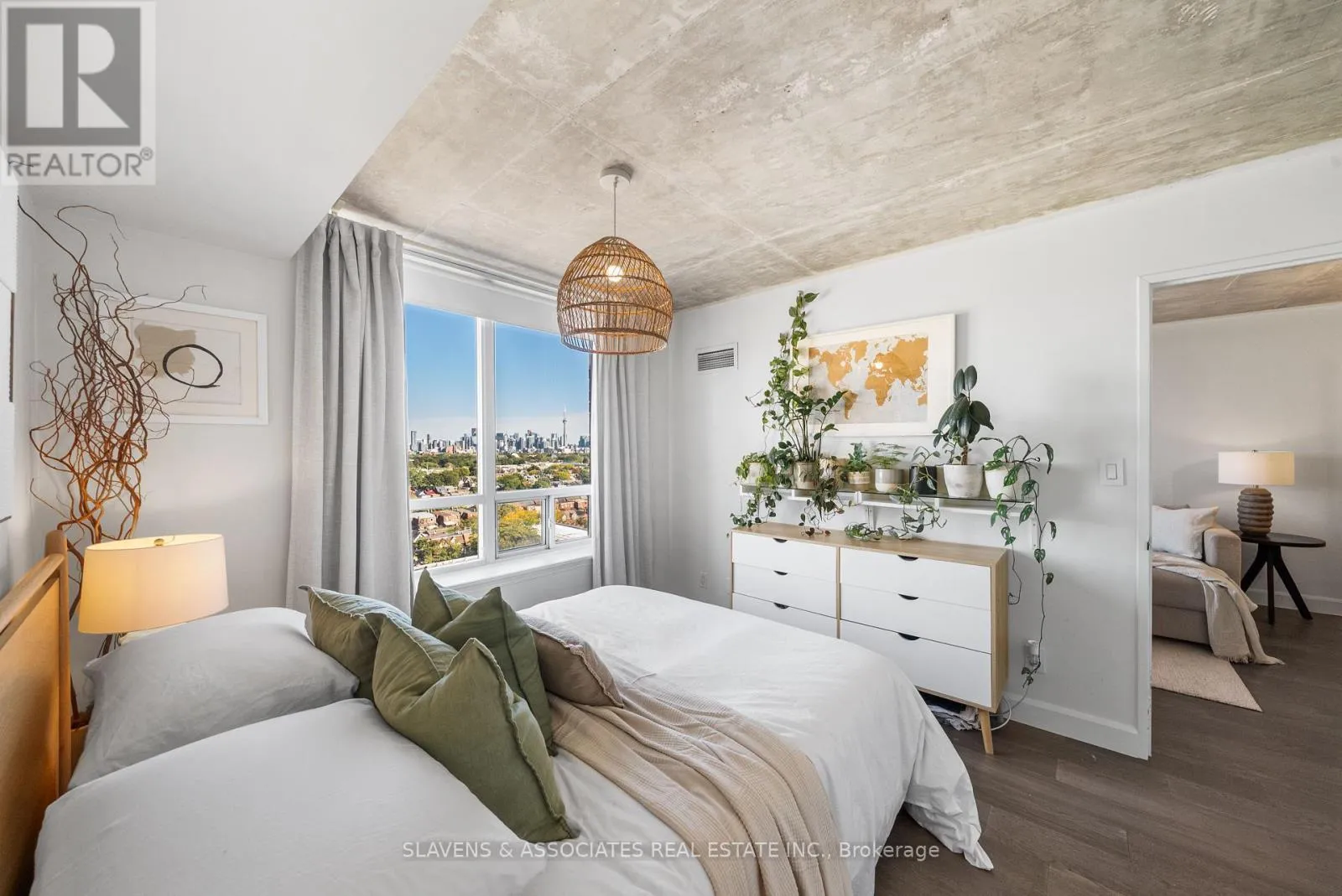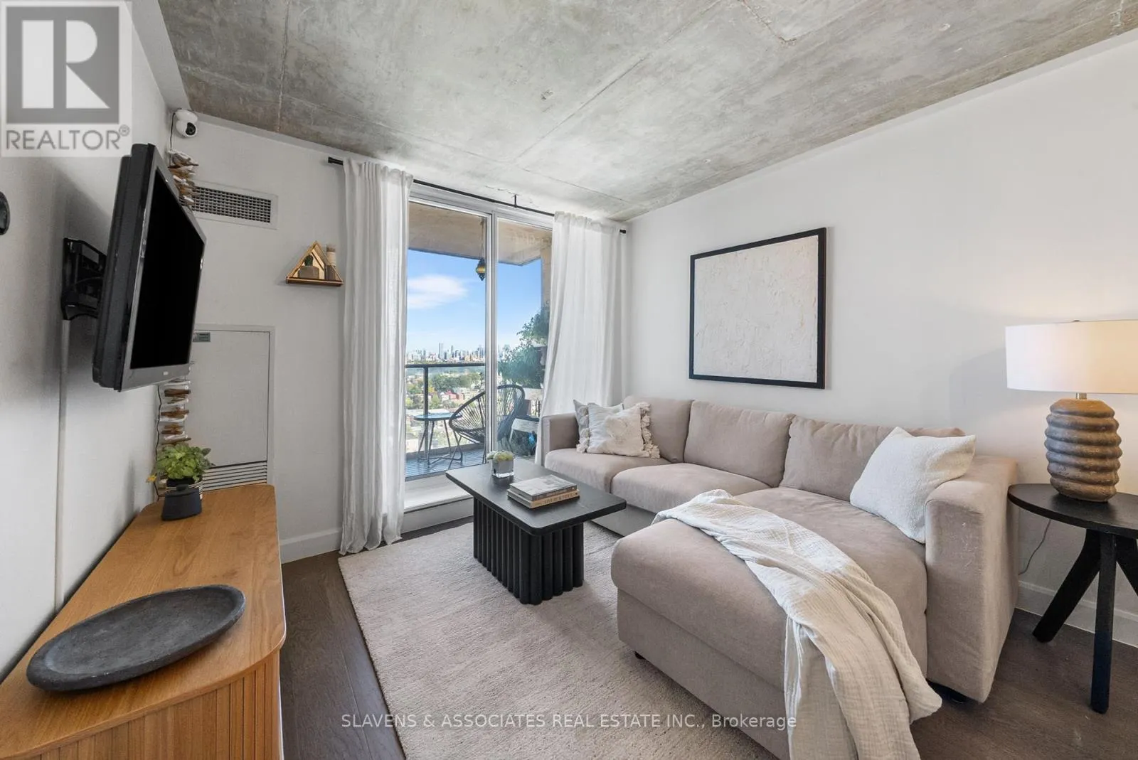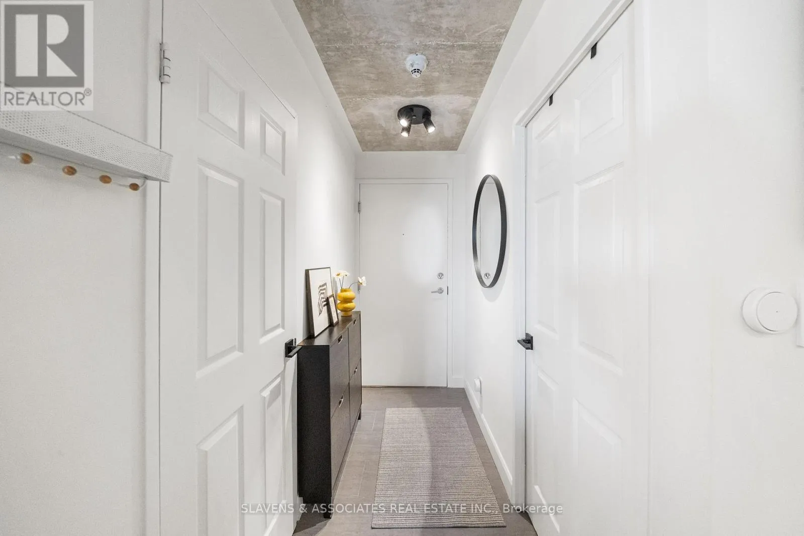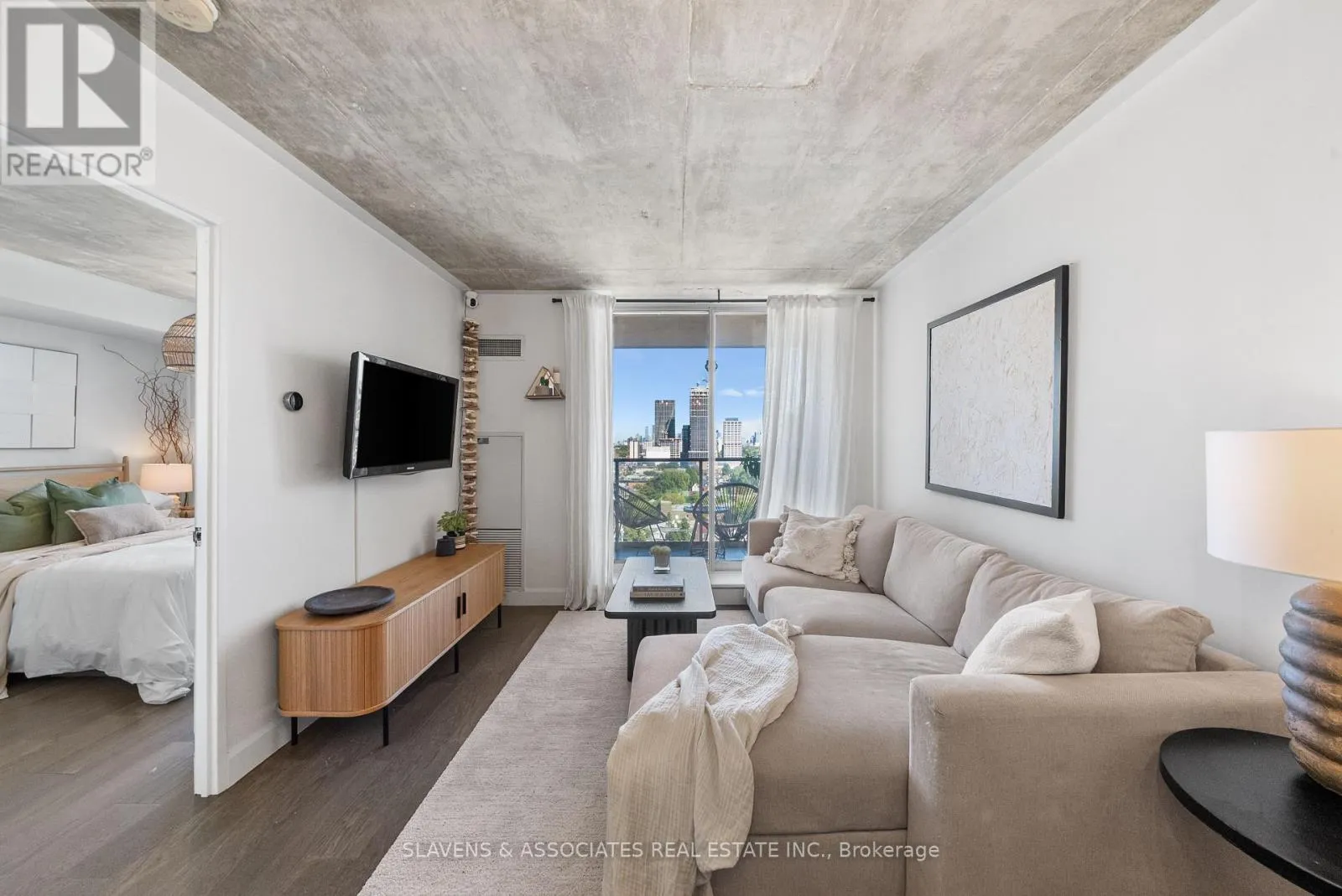 Bloor / Lansdowne Welcome to 1369 Bloor St W - Located in the Heart of Bloor West Village! Featuring an updated 1-bedroom condo with East-facing balcony with views of Toronto skyline and CN tower, large windows, and a highly functional layout with a generous sized kitchen and separate dining area - ideal for both daily living and entertaining. The chef-inspired kitchen includes quartz countertops, stainless steel appliances, herringbone backsplash, under-cabinet lighting, floating walnut shelves, and modern fixtures. Enjoy engineered hardwood floors and smooth concrete ceilings throughout for a sleek, contemporary feel. Set in a building with excellent amenities, including an outdoor pool - perfect for cooling off in the summer months or entertaining! Plus a gym, party room, and security system. Located just steps from the Sterling Road arts and innovation district - home to the Museum of Contemporary Art (MOCA), the Drake Commissary, Henderson Brewery, and a growing mix of creative studios, tech offices, and cafes. The surrounding Junction Triangle is one of Toronto's fastest-evolving neighbourhoods, combining industrial charm with vibrant community energy. Nature lovers and active commuters will appreciate being close to the West Toronto Rail path, a multi-use trail perfect for walking, jogging, and cycling, offering a peaceful, car-free connection through the city surrounded by trees, murals, and green space. Additionally, Transit couldn't be easier with the Bloor subway line and UP Express just minutes away - downtown in 10 minutes, Pearson Airport in 20. A perfect opportunity to live in style, with space, convenience, and culture right at your doorstep. (id:27476)