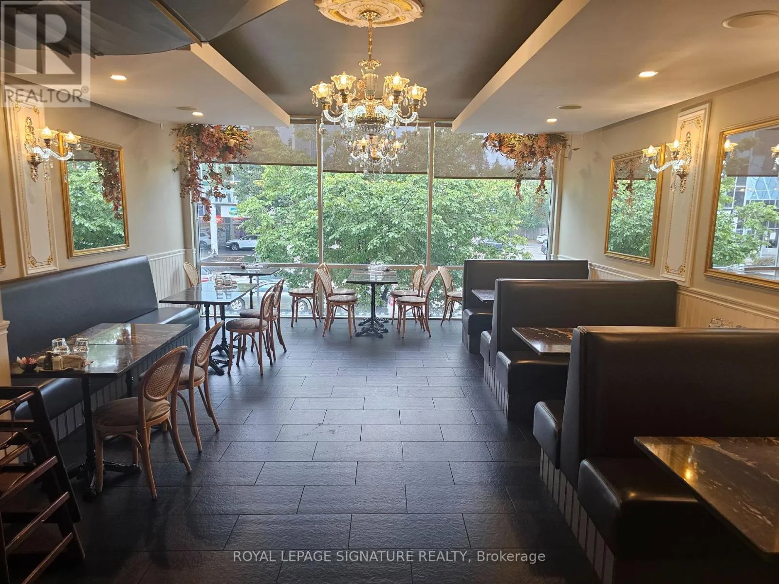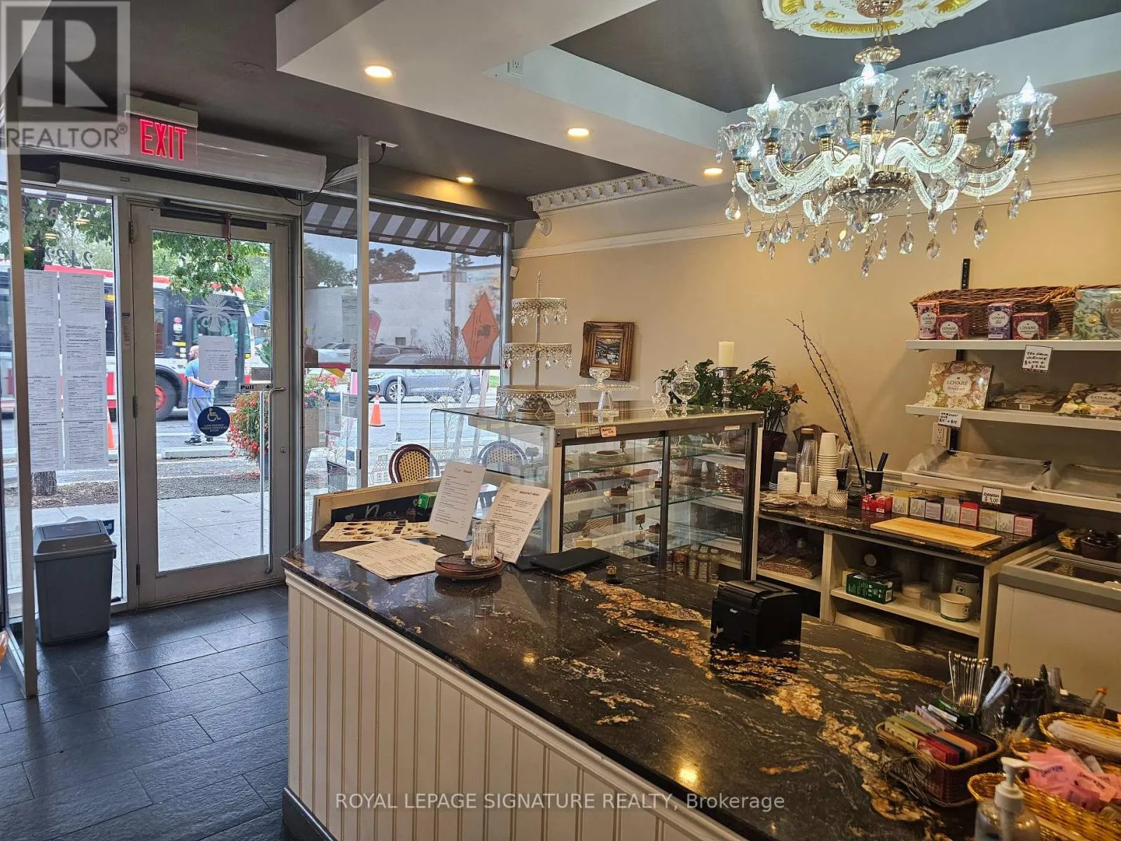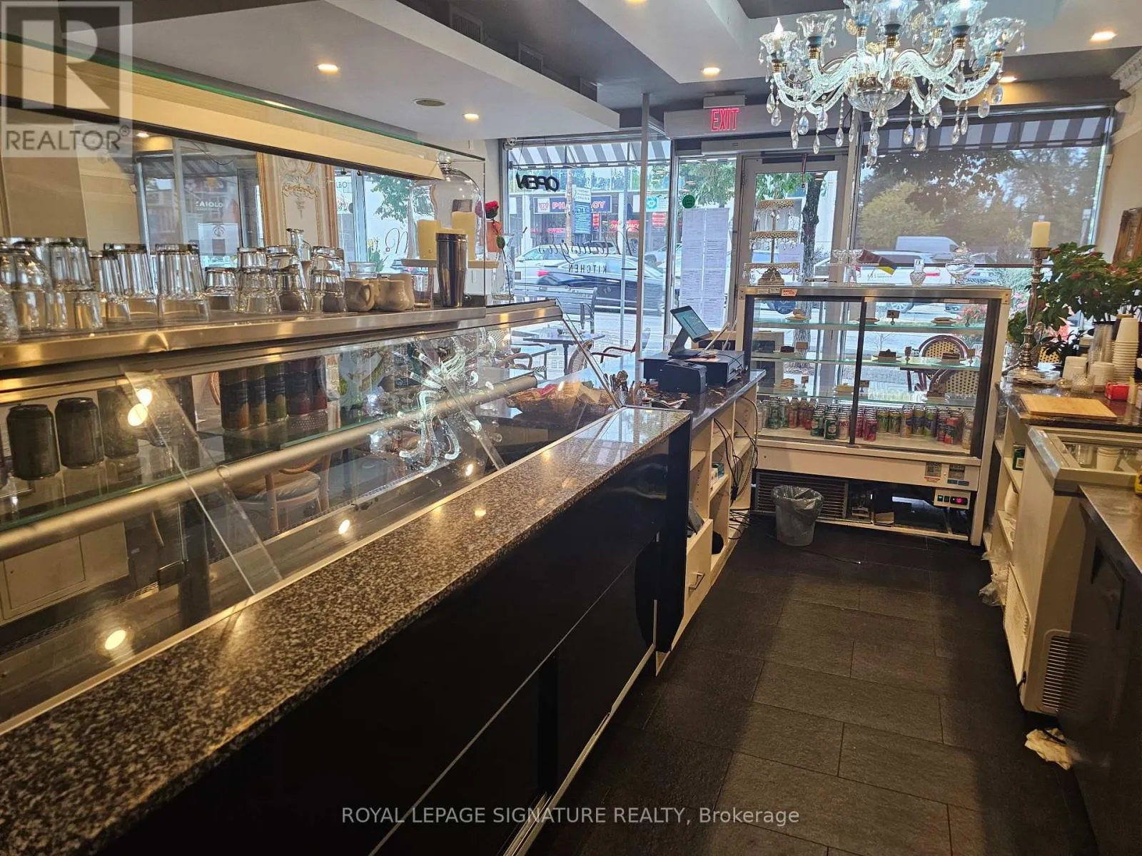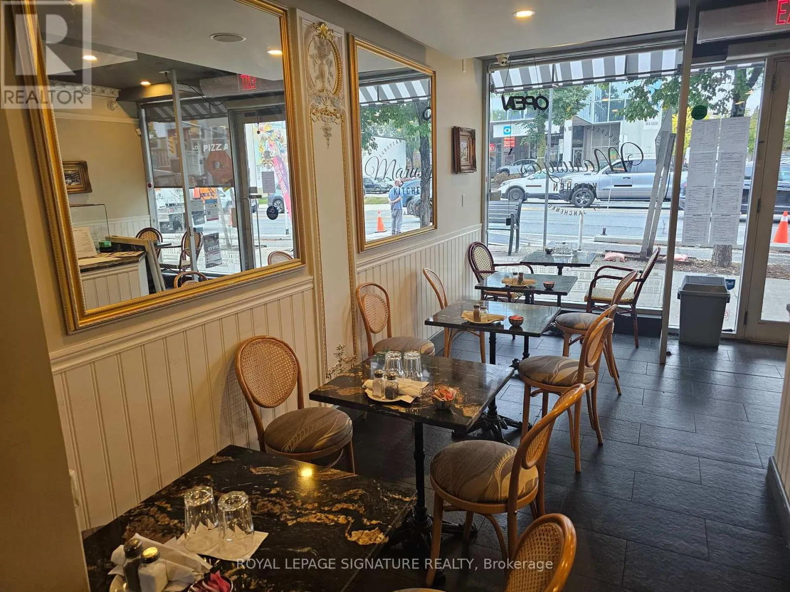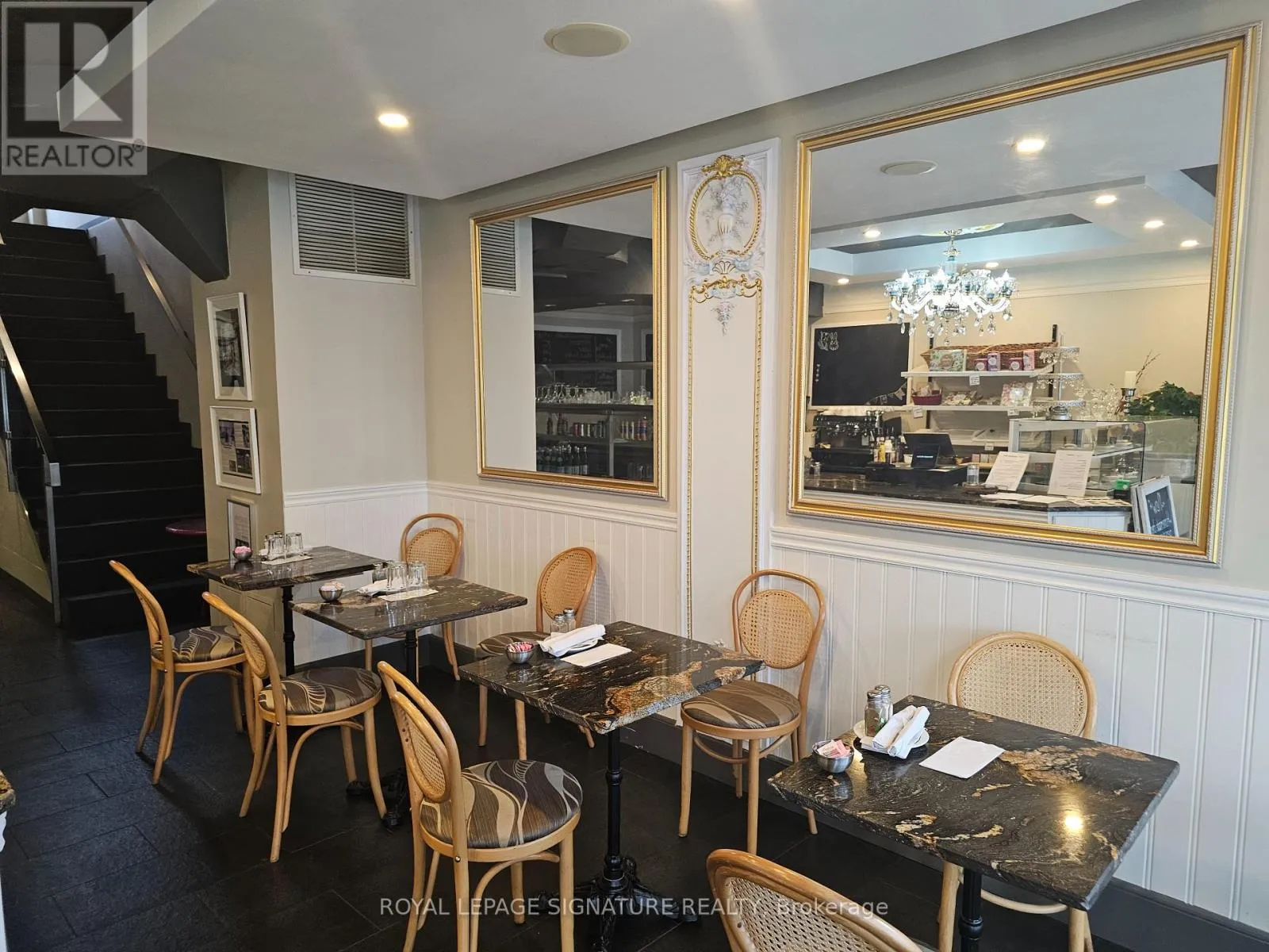 Jane St & Bloor St W This beautiful and turnkey restaurant, café, and bakery offers a rare opportunity in the heart of Bloor West Village, just steps from the subway. Situated on the sunny north side of the street, it benefits from excellent exposure and includes a private back patio. The multi-level licensed layout provides a versatile setting for both casual daytime business and full-service dining. The restaurant is licensed for 63 guests inside and 14 on the upper private patio. It comes with a full kitchen, featuring a 12-ft commercial hood and an impressive lineup of high-end equipment. The 1,900 sq. ft. layout spans two floors plus a basement, making it both functional and efficient for a range of operations. With a gross lease of $10,184 per month including TMI and 3 + 5 years remaining, this is a strong opportunity in one of Toronto's most desirable neighborhoods. The business is available turnkey with training provided, or it can be rebranded into a new concept, cuisine, or franchise. Please do not go direct or speak to staff or ownership. (id:27476)