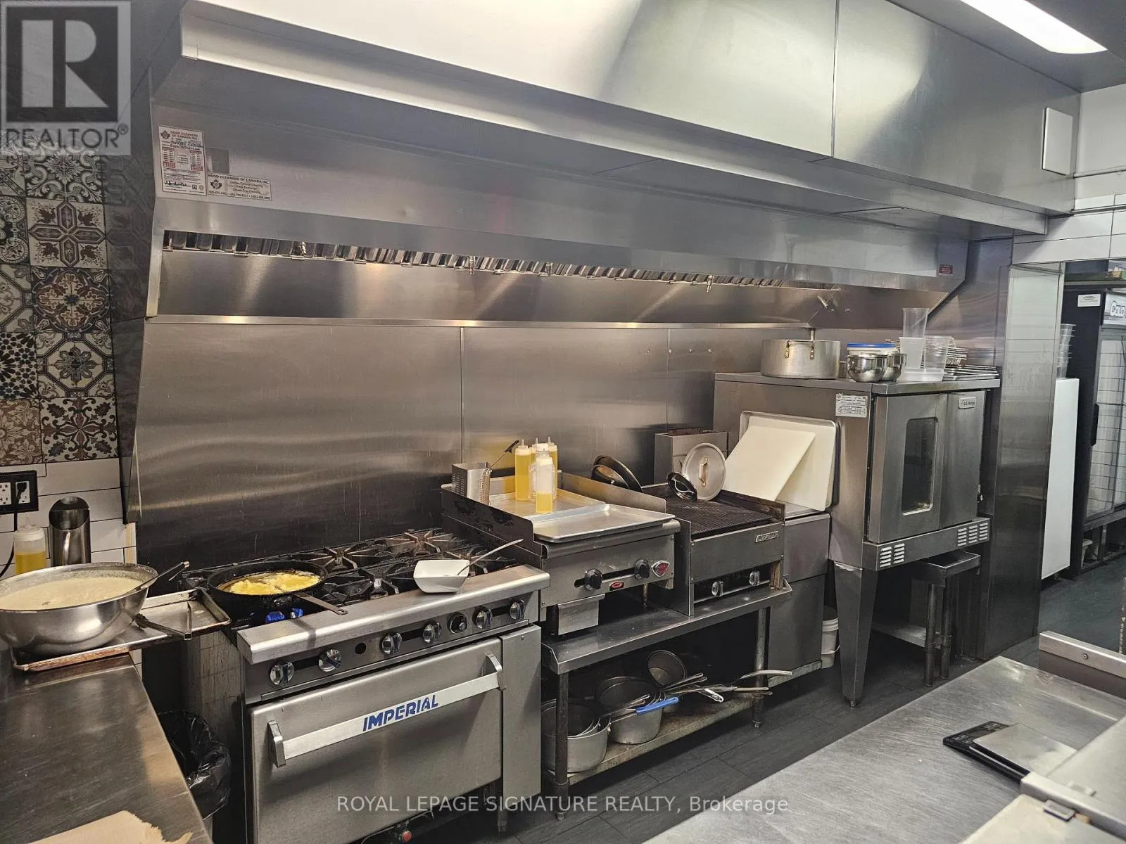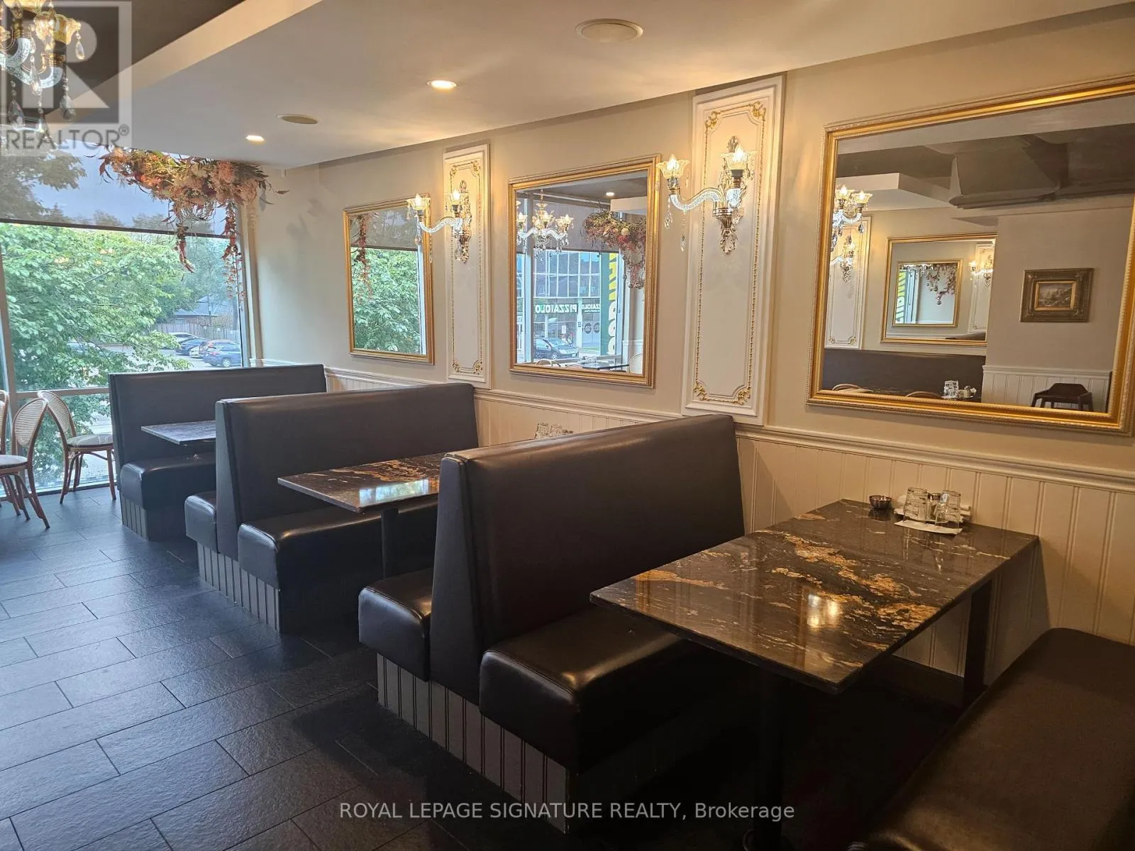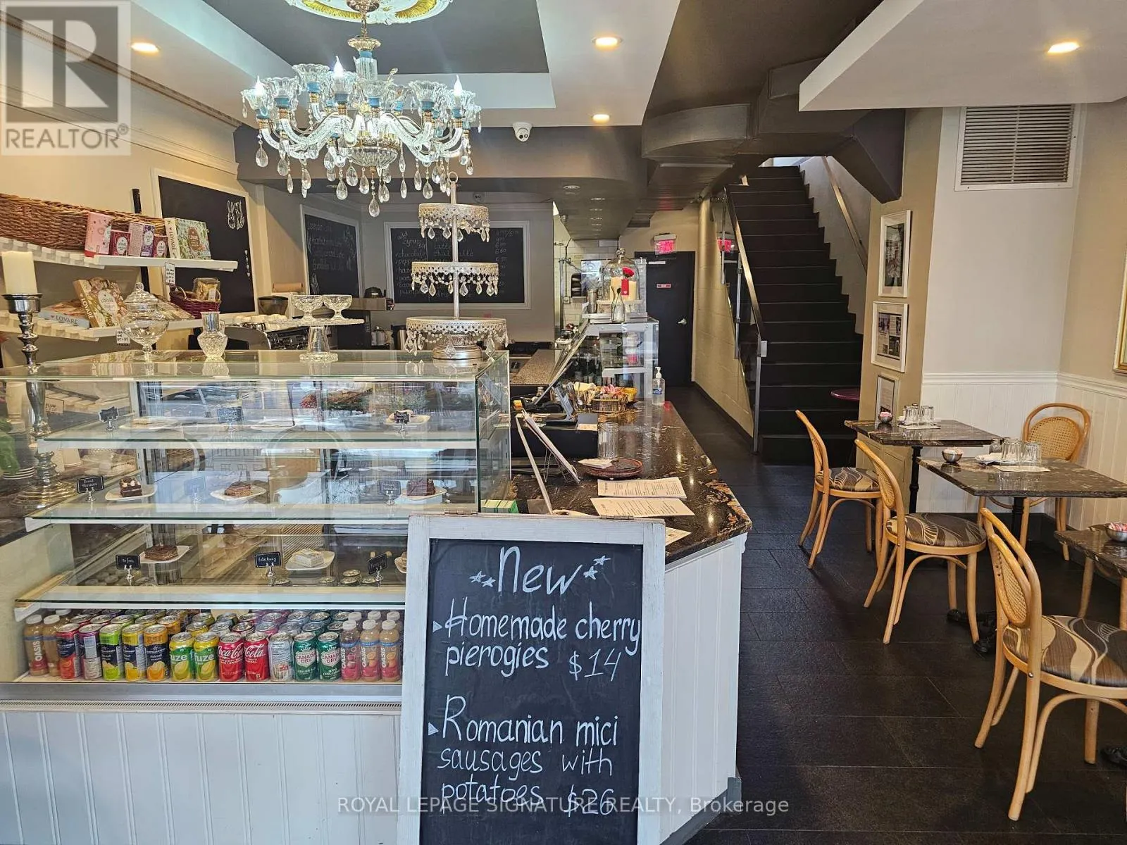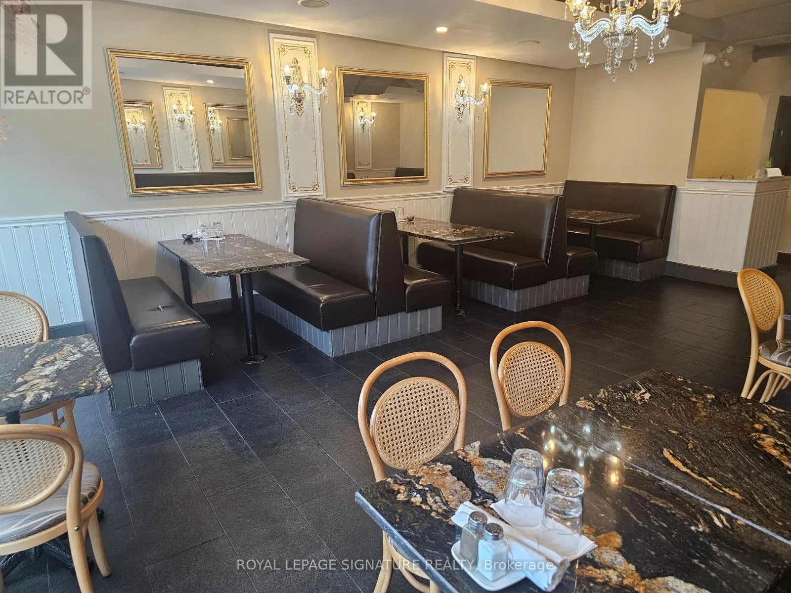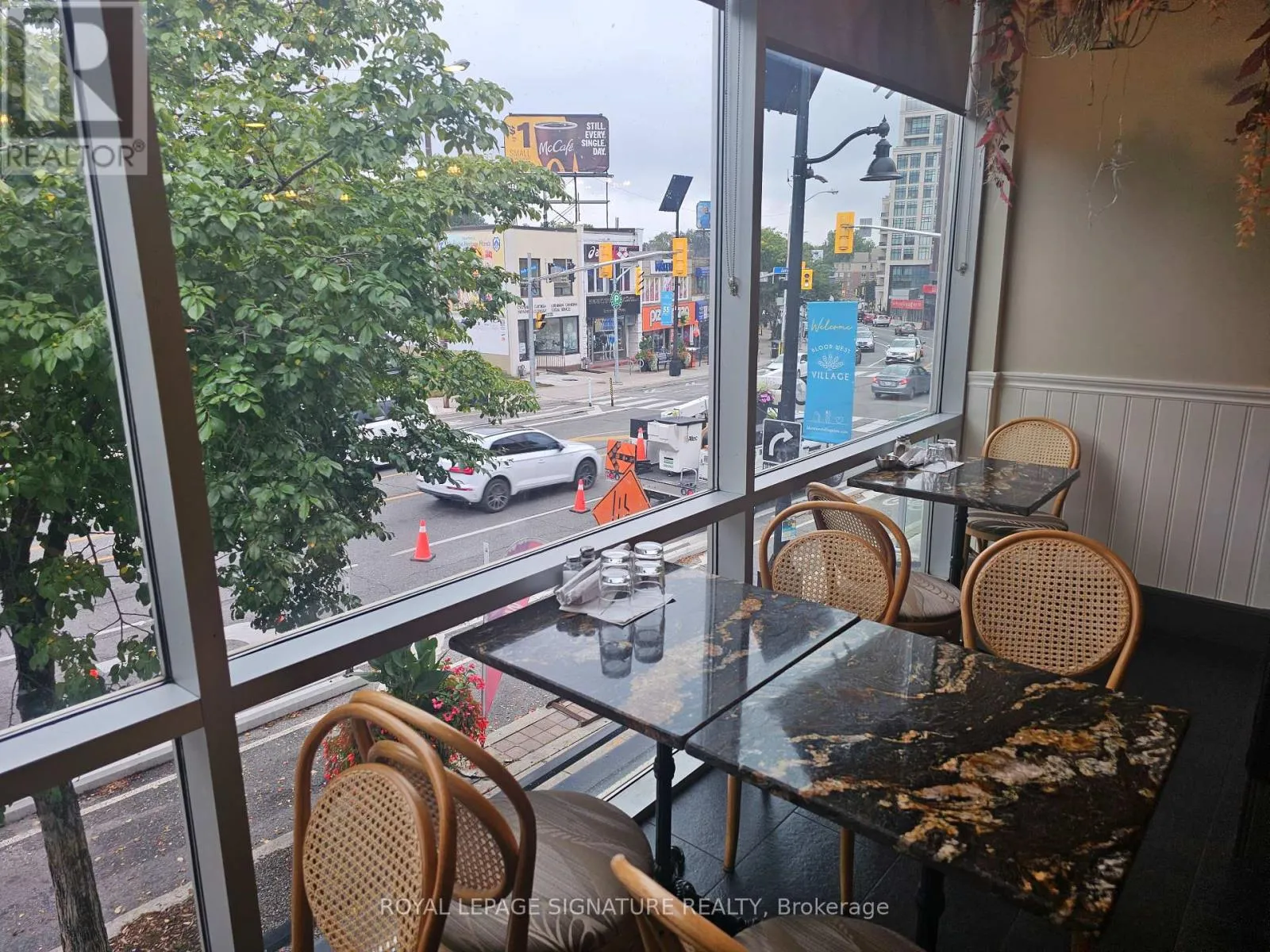 Jane St & Bloor St W This beautiful and turnkey restaurant, café, and bakery offers a rare opportunity in the heart of Bloor West Village, just steps from the subway. Situated on the sunny north side of the street, it benefits from excellent exposure and includes a private back patio. The multi-level licensed layout provides a versatile setting for both casual daytime business and full-service dining. The restaurant is licensed for 63 guests inside and 14 on the upper private patio. It comes with a full kitchen, featuring a 12-ft commercial hood and an impressive lineup of high-end equipment. The 1,900 sq. ft. layout spans two floors plus a basement, making it both functional and efficient for a range of operations. With a gross lease of $10,184 per month including TMI and 3 + 5 years remaining, this is a strong opportunity in one of Toronto's most desirable neighborhoods. The business is available turnkey with training provided, or it can be rebranded into a new concept, cuisine, or franchise. Please do not go direct or speak to staff or ownership. (id:27476)