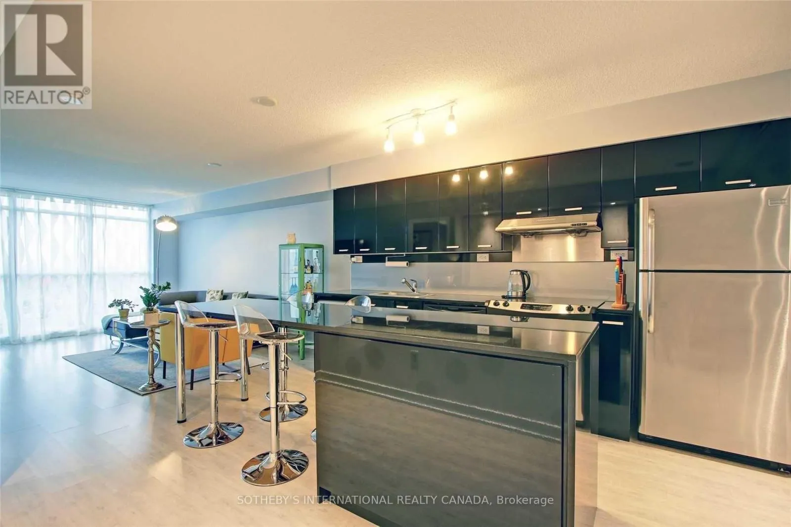 Cross Streets: Sheppard And Leslie. ** Directions: Ask Siri. Gracefully designed and thoughtfully appointed, this refined residence offers a lifestyle of sophistication and comfort. Complete with a private balcony, parking, and locker, every detail has been considered to create both beauty and functionality. Interiors are enriched with couture wallpaper, recessed lighting, and white-washed veneered flooring, while floor-to-ceiling glass captures natural light and frames serene views. Striking black granite counters lend a dramatic edge, complementing the open, airy design.The flowing living, dining, and kitchen spaces invite effortless daily living and stylish entertaining. Anchored by a sleek island with breakfast bar seating, the culinary kitchen delights with stainless steel appliances and glossy black lacquered cabinetry, offering a striking interplay of light and depth.The oversized primary suite, complete with a spa-inspired four-piece ensuite, provides a private sanctuary. A versatile den, enhanced with its own closet, easily serves as a guest bedroom or a polished home office.Bathed in sunlight and enhanced with modern conveniences, this residence is a rare blend of elegance and ease a true statement of luxurious city living. (id:27476)