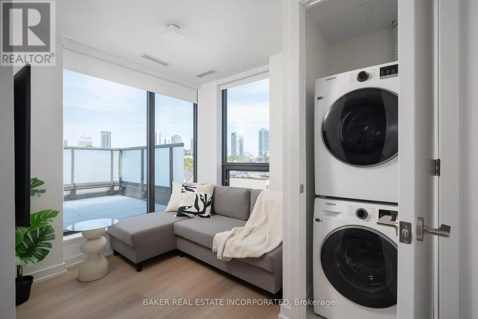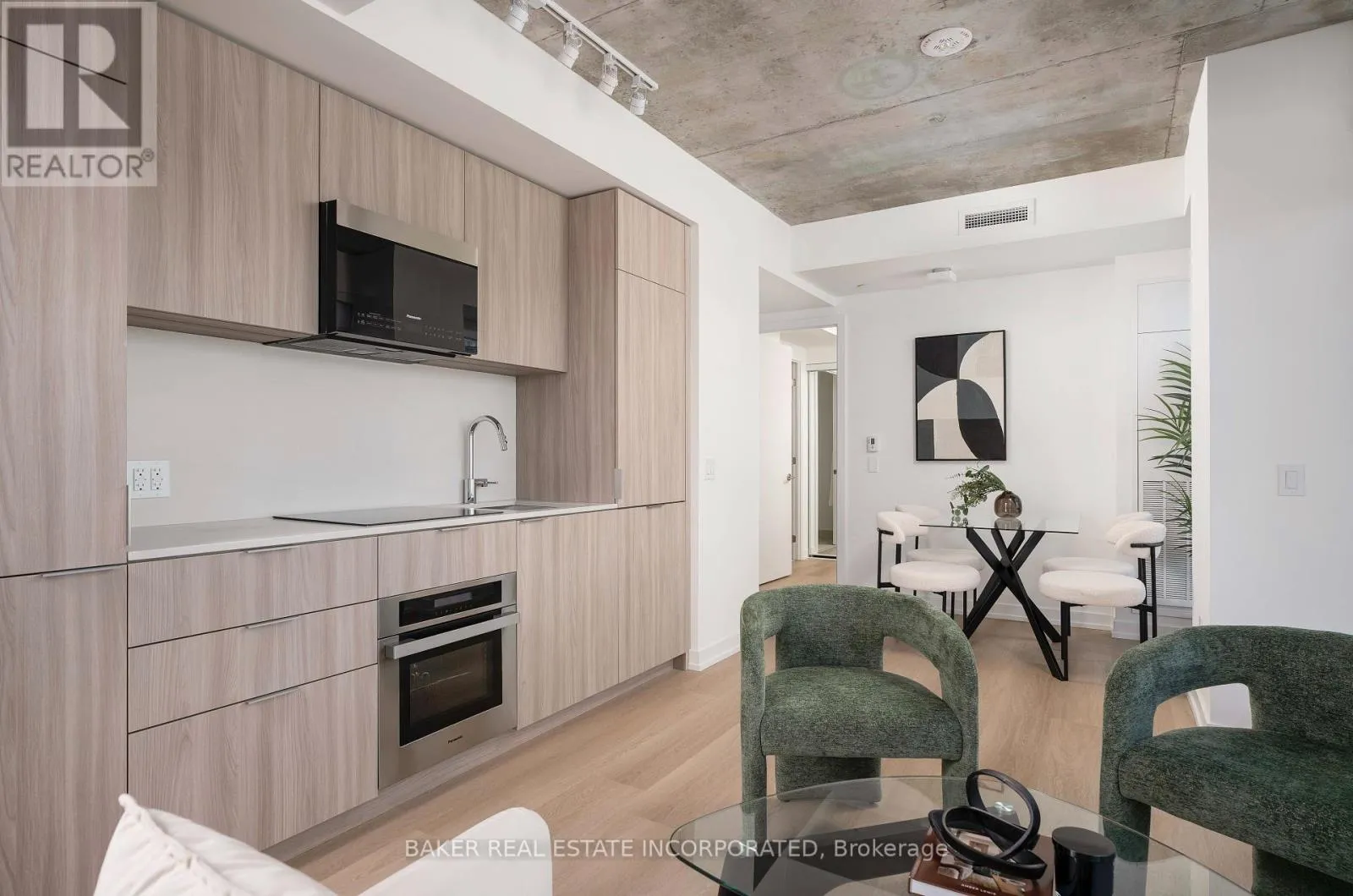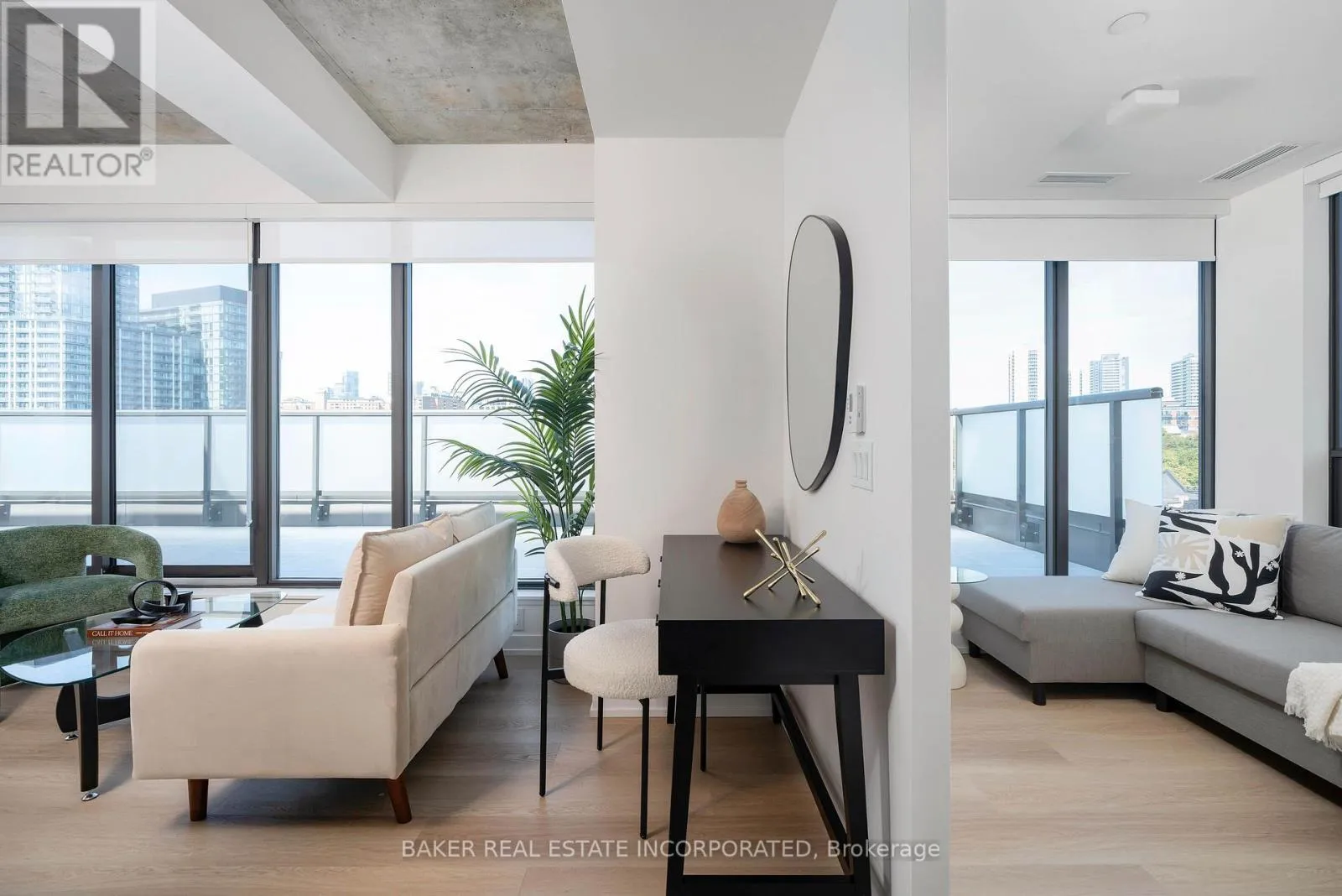 Cross Streets: Parliament St and Front St. ** Directions: Cherry Street to Eastern Ave & Sackville St. 28 Eastern, located in Corktown's newest 12-storey boutique building. Step into this newly released 2-bed plus den and immediately feel the sense of space. The generous open-concept layout features a loft-like feel with vinyl flooring throughout. The northeast-facing, floor-to-ceiling windows ensure the unit is bathed in natural light, creating a bright and airy atmosphere. The large terrace is a true standout since it offers lots of privacy, creating a perfect secluded retreat, complete with a gas line for your bbq and a hose bib-a rare and luxurious feature that truly enhances condo living. Another highlight of this unit is the second bedroom. With direct access to the spacious balcony, this exclusive space provides a quiet spot to enjoy your morning coffee or evening wine. Both bathrooms are elegantly upgraded with accent walls. Located in the heart of Corktown with a walk score of 95 and Transit & Bike Scores of 100, you're just minutes from the Distillery District, Canary District, St. Lawrence Market, and the Waterfront, with easy access to the DVP, Gardiner, TTC and the future Corktown Subway Station. Enjoy premium amenities including a 24-hr concierge, fitness studio, rooftop terrace, work pods and more. Parking and locker available for purchase. (id:27476)
