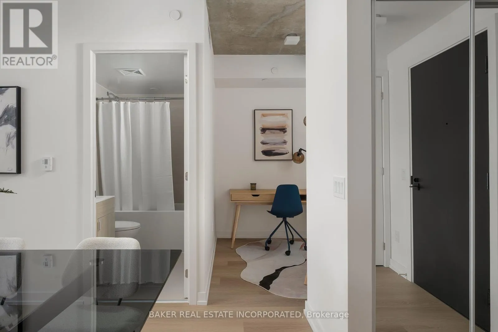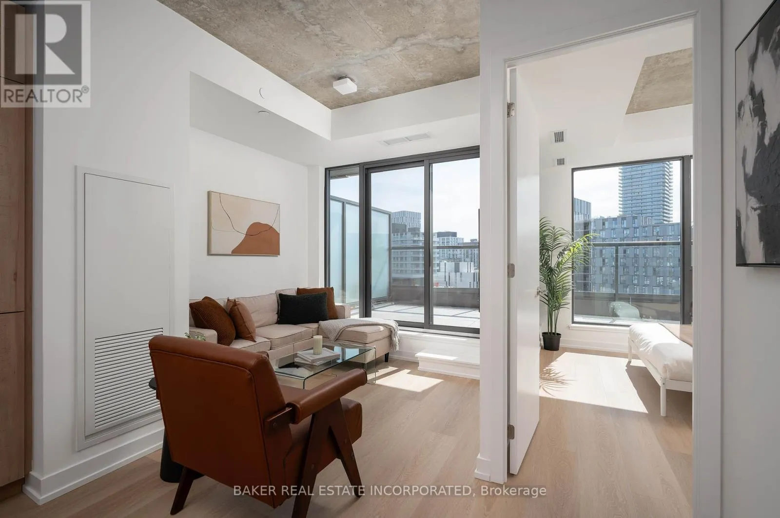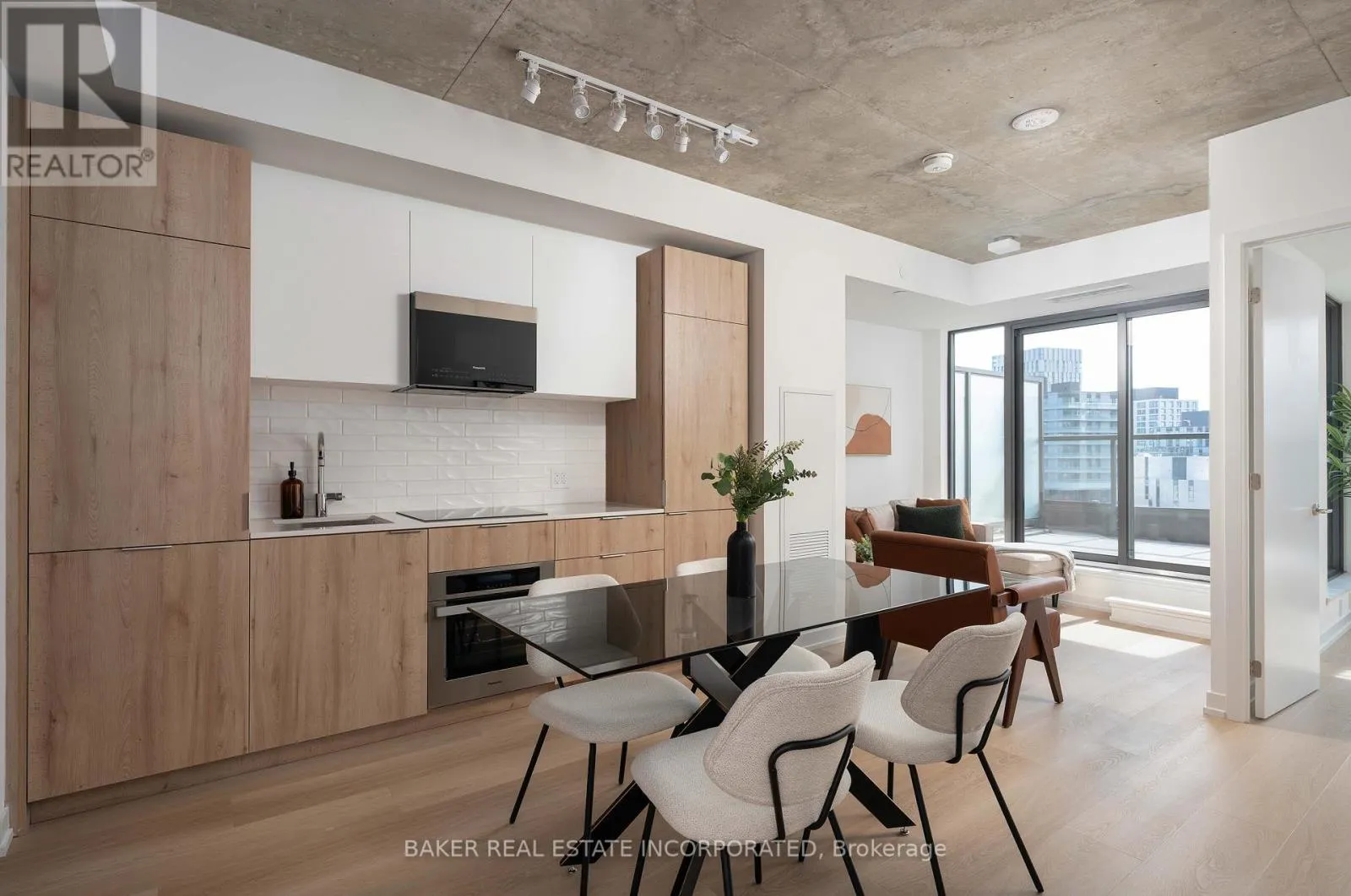 Cross Streets: Parliament St and Front St. ** Directions: Cherry Street to Eastern Avenue & Sackville St. Modern urban living awaits at 28 Eastern, Corktowns newest boutique mid-rise. Experience a rare and highly functional layout in this brand-new, never-lived-in 1-bedroom plus den unit with two bathrooms. This home offers a perfect blend of style and practicality, ideal for anyone seeking a private guest space or a dedicated home office. The spacious, open-concept design is flooded with natural light from floor-to-ceiling, south-facing windows, while the elegantly upgraded bathrooms each feature a modern accent wall. Boasting a Walk Score of 95 and Transit and Bike Scores of 100, this location is unbeatable. You're just minutes from incredible shopping, dining, and theatres, including St. Lawrence Market, the Distillery District, the Canary District, and the Waterfront. Commuting is a breeze with easy access to the Gardiner, the DVP, TTC service, and the future Corktown Subway Station. Locker available for purchase. (id:27476)