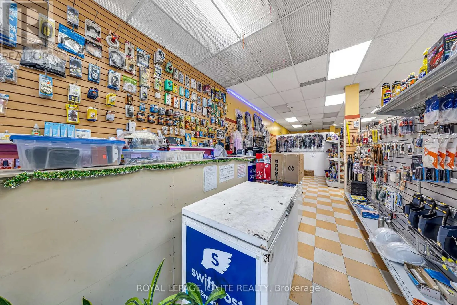 MIDLAND AVE & LAWRENCE AVE Frantastic opportunity to own a well-established and busy convenience store in high-traffic retail plaza in Bendale, surrounded by high-rise condos, apartments, and a high-density residential community. This turnkey operation offers a wide range of services including lottery, money transfer, key cutting, printing and fax services, T-shirt printing, Bitcoin ITN, and shipping services through Purolator, Fedex, and UPS. The unit features plumbing rough-ins for a potential kitchenette, a walk-in cooler, and comes with inventory included in the sale. Ideally located next to a major grocery store, bank, and other destination retailers, this store benefits from excellent foot traffic and strong community demand. (id:27476)