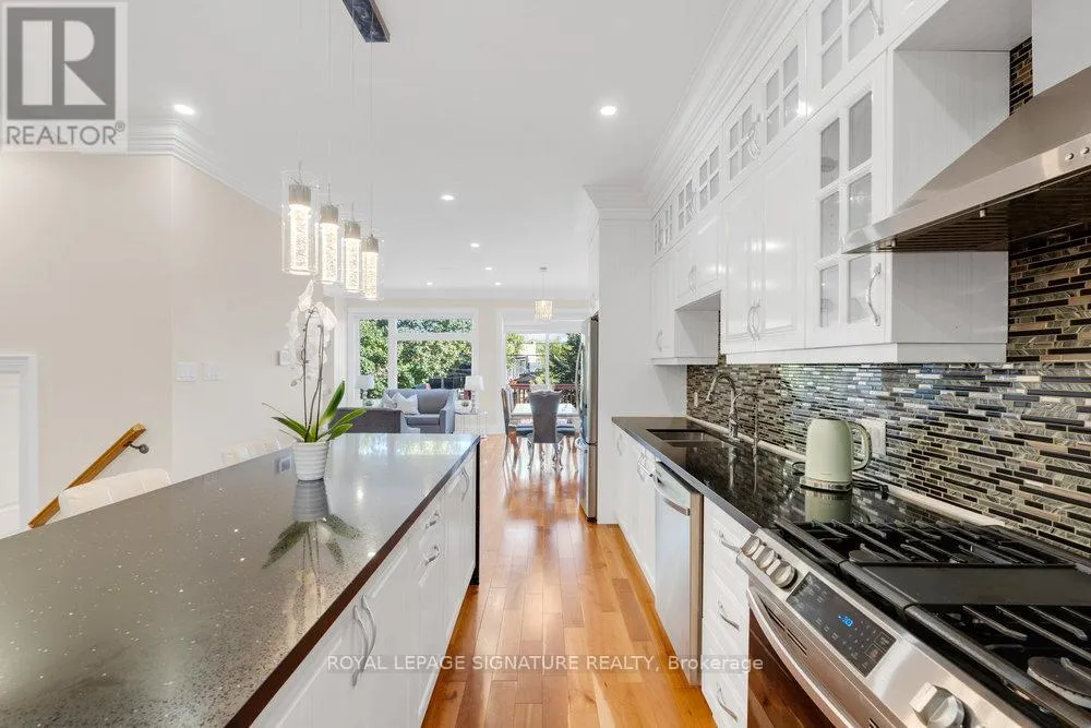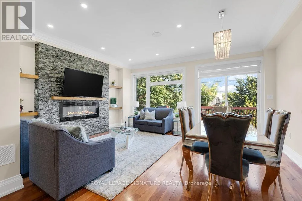 Kingston Rd & Midland Ave Welcome to a lavish, custom-built, 4+2 Bed and 5 bath residence that seamlessly blends modern luxury, timeless style, and thoughtful design, offering 2,162 sq. ft. above grade with a large backyard featuring an interlocking stone patio and full privacy fencing for the ultimate outdoor retreat. Inside, the sun-filled open-concept main floor is designed for both everyday living and entertaining, highlighted by a chef's kitchen overlooking the backyard with a large centre island offering breakfast seating, stainless steel appliances and an abundance of cabinets and storage. The seamless flow into the living room with a grand fireplace and combined dining room with walk-out to the deck makes hosting effortless. Upstairs, the private quarters offer three spacious bedrooms, with the primary retreat boasting a walk-in closet, a secondary custom built-in closet and 5-piece spa-like ensuite featuring an oversized glass shower, soaker tub and large vanity. Four piece family bathroom, laundry facility and a vast skylight are also located on the second level. The finished basement with substantial ceiling height and a separate side entrance provides exceptional versatility as an in-law suite, complete with a second kitchen, recreation room, 2 additional bedrooms, ample storage and a walk out to the backyard. The modern elegance of this property, premium upgrades, and functional design makes this the perfect home to welcome its next family! Located in the coveted neighbourhood of Cliffside, adjacent to Kingston Rd and walking distance to TTC, schools, shopping, parks, Go Train & The Bluffs. Enjoy A Tranquil street with a suburban feel along with city convenience and waterfront amenities! (id:27476)