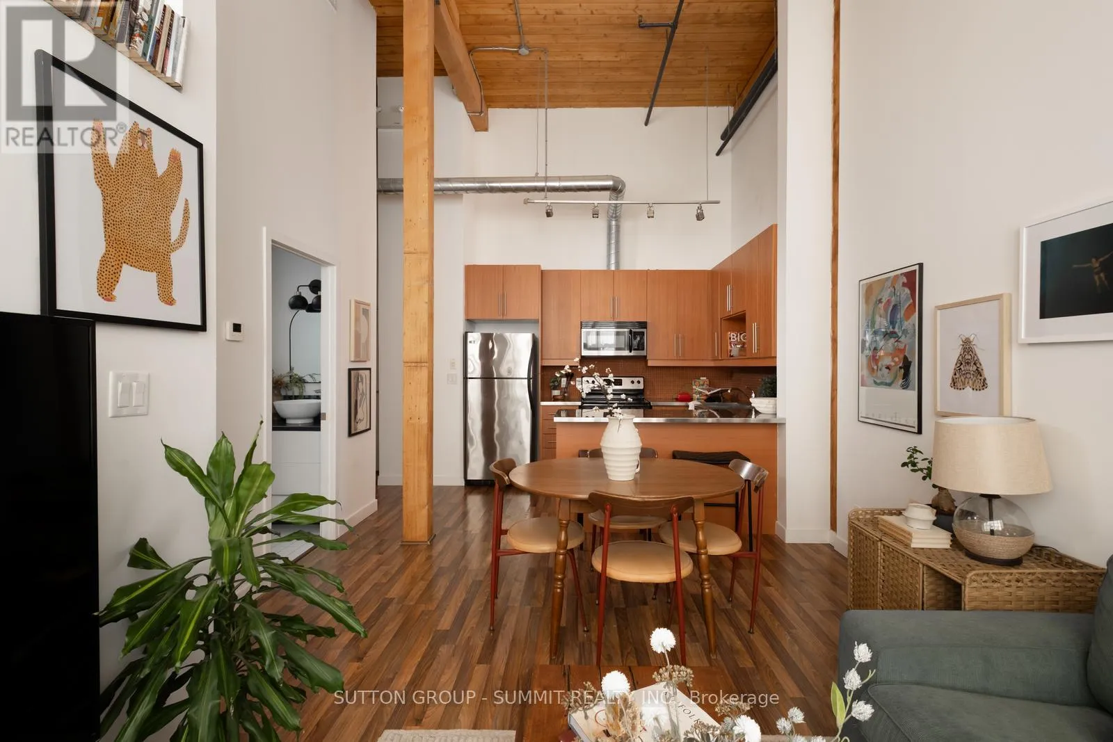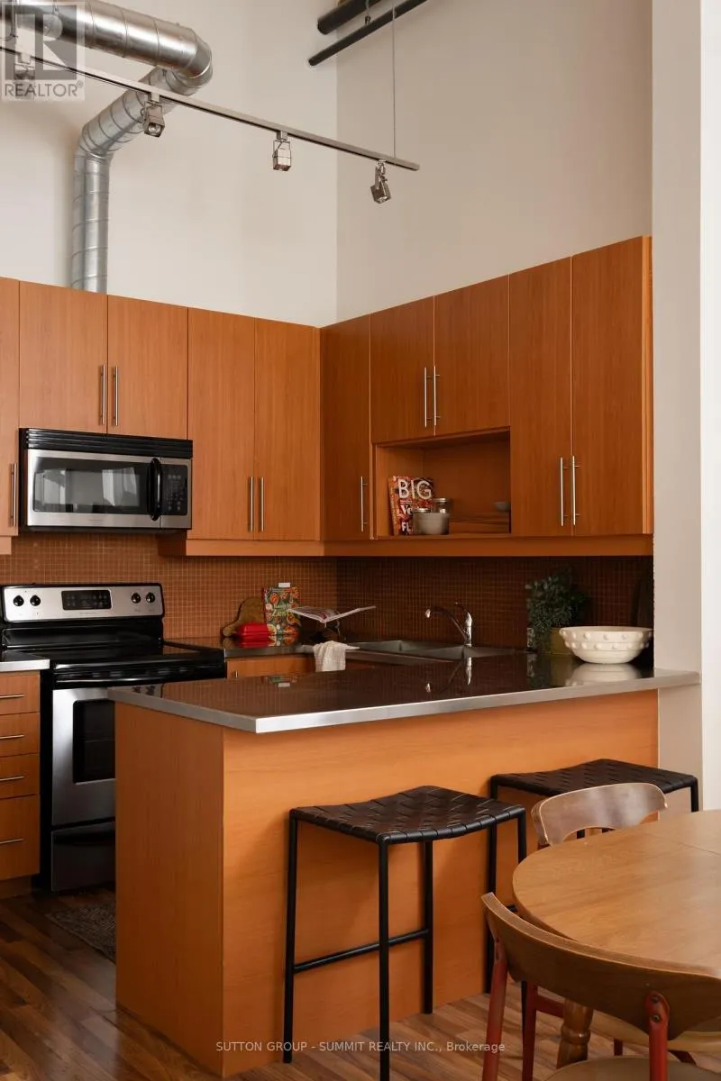 Cross Streets: Dundas St. W. & Bloor St. W. ** Directions: Use GPS. A featherweight name, but a heavyweight loft. Once home to the B.F. Harvey Co. bedding factory, the Feather Factory (c. 1911) now stands as a boutique hard loft that blends century-old character with modern light and style - right in the heart of Roncesvalles.15 ft, original wood beams, and exposed brick create a backdrop that feels both expansive and intimate. Factory-style windows invite eastern light to pour across the space, framing skyline views that shift with the day. The stainless-steel counters and oversized breakfast bar add a cool, utilitarian edge to a space that's effortlessly stylish. This 1-bedroom, 1-bathroom loft doesn't try to impress, it just does. Authentic, rare, and ready for its next chapter. Step outside and you're surrounded by Roncy's best: morning coffee at Propeller, dinner at The Commoner, a film at the Revue. High Park, Sorauren Farmers Market, the Railpath, and MOCA are all within easy reach. Streetcar, subway, GO, and UP Express are minutes away. For people who don't do boring. This one's for you! (id:27476)