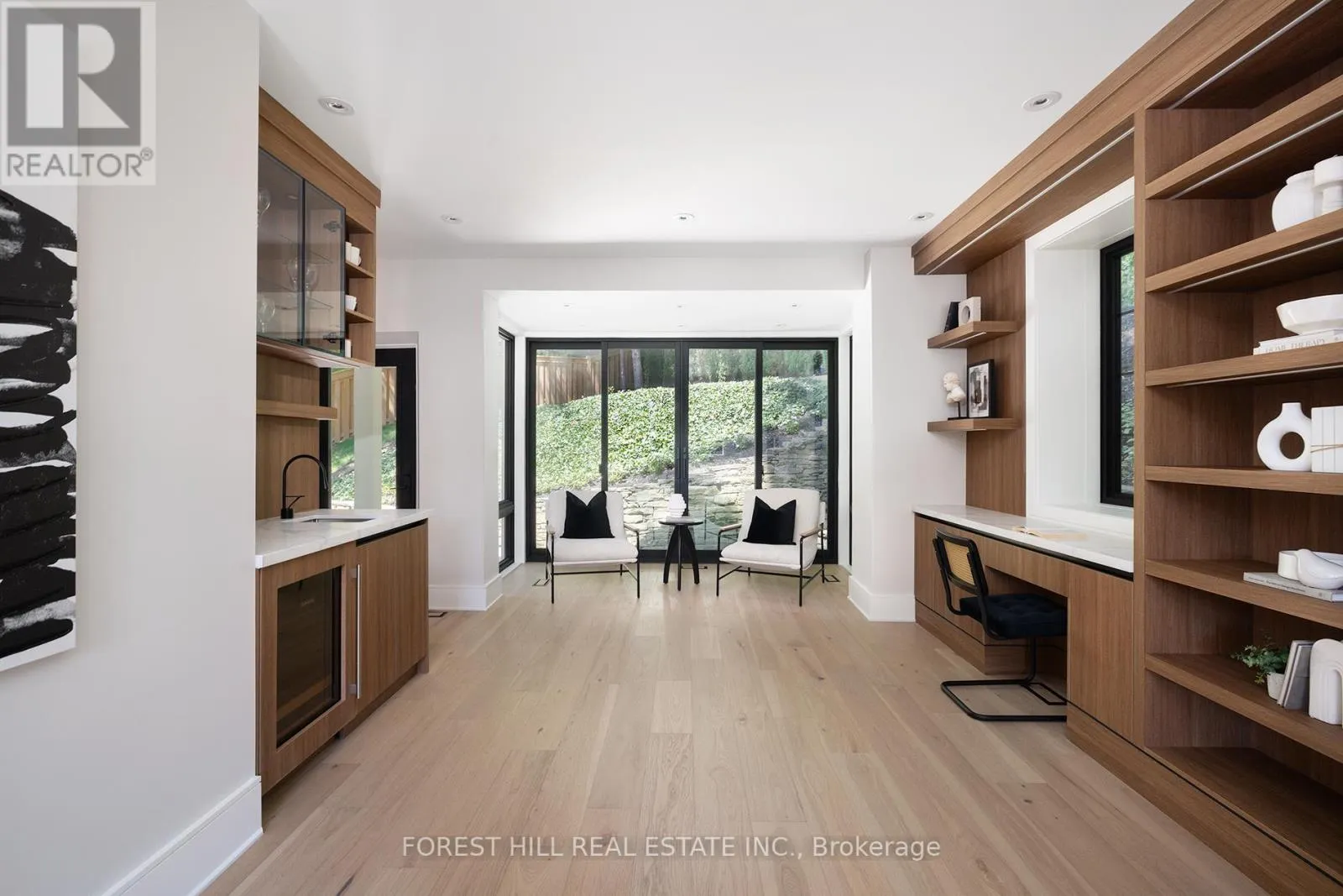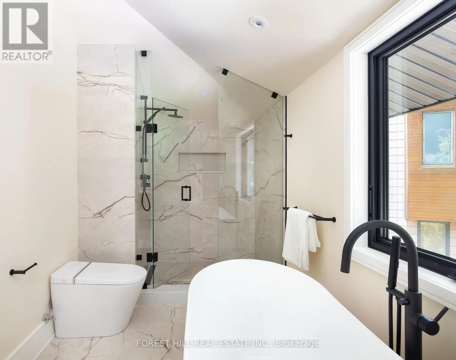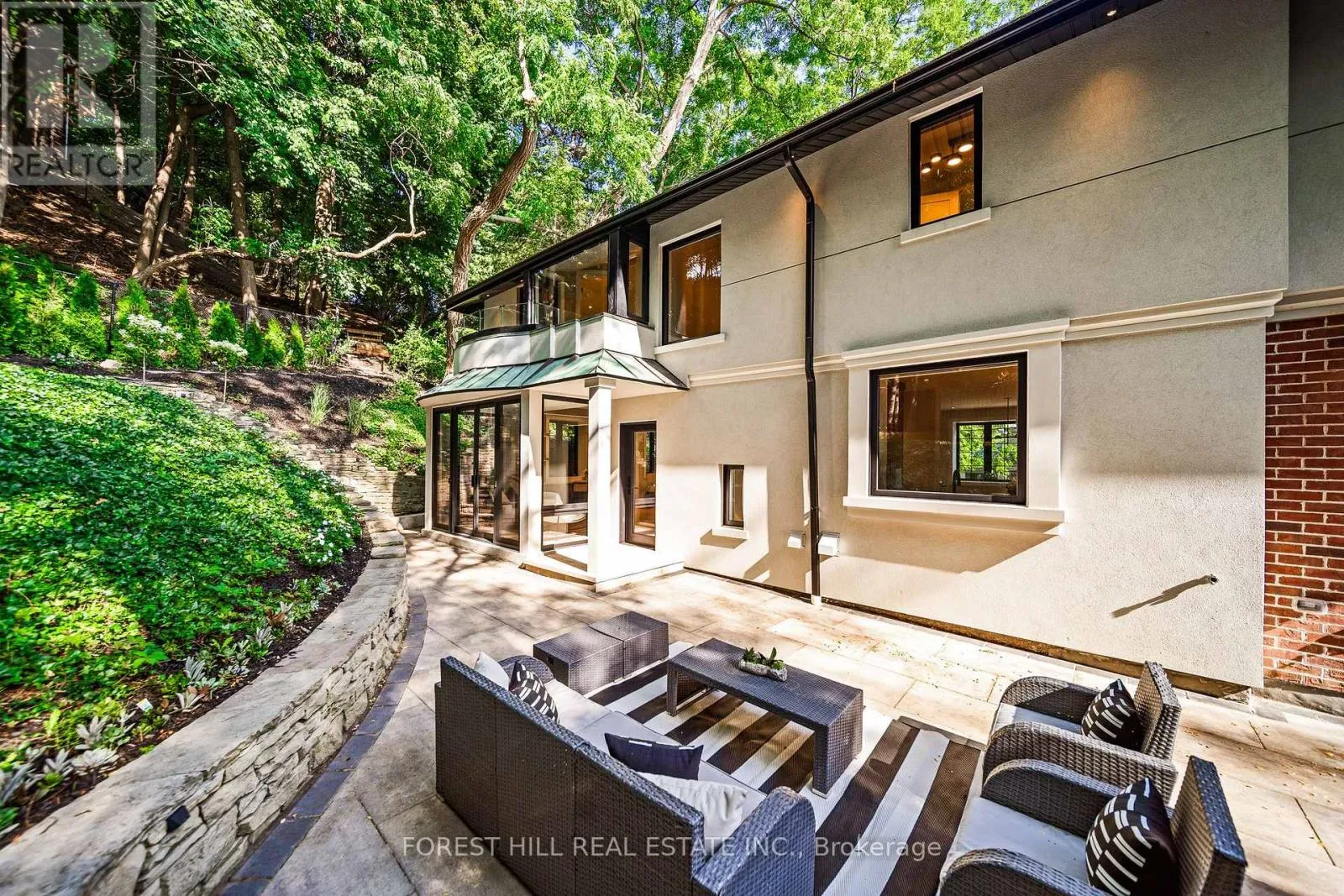Mt Pleasant Rd & Roxborough Dr Set on one of North Rosedale's most established, tree-lined streets, this home is fully finished, meticulously redesigned, and nearly impossible to replicate within a heritage-protected neighbourhood where complete transformations of this calibre are exceptionally rare. With its 128-foot frontage, the property commands an impressive street presence and an estate-like sense of scale.Natural light floods the main level, where the principal rooms overlook a tranquil, green backdrop. The open-concept kitchen and family area connect seamlessly to a private, ravine-like outdoor retreat, perfect for families who travel often or value low-maintenance living. Chefs kitchen with Sub-Zero refrigeration, a Wolf six-burner gas range and microwave drawer, Miele integrated dishwasher, and quartz waterfall countertops anchored by a double-sided porcelain fireplace.Upstairs, four spacious bedrooms offer privacy and flexibility. The primary suite is tucked away, featuring a generous walk-in closet and a spa-inspired en-suite. A secondary suite with its own balcony provides comfort for guests or extended family, while two additional bedrooms share a well-appointed Jack-and-Jill bath. Designer lighting from Union Lighting and wide-plank engineered hardwood flooring add warmth and refinement throughout.The bright, above-grade lower level extends everyday living with a spacious laundry room featuring Electrolux appliances, direct garage access, and a versatile open layout ideal for a home gym, media lounge, or office. Heated driveway and radiant in-floor heating to the NTI high-efficiency boiler, Siemens safety system, and front and rear irrigation for effortless upkeep.A short walk to Chorley Park, Summerhill Market, and the Evergreen Brick Works, and within close proximity to Toronto's top public and private schools, this is a rare turnkey residence that blends Rosedale charm with uncompromising modern luxury. (id:27476)