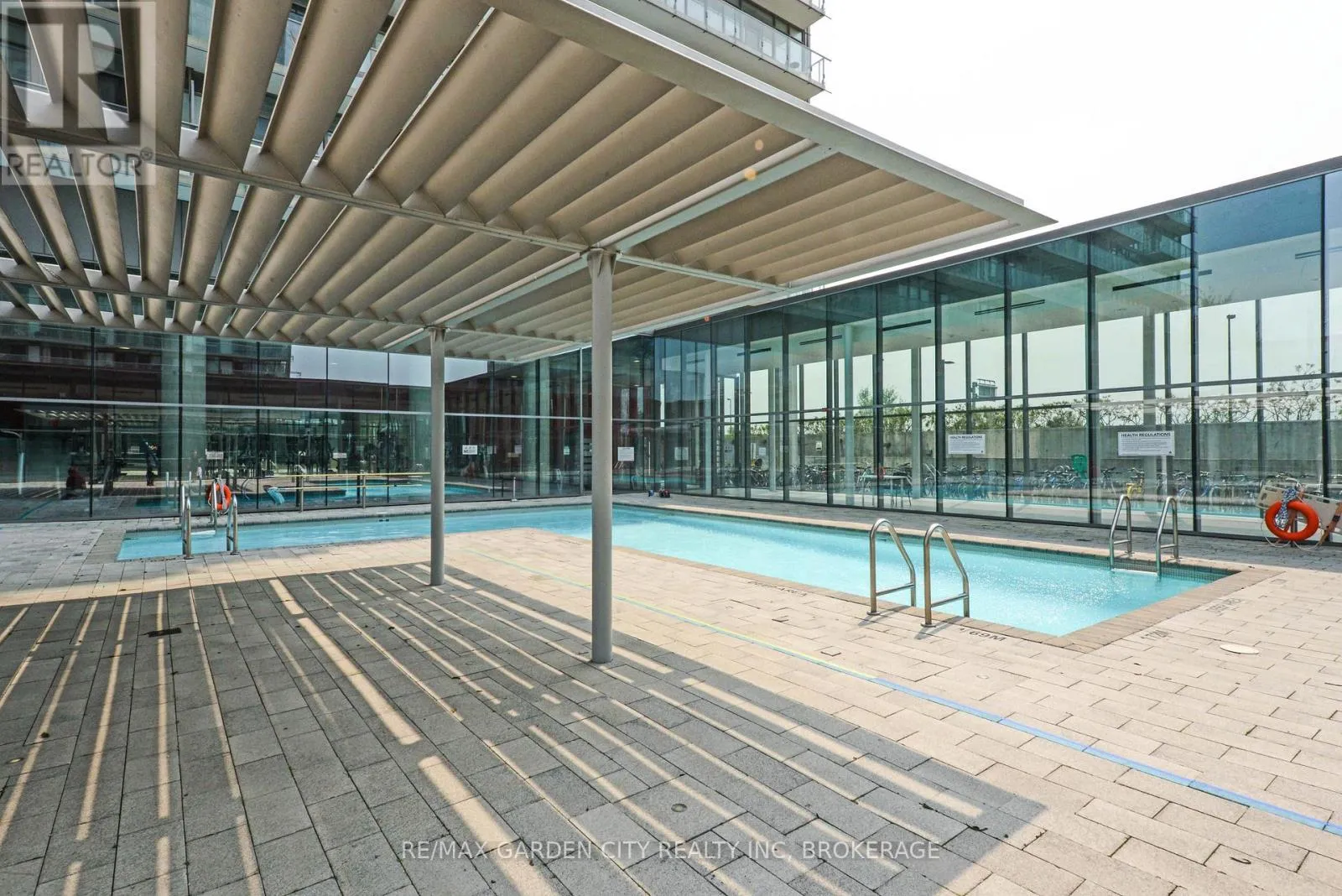 Cross Streets: Windermere Avenue & Gardiner Expressway. ** Directions: Gardiner Expressway -- Lake Shore Boulevard West -- Windermere Avenue -- The Queensway. Stunning corner unit at NXT Condos with views of Lake Ontario and overlooking the outdoor and indoor pool facilities. The unit is a comfortable 984 square feet featuring two bedrooms, two full bathrooms, in-unit laundry, plenty of storage, as well as an open concept kitchen and main living space. The layout flows nicely and has a contemporary stylish quality with wall-to-ceiling windows throughout and multiple patio doors leading to the 40 foot long foot patio stretching the entire West side of the building. Located between the Humber River and High Park in the sought-after Swansea neighbourhood this 29 Storey modern building built in 2010 is home to an amazing community of people. Amenities include a 24-hour concierge and security service, a beautiful indoor and outdoor pool, lounge spaces, well-kept garden spaces, outdoor tennis courts, gym facilities, party rooms, media centers, gaming and recreation rooms, on-site day care, self-serve convenience store, indoor parking, storage lockers, and more. Amazing views, an attractive space, and in an excellent location. (id:27476)