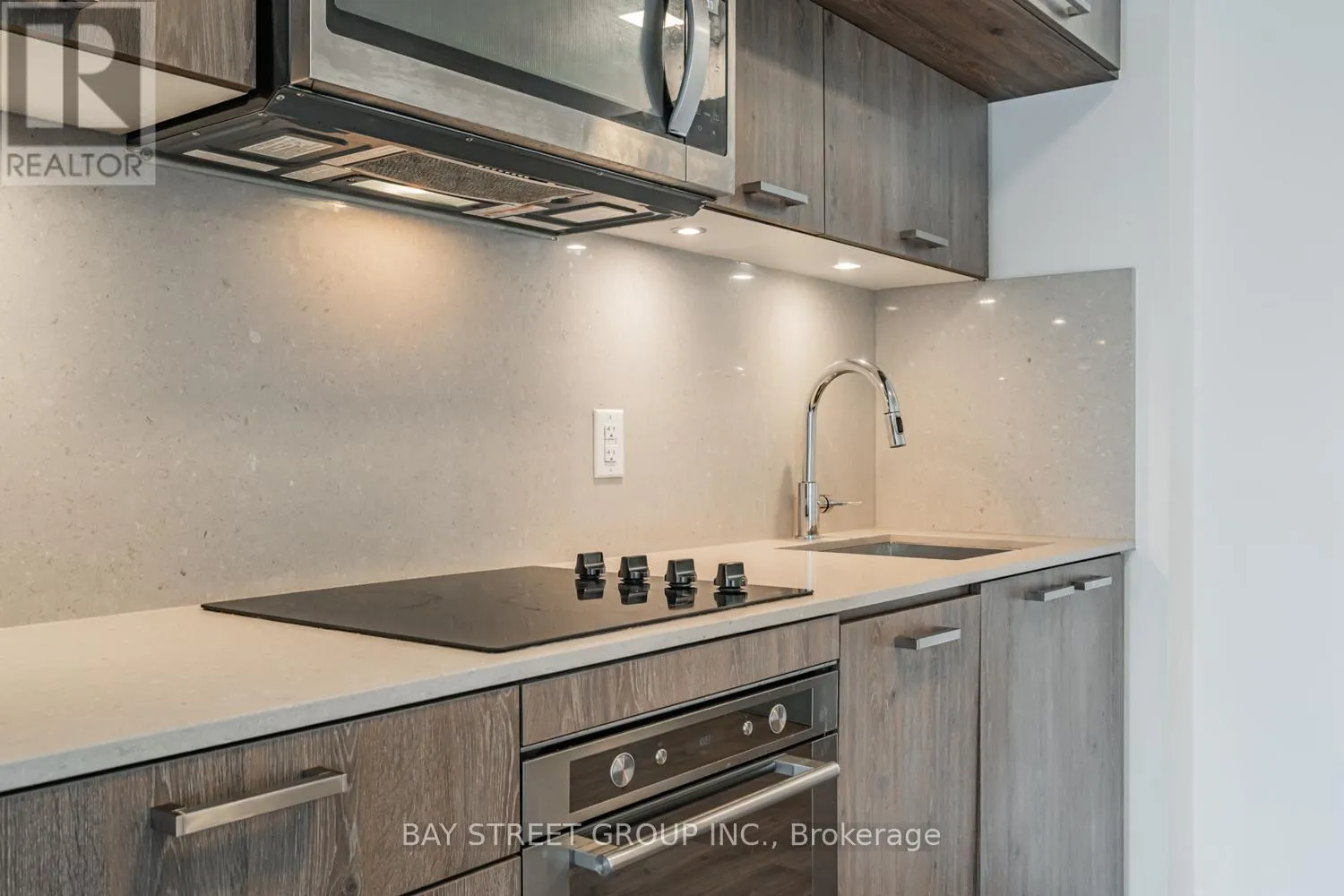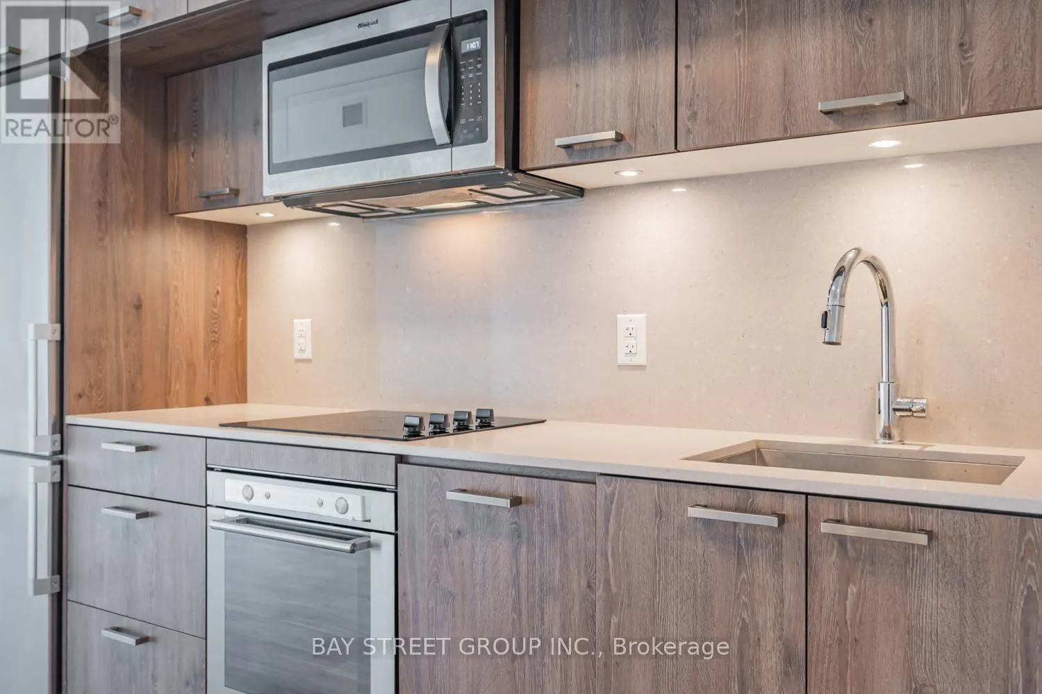 MCCAUL STREET/ QUEEN STREET W Large and Bright 1Bedroom Condo built by reputable builder Tridel. 572 interior sqft as per builder plan. Open concept design w/ 9ft ceilings and floor to ceiling windows. Laminate flooring throughout, kitchen with quartz counters and S/S Appliances. Close to OCAD, University of Toronto, public transit, museum, restaurants and shopping streets. 24 hour concierge, gym, party room and visitor parking. (id:27476)