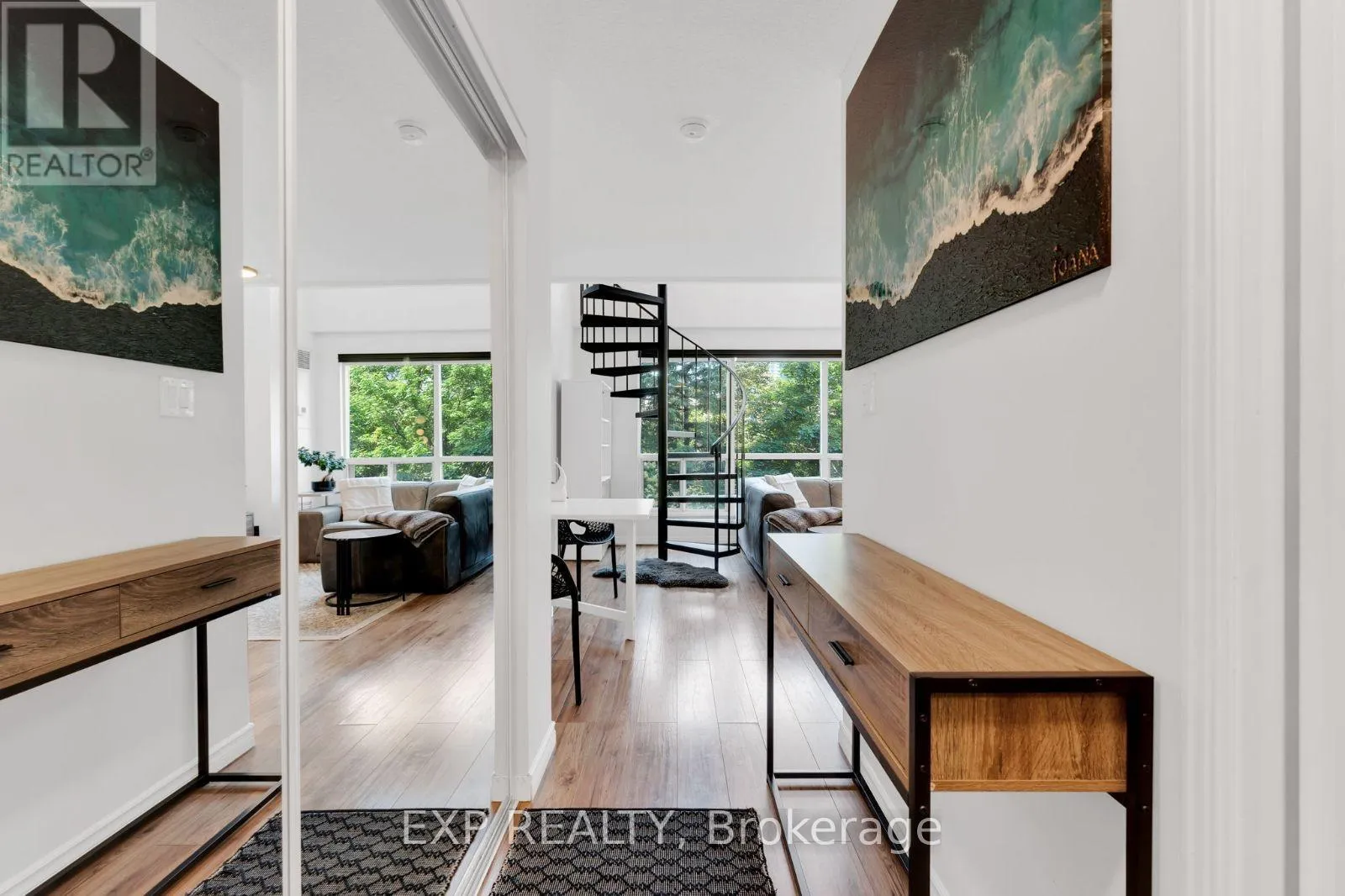 Lake Shore/Park Lawn **Watch Virtual Tour** Resort-Style Living at Marina Del Rey! Welcome to this ultra-chic 2-storey loft in one of Toronto's most sought-after waterfront communities. Featuring dramatic floor-to-ceiling windows, a spiral staircase, modern kitchen with stainless steel appliances, laminate flooring, and a spacious open-concept layout with soaring ceilings - perfect for entertaining or relaxing in style. Enjoy the convenience of underground parking, in-suite laundry, and all utilities included in the maintenance fee, plus Rogers Ignite Bulk VIP 1.5G internet and cable plan (including Crave), provided at no additional monthly cost under a residential service agreement. Residents have access to the exclusive Malibu Club, offering world-class amenities: indoor pool, gym, sauna, squash courts, tennis court, billiards, party room with lake views, BBQ area, and the breathtaking rooftop Sky Lounge.24-hour security and concierge provide added peace of mind. Steps from the lake, marina, waterfront trails, parks, TTC, and with easy access to the Gardiner Expressway - this is the ultimate city escape with a true resort vibe. (id:27476)