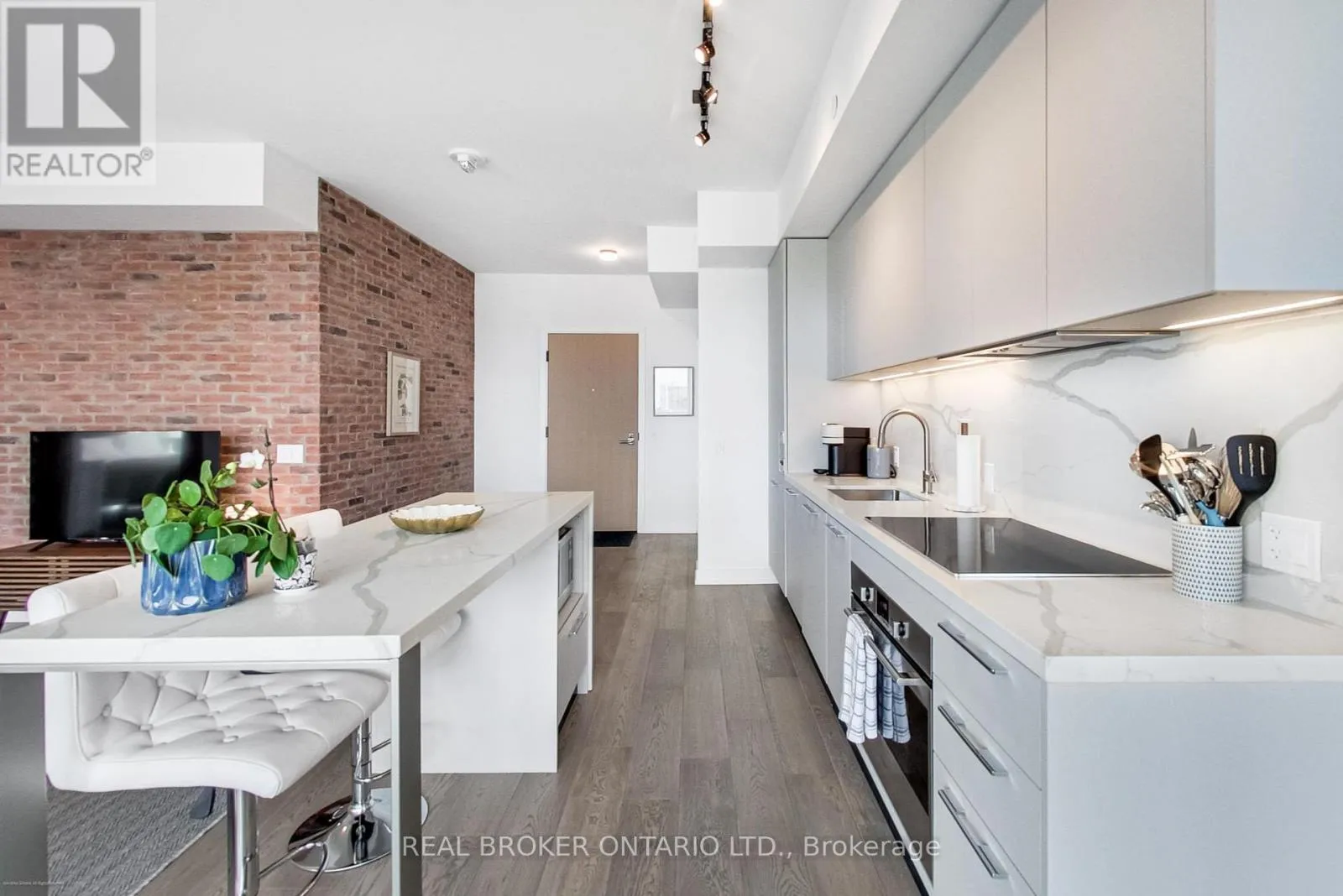 Cross Streets: Queen St.W. and Gladstone. ** Directions: Enter off of Sudbury St. Welcome to the perfect, upscale urban retreat you have been searching for. The open living and dining area is anchored by a brick feature wall and floor-to-ceiling windows that flood the space with natural light.The kitchen is equipped with high-end, full-sized appliances, a centre island with seating, and generous cabinetry for storage- perfect for both daily living and entertaining. Custom closets have been added throughout, maximizing space and keeping everything organized.Step out onto the south-facing balcony to take in views of Lake Ontario and the downtown skyline. A built-in gas line makes BBQing easy, while privacy-friendly window coverings allow you to enjoy the light while maintaining comfort.This boutique building offers a curated set of amenities, including a well-equipped fitness centre, 24-hour concierge, an inviting lounge, and outdoor spaces designed for gathering.The location speaks for itself right in the middle of Queen West. Local favourites like The Drake and The Gladstone are just around the corner, along with the green spaces of Trinity Bellwoods Park, the Ossington strip, and convenient TTC transit. Shopping, dining, and nightlife are all steps from your door.A move-in-ready home in one of Torontos most vibrant and connected neighbourhoods. (id:27476)