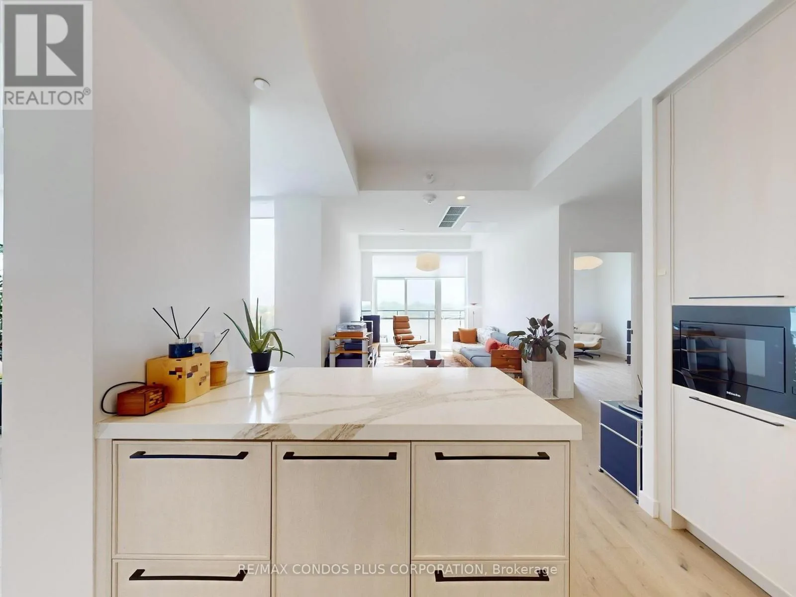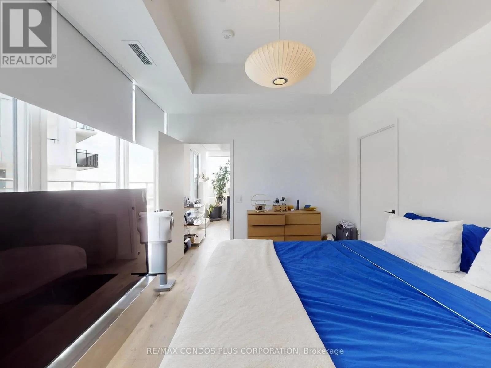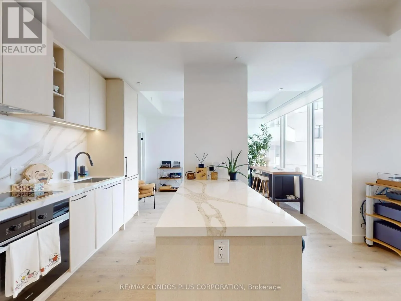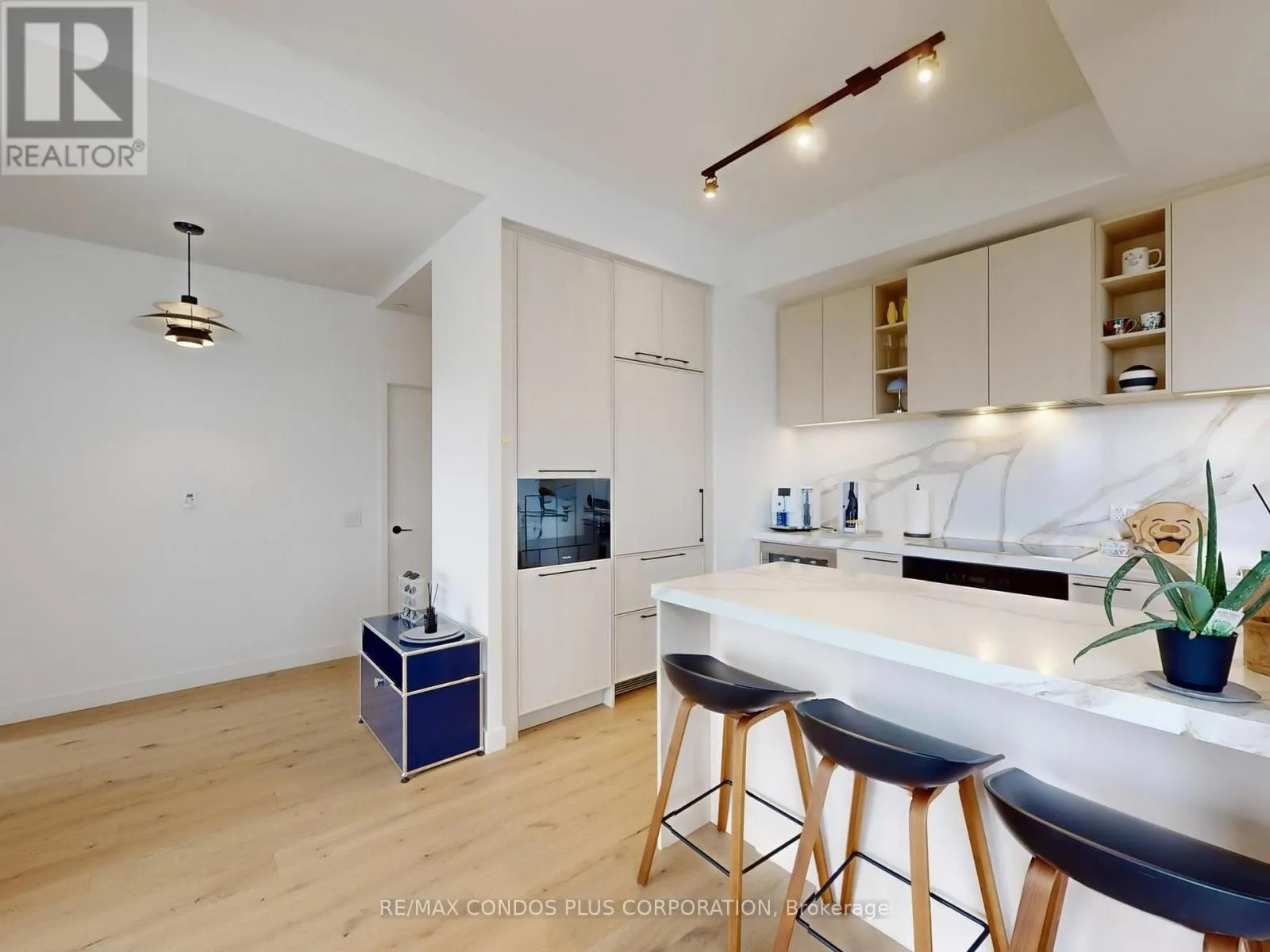 Eastern Ave. and Coxwell Ave. Be first to live in this stylish 2-bed, 2-bath residence at Queen & Ashbridge! Corner unit with 1140 sf of interior space, wonderful open concept floor plan, large south facing balcony with open and unobstructed park and lake views, and huge 331 sf terrace off dining room, perfect for indoor/outdoor entertaining. Modern interior with wide plank laminate flooring throughout, floor-to-ceiling windows, and 9 ft smooth finished ceilings. Large, beautifully appointed kitchen with loads of storage space, centre island, stone counters, and mix of integrated and stainless steel appliances . Spacious primary bedroom features a walk-in closet and spa-like 4-pc ensuite with double sinks. Steps to Woodbine Park, Woodbine Beach, and Ashbridges Bay Marina. Queen Streetcar is right outside the front door, along with countless restaurants, cafes, and shops. Enjoy premium amenities, including a warm welcoming lobby with concierge service, lounge, co-working space, roof terrace, and 5000 sq. ft. fitness centre complete with yoga and spin studios, steam rooms, and spa-style change areas. (id:27476)