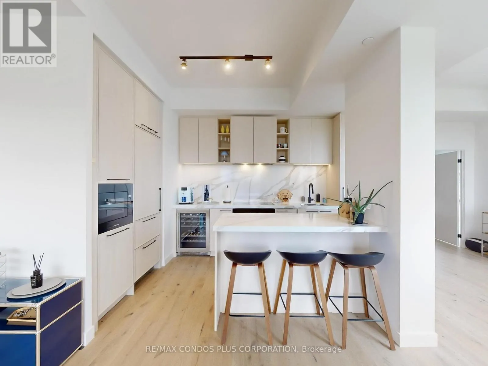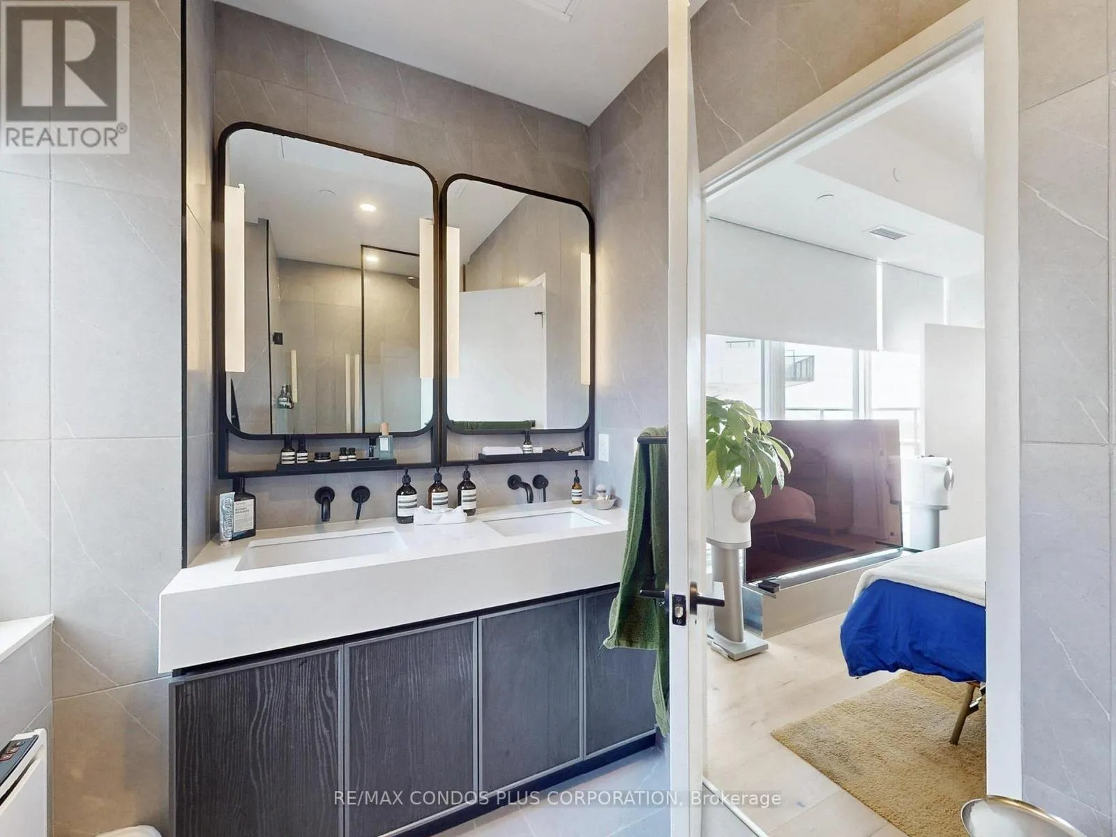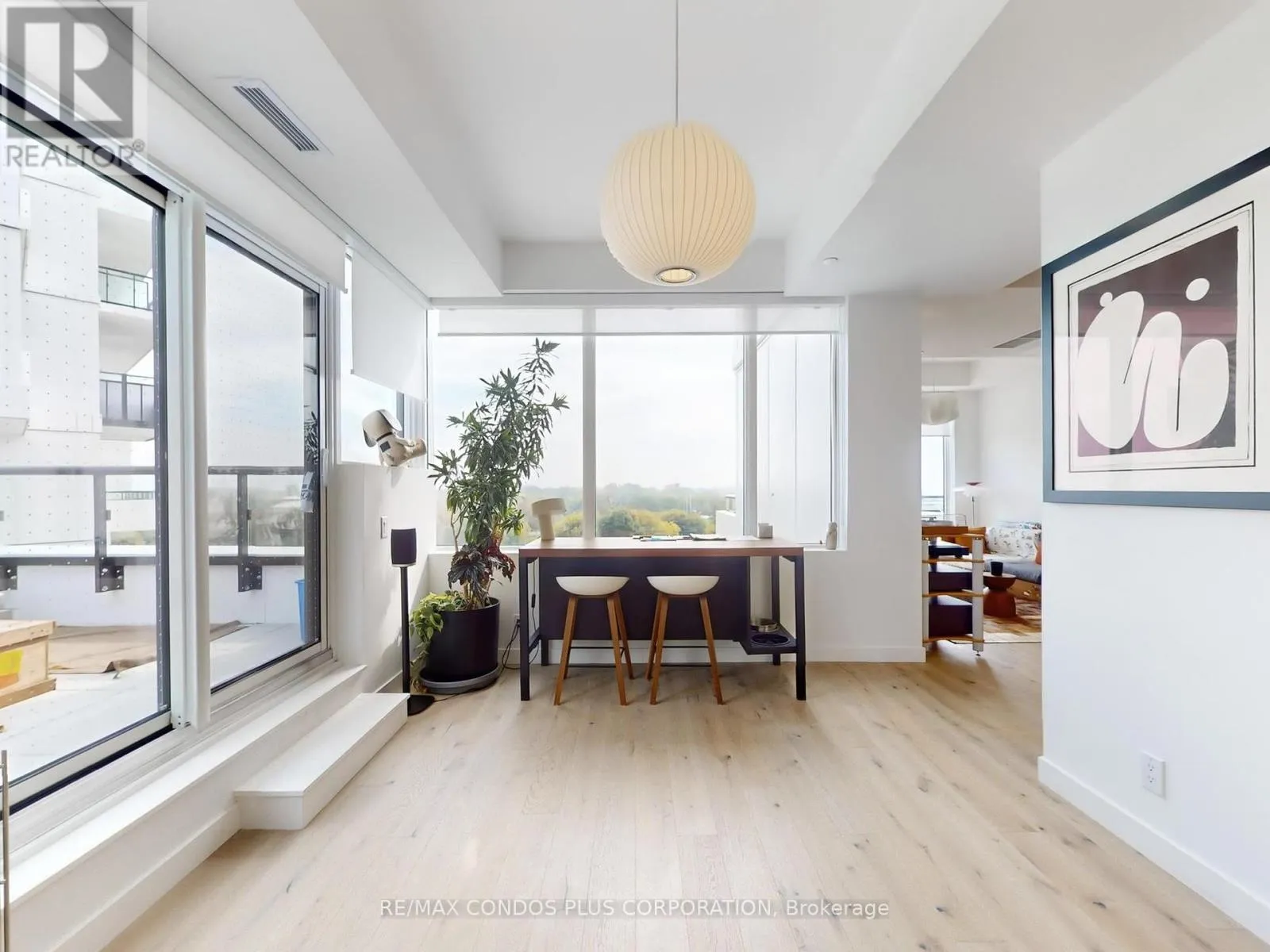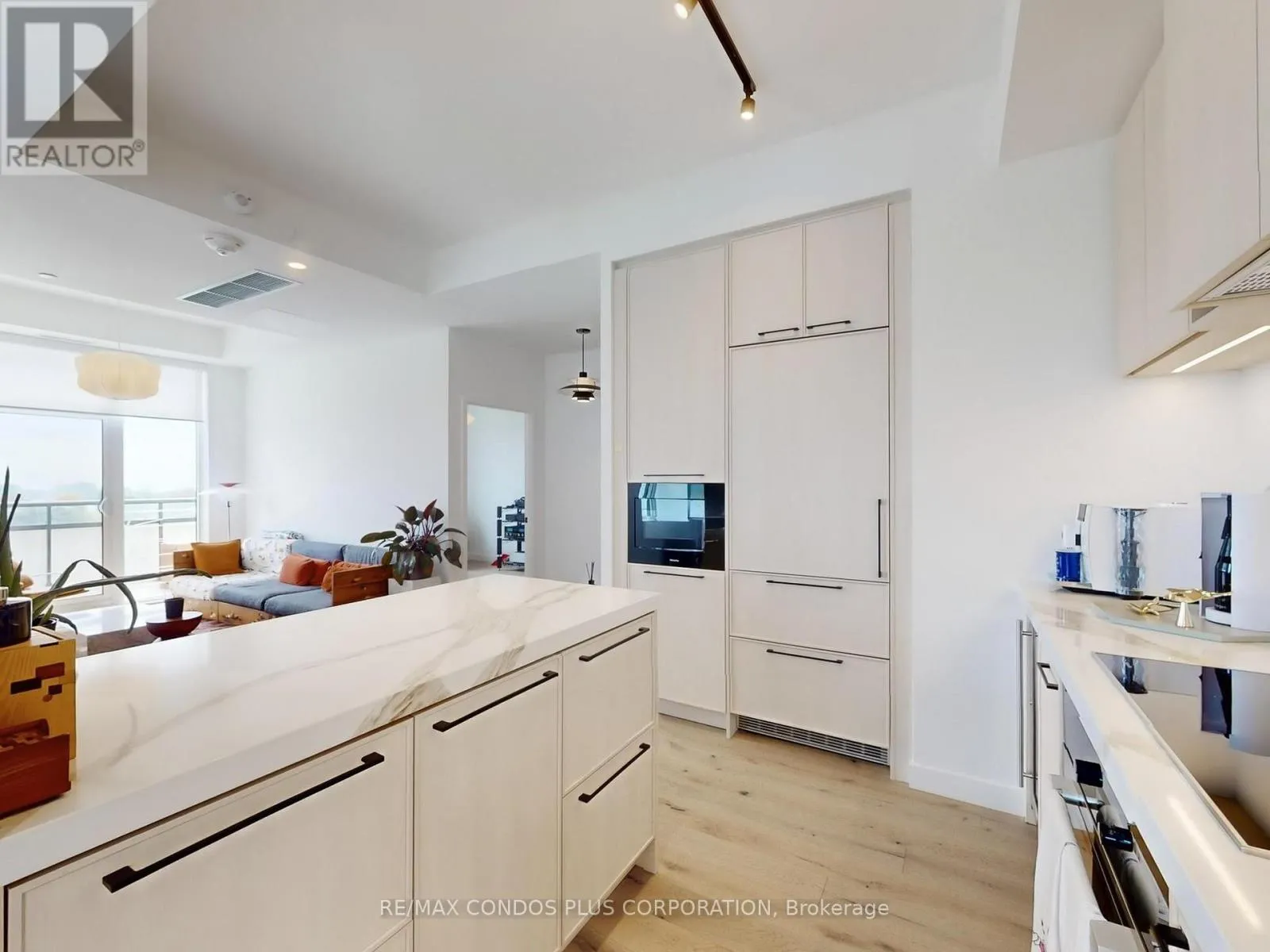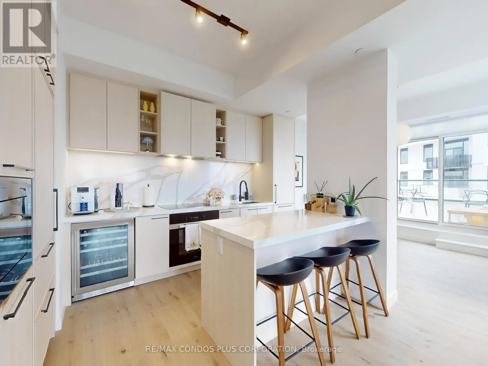 Eastern Ave. and Coxwell Ave. Be first to live in this stylish 2-bed, 2-bath residence at Queen & Ashbridge! Corner unit with 1140 sf of interior space, wonderful open concept floor plan, large south facing balcony with open and unobstructed park and lake views, and huge 331 sf terrace off dining room, perfect for indoor/outdoor entertaining. Modern interior with wide plank laminate flooring throughout, floor-to-ceiling windows, and 9 ft smooth finished ceilings. Large, beautifully appointed kitchen with loads of storage space, centre island, stone counters, and mix of integrated and stainless steel appliances . Spacious primary bedroom features a walk-in closet and spa-like 4-pc ensuite with double sinks. Steps to Woodbine Park, Woodbine Beach, and Ashbridges Bay Marina. Queen Streetcar is right outside the front door, along with countless restaurants, cafes, and shops. Enjoy premium amenities, including a warm welcoming lobby with concierge service, lounge, co-working space, roof terrace, and 5000 sq. ft. fitness centre complete with yoga and spin studios, steam rooms, and spa-style change areas. (id:27476)