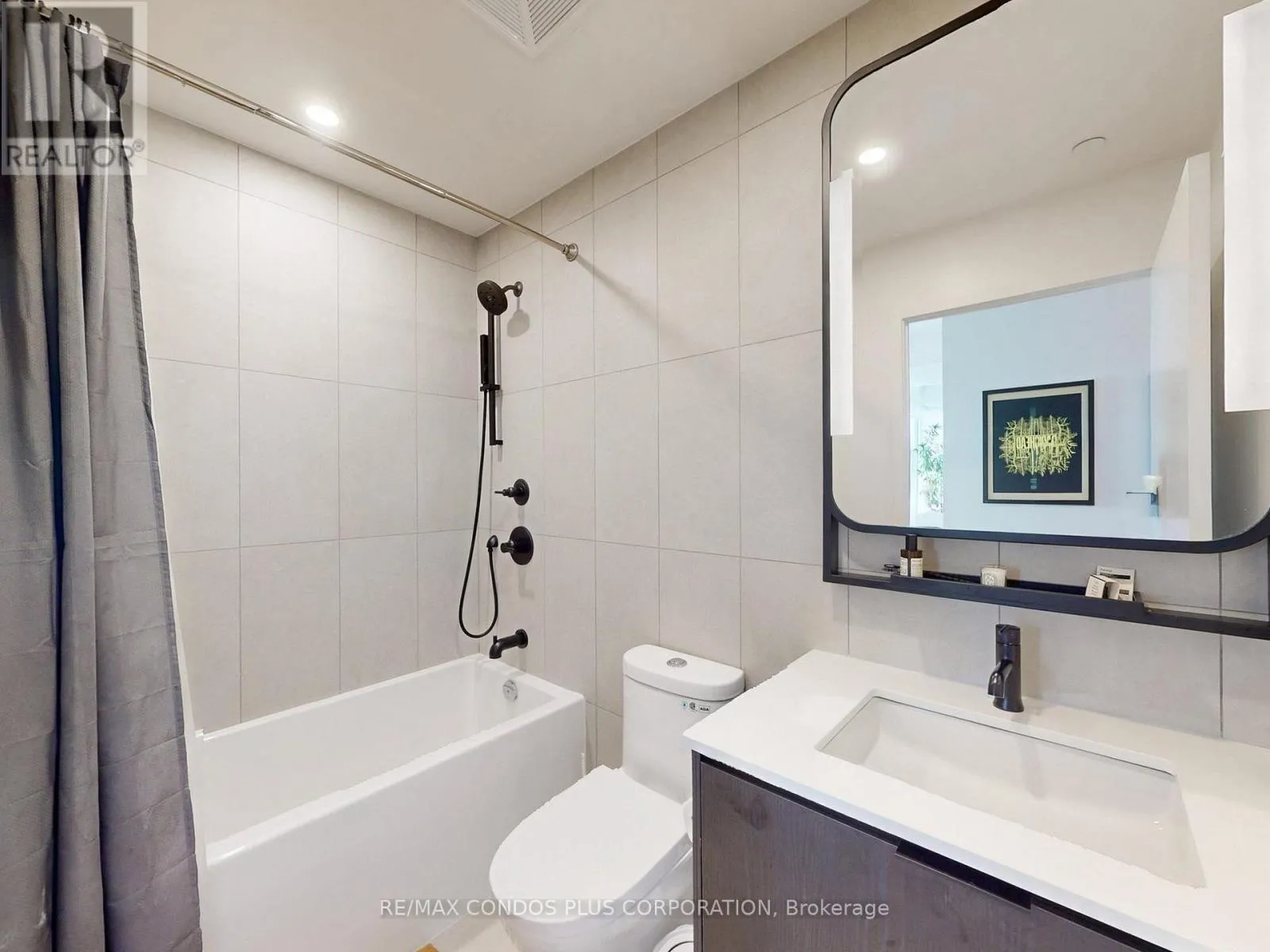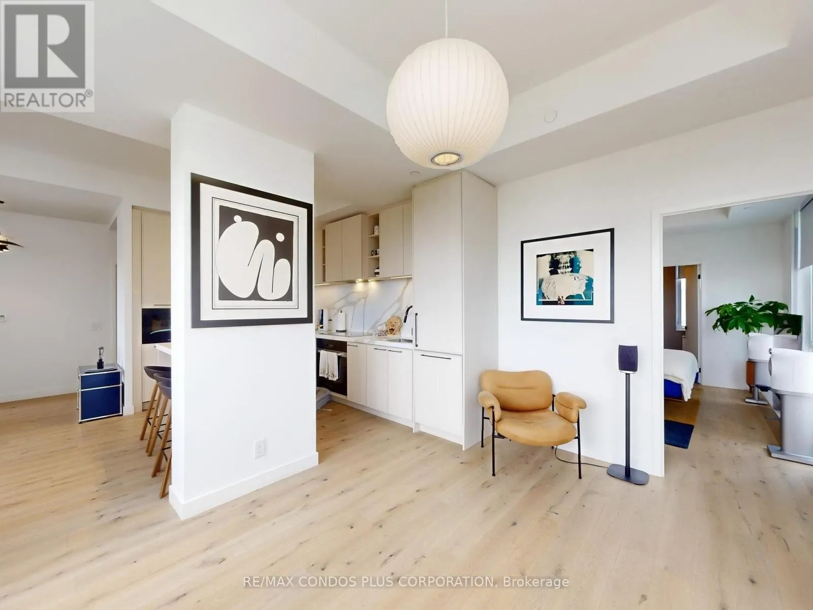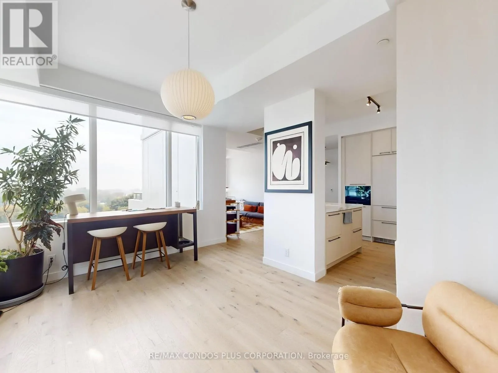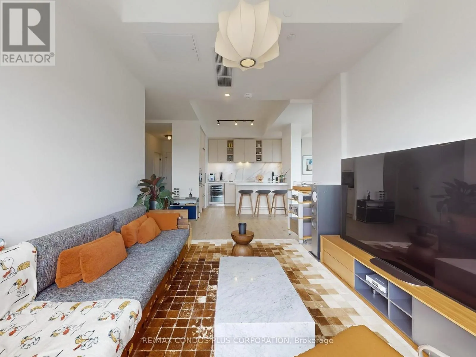 Eastern Ave. and Coxwell Ave. Be first to live in this stylish 2-bed, 2-bath residence at Queen & Ashbridge! Corner unit with 1140 sf of interior space, wonderful open concept floor plan, large south facing balcony with open and unobstructed park and lake views, and huge 331 sf terrace off dining room, perfect for indoor/outdoor entertaining. Modern interior with wide plank laminate flooring throughout, floor-to-ceiling windows, and 9 ft smooth finished ceilings. Large, beautifully appointed kitchen with loads of storage space, centre island, stone counters, and mix of integrated and stainless steel appliances . Spacious primary bedroom features a walk-in closet and spa-like 4-pc ensuite with double sinks. Steps to Woodbine Park, Woodbine Beach, and Ashbridges Bay Marina. Queen Streetcar is right outside the front door, along with countless restaurants, cafes, and shops. Enjoy premium amenities, including a warm welcoming lobby with concierge service, lounge, co-working space, roof terrace, and 5000 sq. ft. fitness centre complete with yoga and spin studios, steam rooms, and spa-style change areas. (id:27476)
