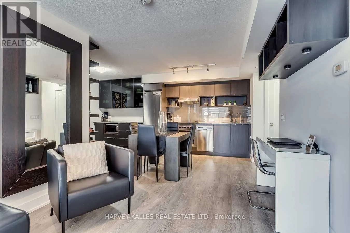 Islington & Bloor St Welcome to Islington Terrace - Suite 1206 at 7 Mabelle Avenue! A stunning 1 bed + den condo with 1 bath, parking, and locker, offering an exceptional layout in a premium Tridel-built community! This suite features a beautifully upgraded extended wall-to-wall kitchen with sleek built-in stainless steel appliances, elegant custom millwork for additional storage, and a reverse osmosis water system... a rare and thoughtful upgrade. The open-concept living space boasts in-suite laundry, a Juliette balcony with floor to ceiling windows & sliding door, and a versatile den perfect for a home office, dedicated dining area or guest space. Located in one of Etobicoke's most connected neighbourhoods, enjoy an outstanding Walk Score and Transit Score steps to Islington Subway Station, shops, cafes, parks, and more. The building offers unbelievable 5-star amenities, including a fitness centre, pool, rooftop terrace, yoga studio, movie theatre, basketball court, party rooms, 24-hour concierge and more! Don't miss your chance to live in this vibrant, well-connected community in the heart of Etobicoke! VACANT, FRESHLY PAINTED AND PROFESSIONALLY CLEANED! (id:27476)