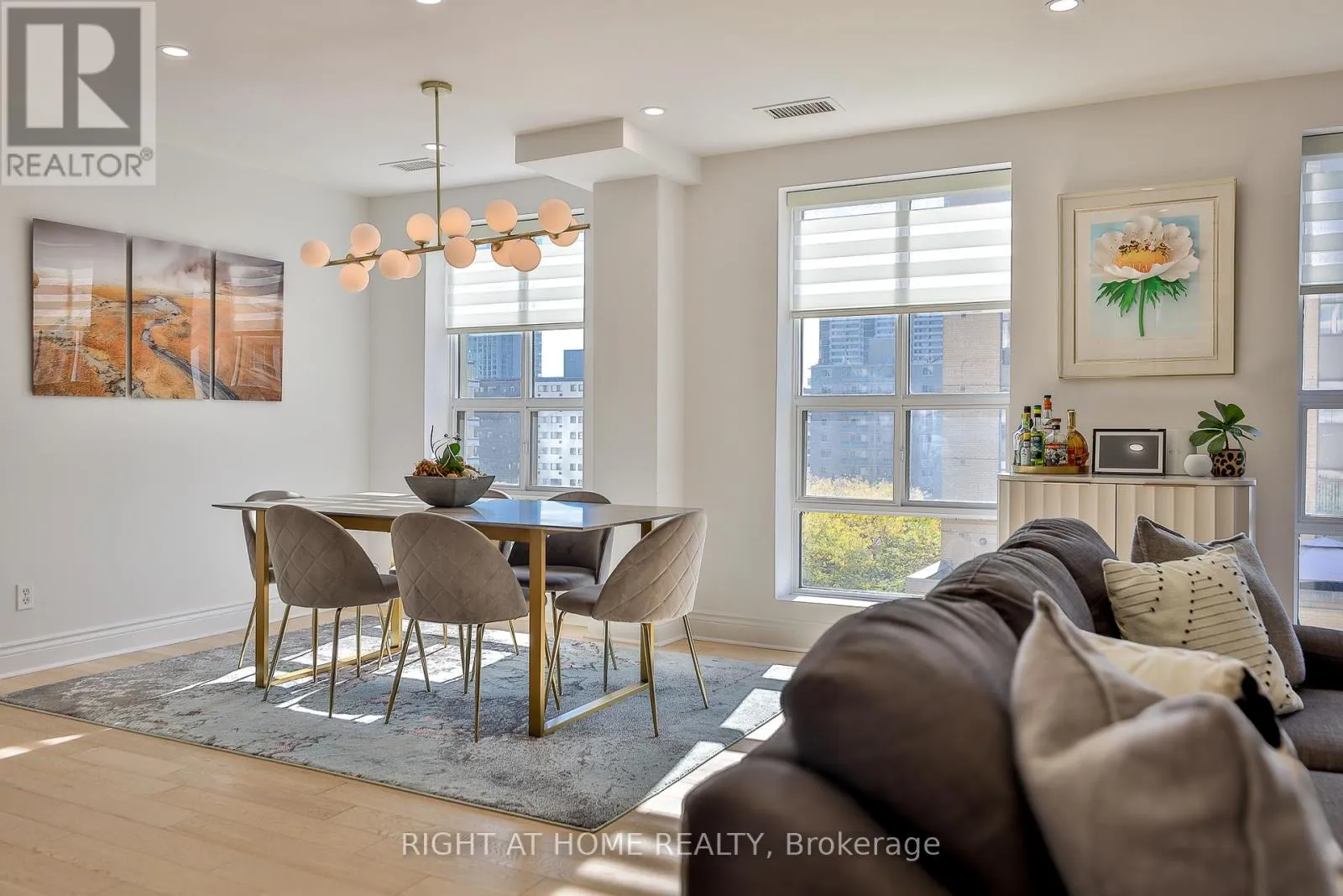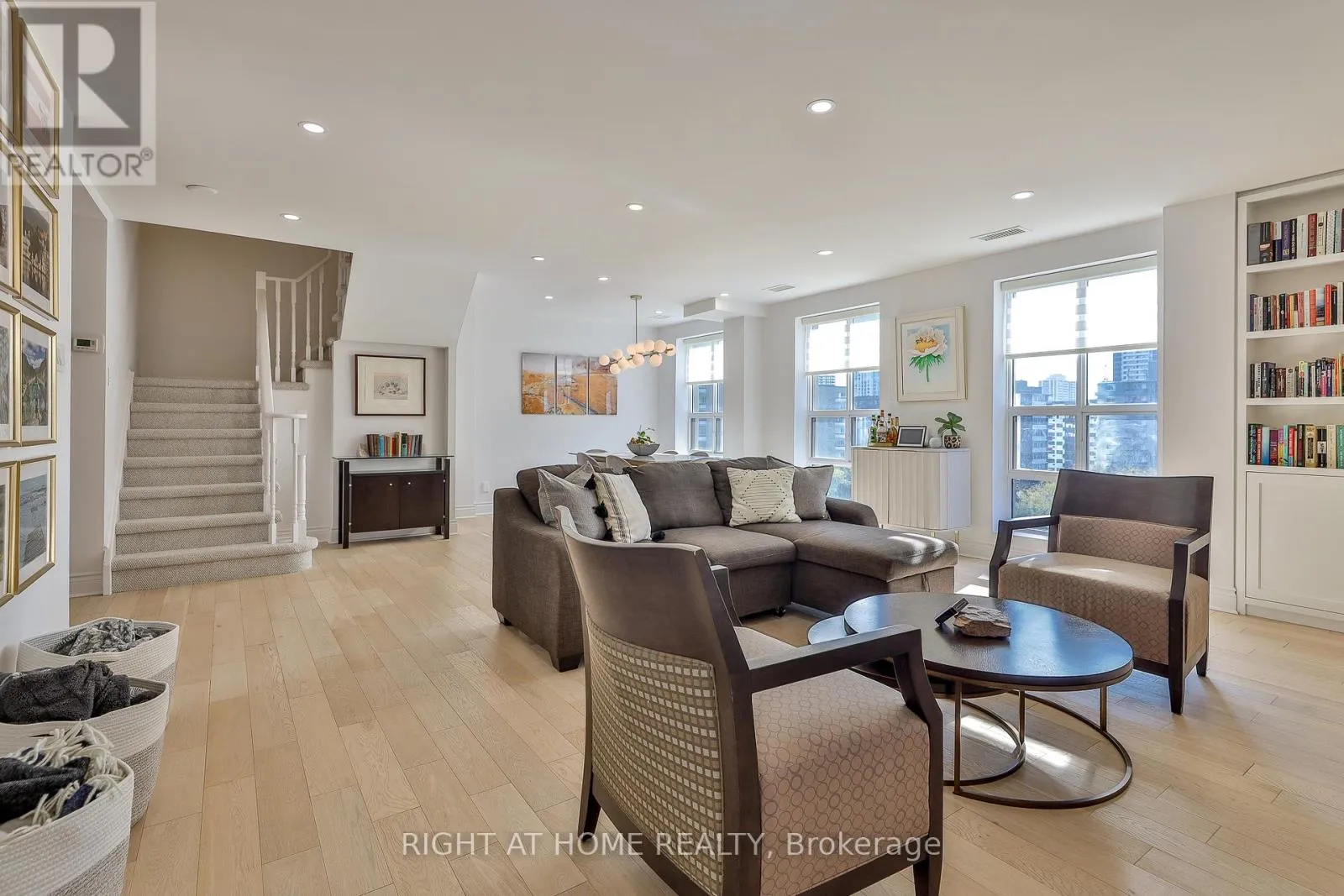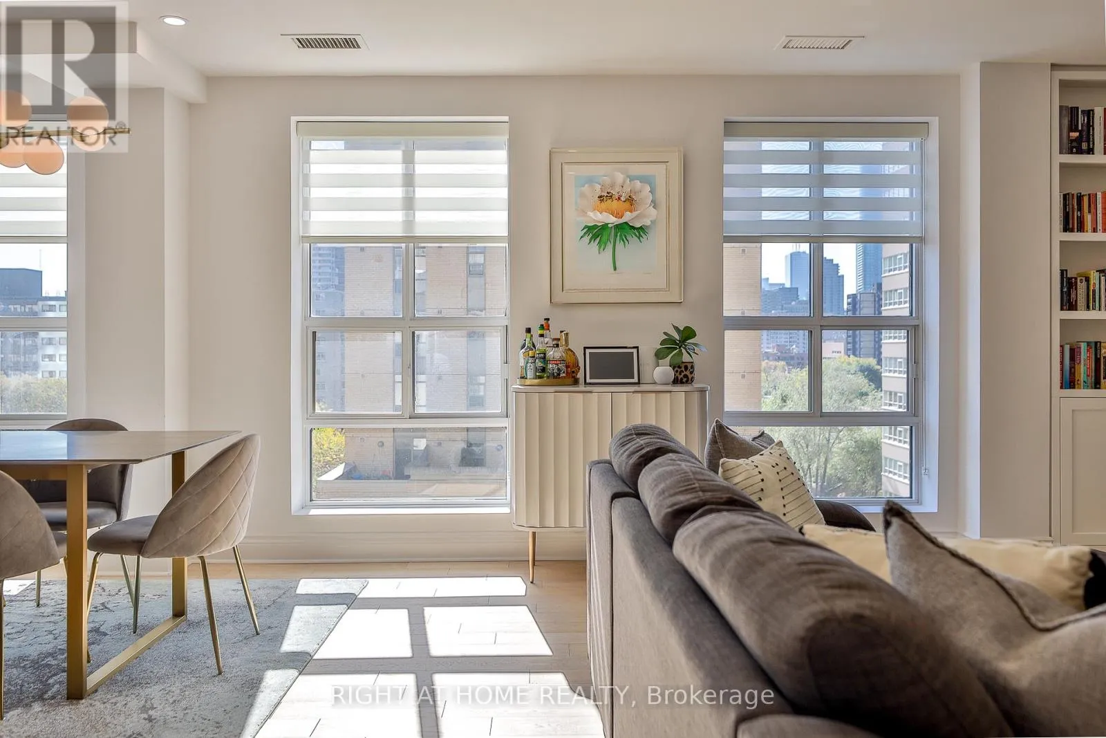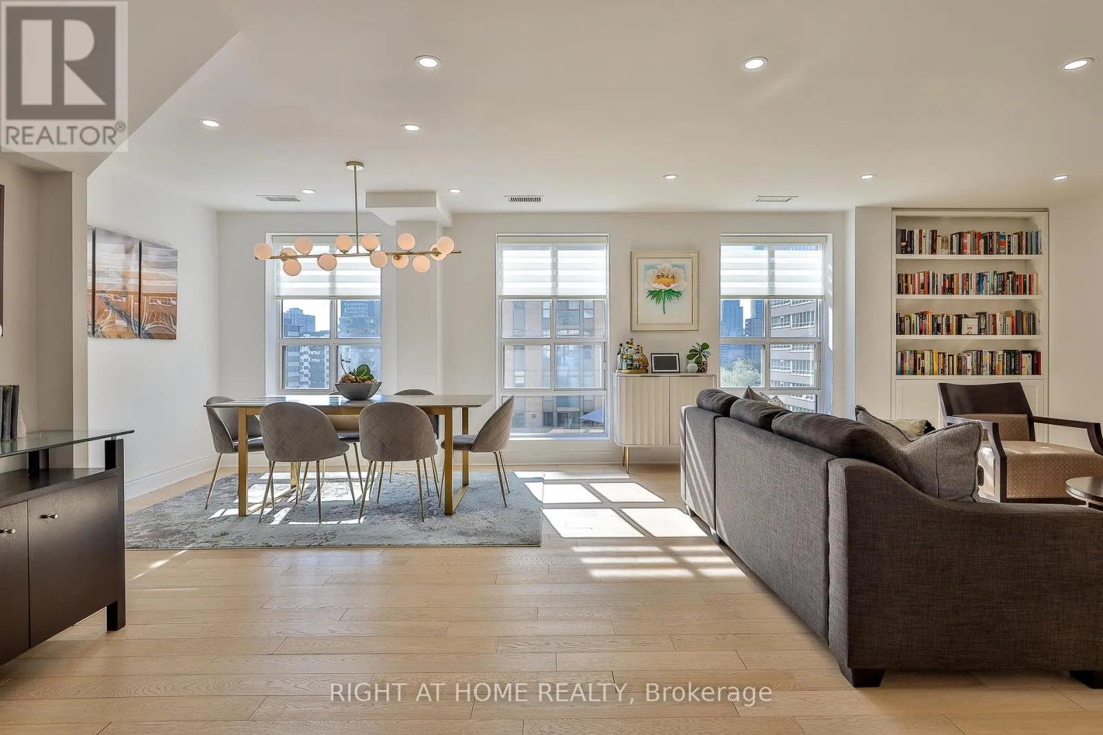 Cross Streets: Bloor/Church. ** Directions: West of Church. Penthouse Living at the Waldorf Astoria Lofts! Once the Waldorf Astoria Hotel, this boutique residence blends historic charm with modern city living, where opportunities to own are rare. This 2-storey, 1,410sf corner penthouse was fully renovated in 2019, pairing open, sun-filled spaces with timeless design. Floor to ceiling windows frame sweeping southern skyline views, accented by wide-plank English oak floors.The main level features a modern kitchen with sleek stone counters, full-height backsplash and newer stainless steel appliances, as well as Bosch stackable washer/dryer. Youll also find a powder room, newly installed pot-lights throughout and custom bookshelves to complete the main living space.Upstairs, the oversized primary retreat offers custom built-ins and a spa inspired semi-ensuite, while a spacious second bedroom provides flexibility for guests and a home office, with abundant closet space. Secure underground parking, a private locker, and access to a landscaped green courtyard complete the offering - a private oasis in the heart of the city. Pet-friendly and ideally located just steps from Yonge & Bloor subway, the Waldorf Astoria Lofts is a truly distinctive address. Maintenance fees include all utilities. (id:27476)